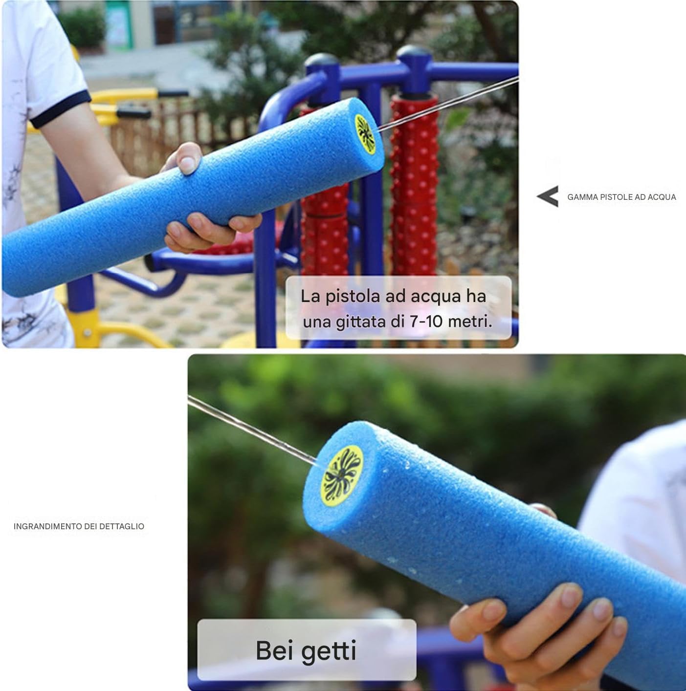 Funzionalità Pratica: Ampia apertura per rifornimento acqua rapido, ideale per giochi d'acqua divertenti in spiaggia sabbiosa o in cortile Divertimento Familiare:3 pistole ad acqua e 4 anelli da lancio promuovono momenti di condivisione. Altezza personalizzabile per infinite combinazioni di gioco in acqua e su terra. Flessibilità d'uso:Potenzia le capacità di coordinazione occhio-mano e ispira momenti di risate durante i giochi acquatici genitori-figli, garantendo intrattenimento adatto ad ogni membro della famiglia con spruzzi rinfrescanti. Connetti Giocando: Combina piacere e praticità per un coinvolgimento outdoor immediato, rafforzando i legami familiari unendo diverse generazioni in giochi d'acqua condivisi Morbidezza Ergonomica: Struttura ultraleggera con impugnatura anatomica che si adatta naturalmente alla mano, garantendo sicurezza e comfort durante giochi acquatici intensi senza provocare tensioni