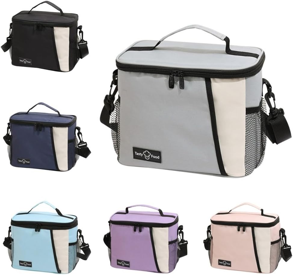 Contenitore per il pranzo di grande capacità: si adatta facilmente a scatole per il pranzo, frutta, snack, bevande e pane in questo spazioso portapranzo. Offre ampio spazio per soddisfare le esigenze quotidiane dei pasti senza problemi. Impermeabile e realizzata in tessuto Oxford impermeabile e antimacchia, questa borsa per il pranzo garantisce durata e facile pulizia. Manterrà il cibo sicuro e asciutto anche quando riempito con acqua e ghiaccio. Interno isolato: la borsa per il pranzo presenta più strati di foglio di alluminio isolato ispessito all'interno, mantenendo il cibo caldo, fresco o freddo se necessario. Goditi i tuoi pasti alla temperatura perfetta sempre e ovunque. Comode opzioni di archiviazione: dotato di 2 griglie laterali per bevande, ombrelli, tazze e altro ancora, e una grande tasca frontale per cellulare, carte, chiavi e piccoli oggetti. Mantieni i tuoi effetti personali organizzati e facilmente accessibili. Pratico e perfetto per picnic, campeggio, lavoro e uso regolare. Questa borsa per il pranzo è adatta per varie occasioni e soddisfa le esigenze di diverse persone. È un compagno affidabile che mantiene il cibo fresco ovunque tu vada.