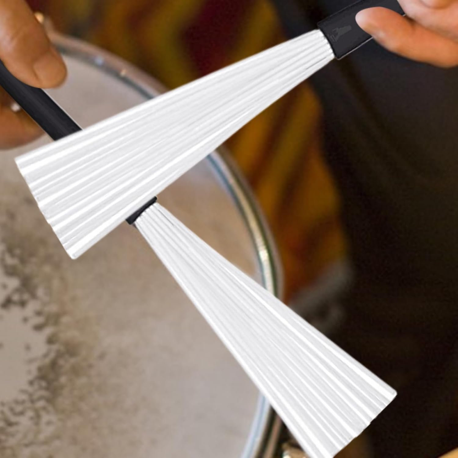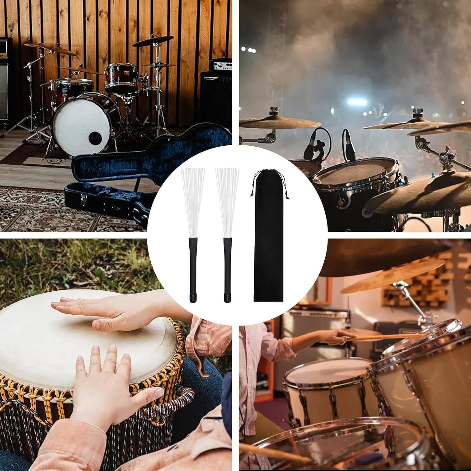 Sound della batteria migliorato: migliora la tua esperienza di batteria con questi pennelli, progettato per amplificare il volume e migliorare la chiarezza del suono per gli strumenti a tamburo Prestazioni migliorate: la spazzola a tamburo ha un'impugnatura in gomma affidabile e setole a filo duro per prestazioni forti e resistenti all'usura e un uso prolungato Gesto premuroso: spazzole a tamburo, retrattile e versatile, adatte per la condivisione con amici, famiglia, compagni di classe e adatto agli amanti degli strumenti Soluzione di archiviazione pratica: mantieni i tuoi pennelli a tamburo sicuri all'esterno con la borsa in velluto nero inclusa, che facilita il trasporto e lo stoccaggio per una mobilità ordinata Ampiamente applicabile: adatto ai livelli della batteria, queste spazzole a filo per tamburo sono adatte per allenamenti di pratica di ripetizione o classe, offrendo prestazioni di precisione e chiarezza nei concerti. Ampiamente usato in vari parametri