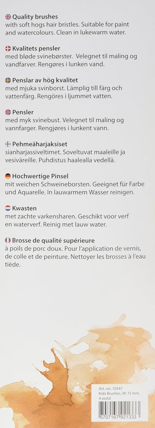 Contenuto: 4 PZ. Dimensioni del pacco (LxlxH): 23.50 x 9.00 x 1.50 cm Comprovate qualità di Creativ Company Pennello setole con manico corto, unlackiertem legno suina robusta – perfetta per le piccole mani dei bambini Pacco con 2 pennelli e 2 piatto rotondo