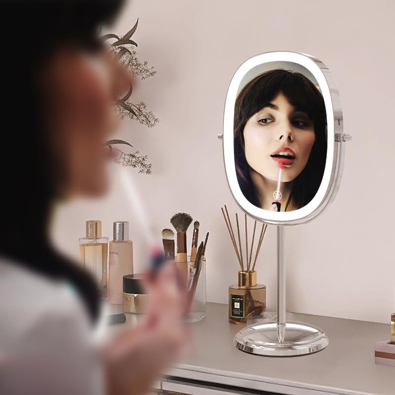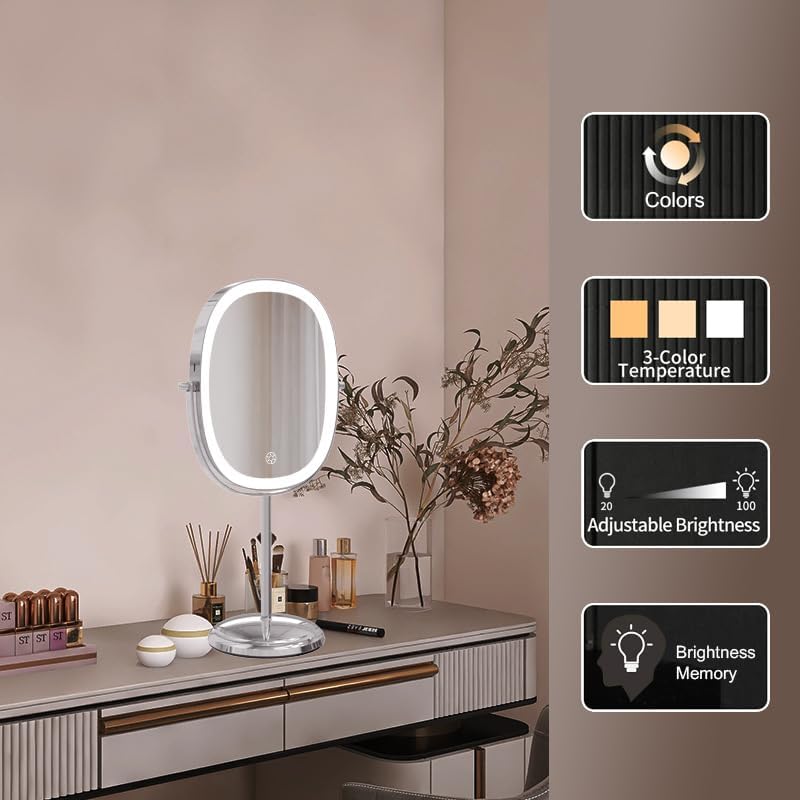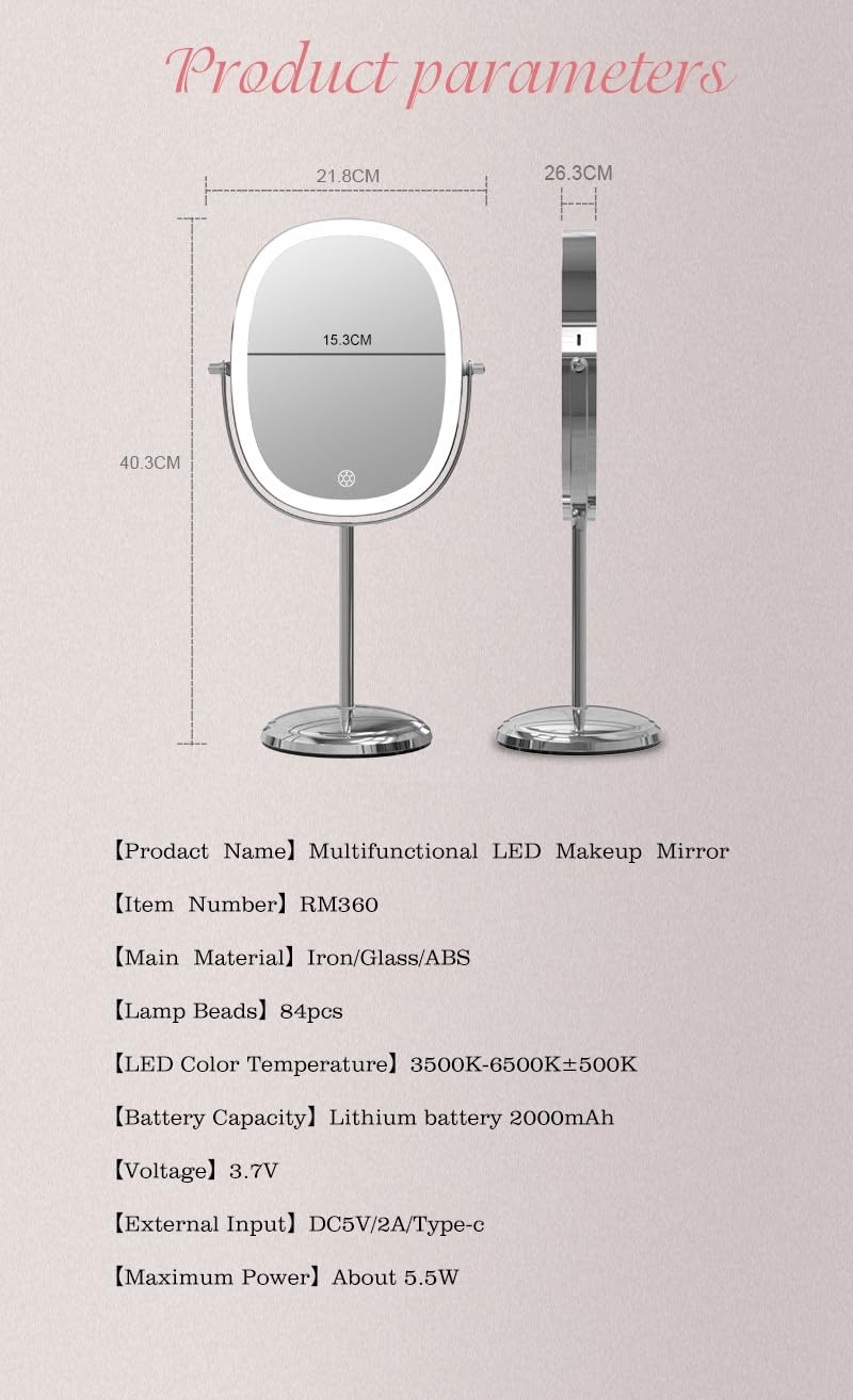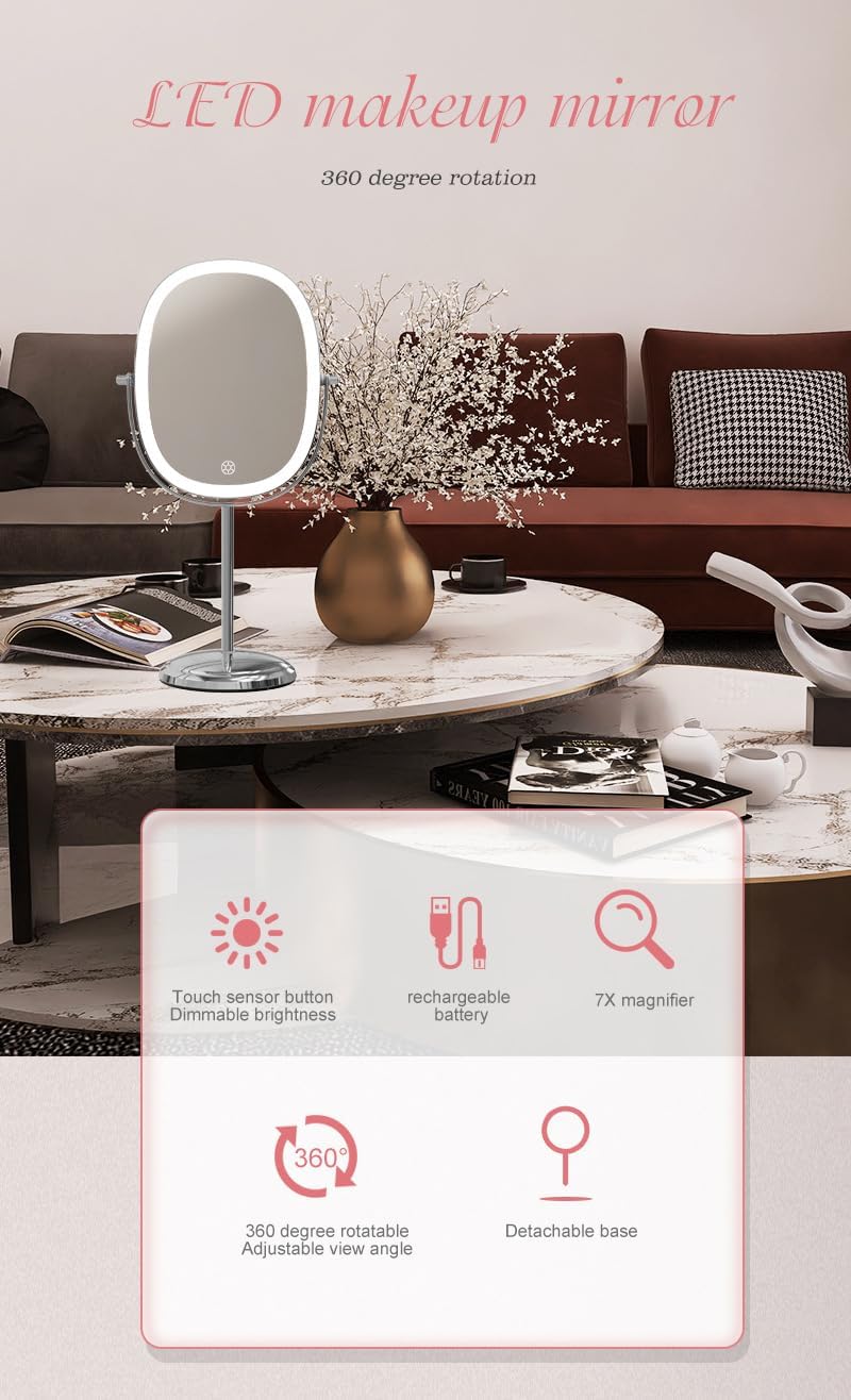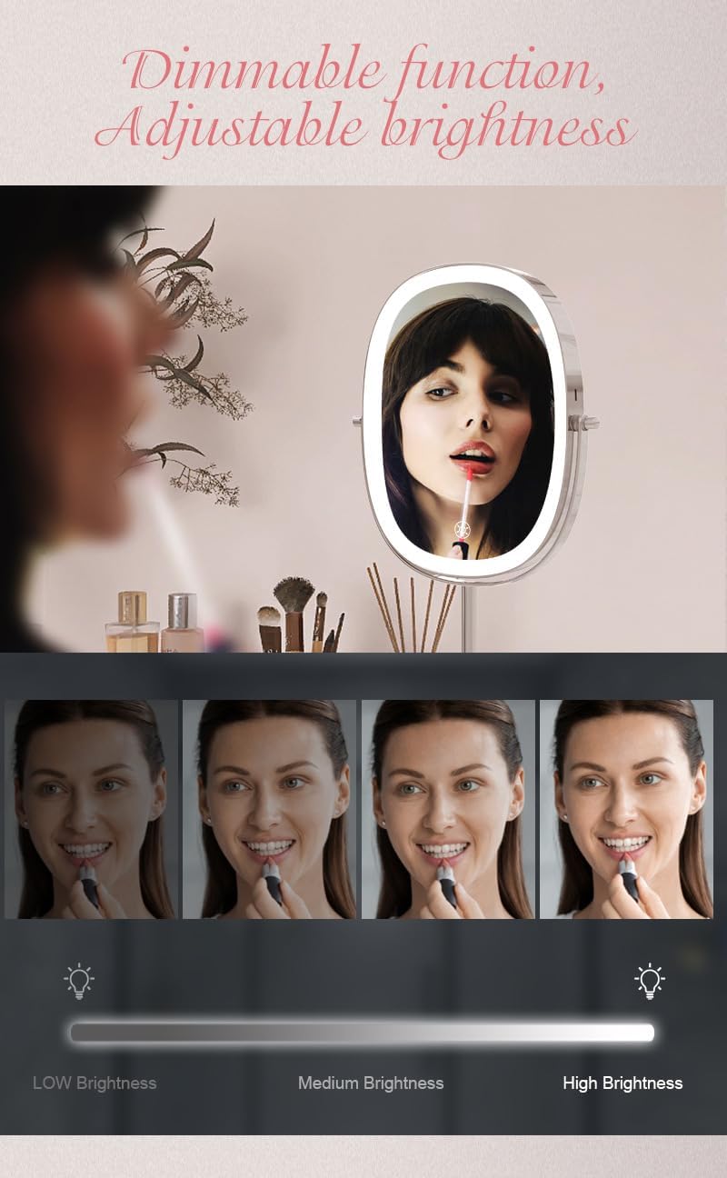 Ingrandimento a doppio lato 1x/7x HD: questo specchio d'ingrandimento con luce offre un ingrandimento 1x su un lato per una vista globale e un ingrandimento 7x sull'altro lato per i dettagli dettagliati. Facile rotazione per una vista ottimale. Ideale per applicazioni per il trucco, depilazione ai capelli e cura della pelle precisa. La superficie di visione da 8 "di grandi dimensioni e l'ingrandimento superiore: lo specchio cosmetico di 20,32 cm con illuminazione offre una vista ad angolo largo ad alta risoluzione. Perfetto per applicazioni di trucco dettagliate e garantisce che nessun posto viene trascurato. [Illuminazione colorata a 3 e toccanti con intensità variabile] dotato di luci a LED luminose, questo specchio d'ingrandimento con luce offre tre modalità di illuminazione: bianco, bianco caldo e naturale. Premere il pulsante Sensore per cambiare, premere molto tempo per ridurre la luminosità. (Uscire automaticamente dopo 30 minuti di inattività).