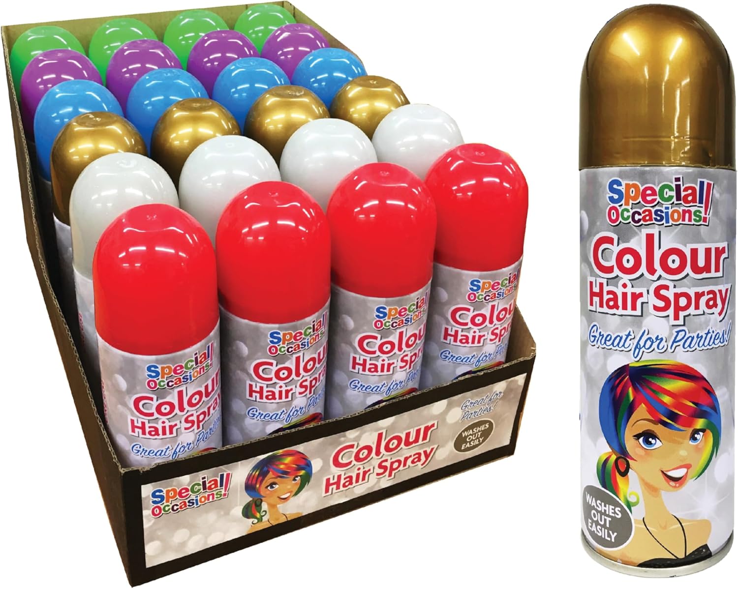 Spray per tingere i capelli, 200 ml. Ideali per qualsiasi celebrazione, feste in maschera, feste di addio al celibato/nubilato ecc. Si lava facilmente dopo l’uso. 6 colori a scelta.