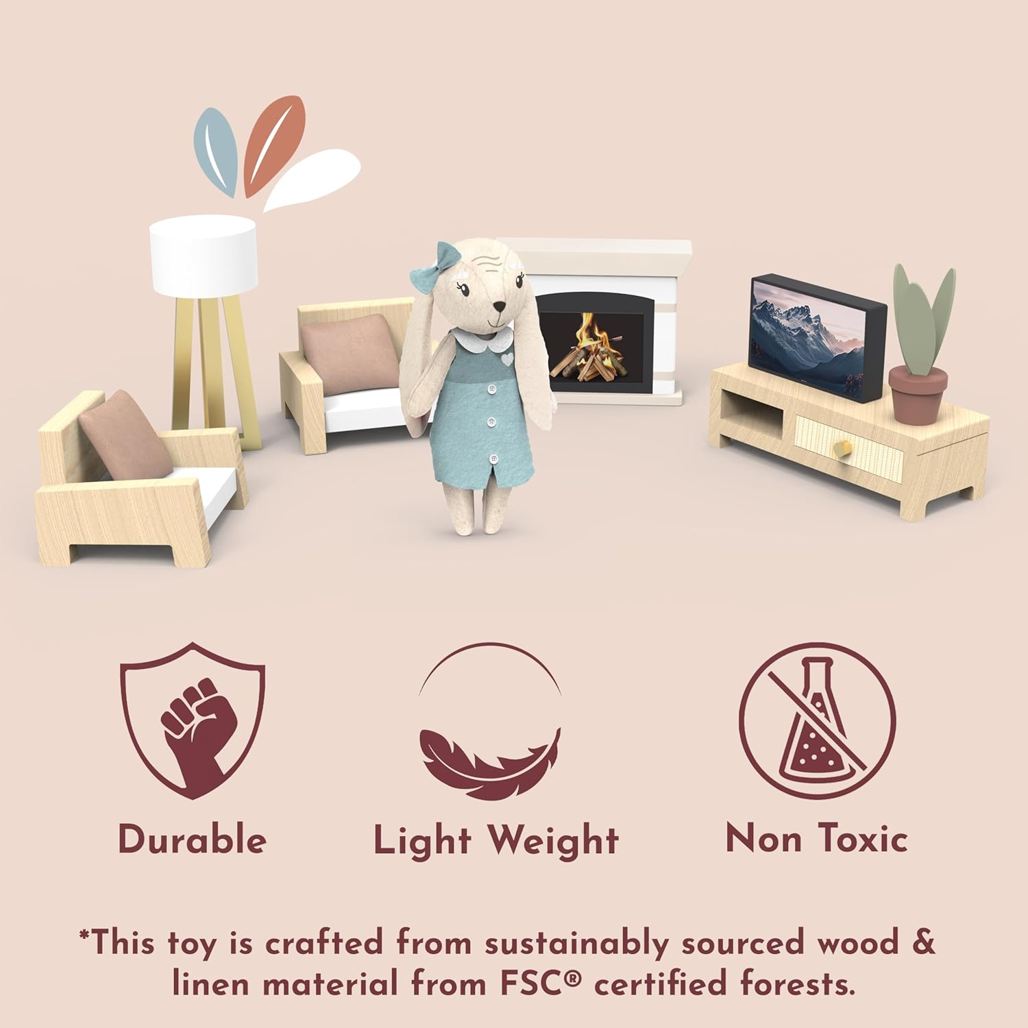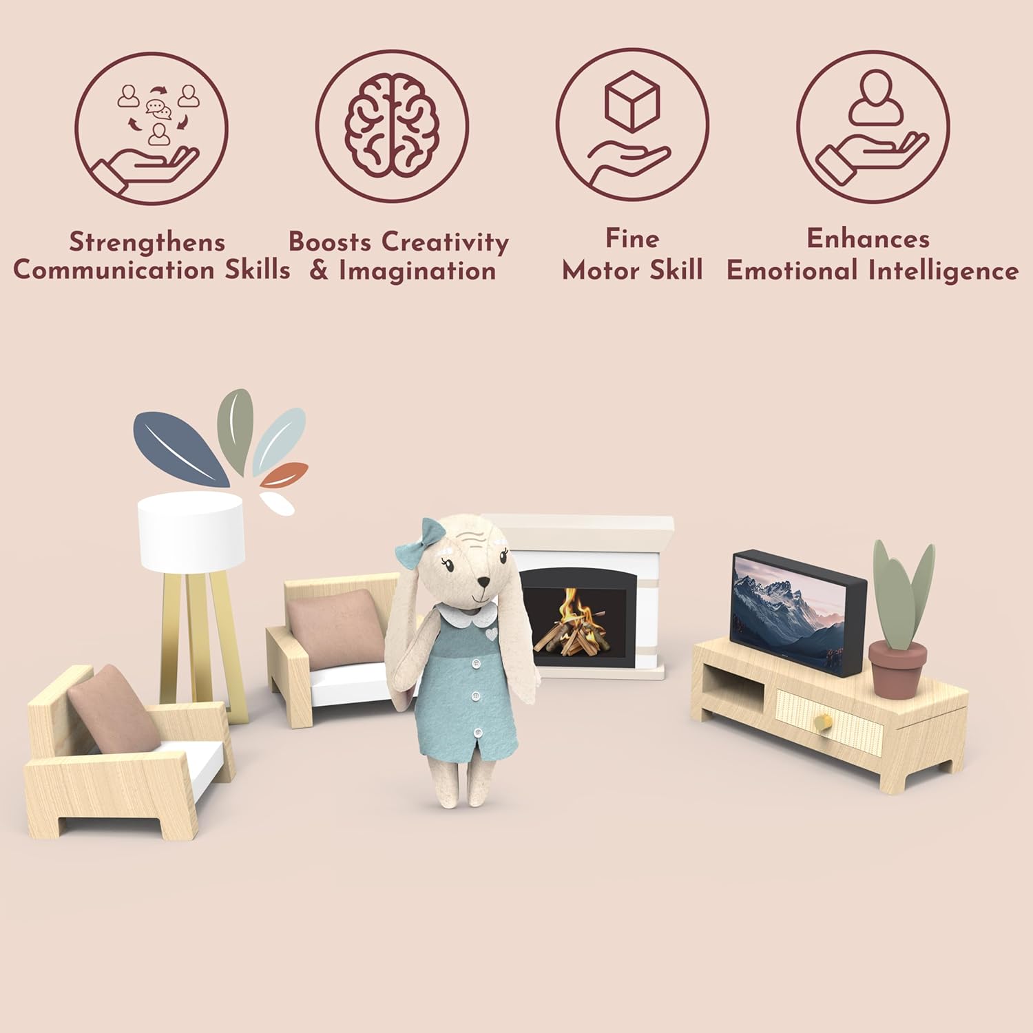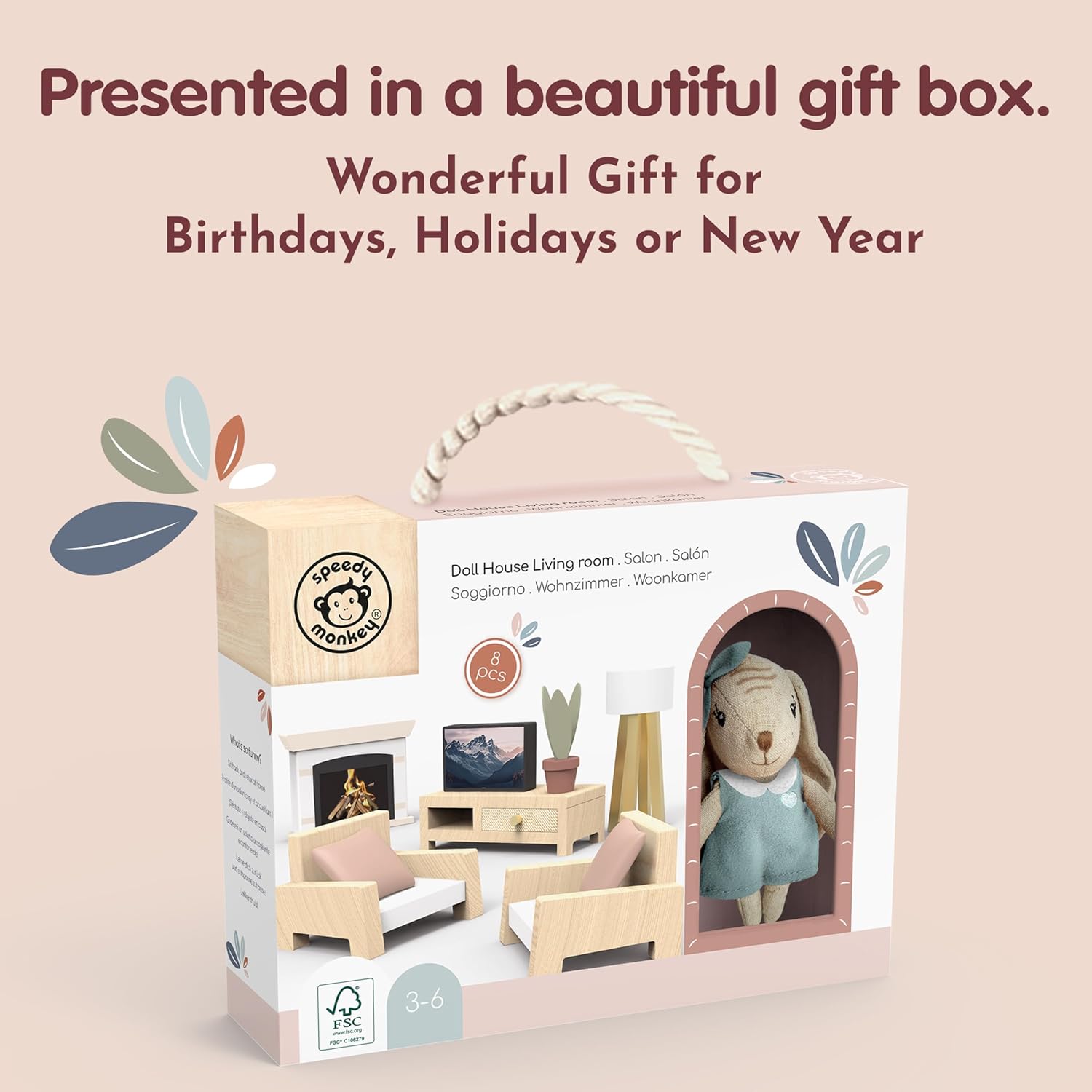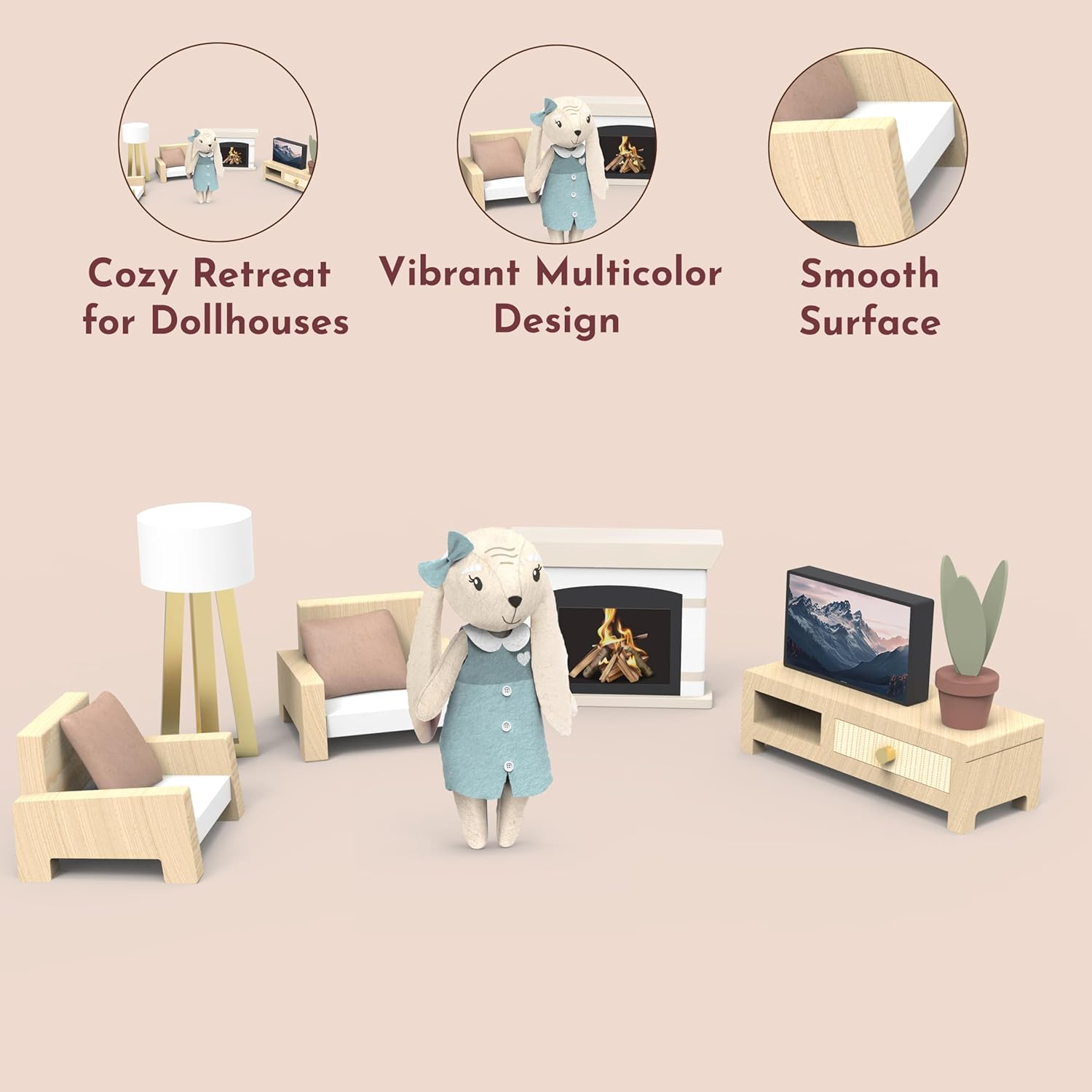 100%: Entra in un mondo di narrazione con il set da gioco per salotto della casa delle bambole! I bambini possono creare divertenti scenari di gioco finto, decorare la loro casa delle bambole e dare vita al loro mondo in miniatura con mobili accoglienti, tra cui un divano, una TV in miniatura e un'affascinante lampada da terra. Inoltre, un amico coniglietto a sorpresa aggiunge magia in più a ogni avventura. Questo set di mobili per casa delle bambole presenta colori vivaci e dettagli affascinanti che migliorano istantaneamente qualsiasi stanza in miniatura. Il design accattivante stimola la creatività ed è perfetto per decorare case delle bambole con un tocco di stile giocoso. Ideale per i bambini che amano l'arredamento della casa delle bambole! Realizzato proprio per le mani piccole, questo set da gioco è perfetto per bambini, bambini e ragazze dai 3 anni in su. Ottimo per costruire abilità di narrazione, sviluppo motorio fine e divertimento senza schermo attraverso ore di gioco fantasioso di finta con mobili in miniatura come il divano, la TV e la lampada! Aggiungi ancora più magia al gioco con un adorabile coniglietto in miniatura incluso nel set! Questo simpatico personaggio rende ogni finta festa del tè, storia o avventura della casa delle bambole ancora più piacevole e divertente da esplorare per i bambini. Perfetto per scenari di gioco finto! Mantenere il set da gioco fresco e pulito è semplice: basta pulire con un panno umido per rimuovere polvere o sporco. Evitare l'uso di prodotti chimici aggressivi per mantenere la vivace finitura verniciata e garantire un gioco duraturo per l'arredamento della casa delle bambole del tuo bambino, compresi i mobili.