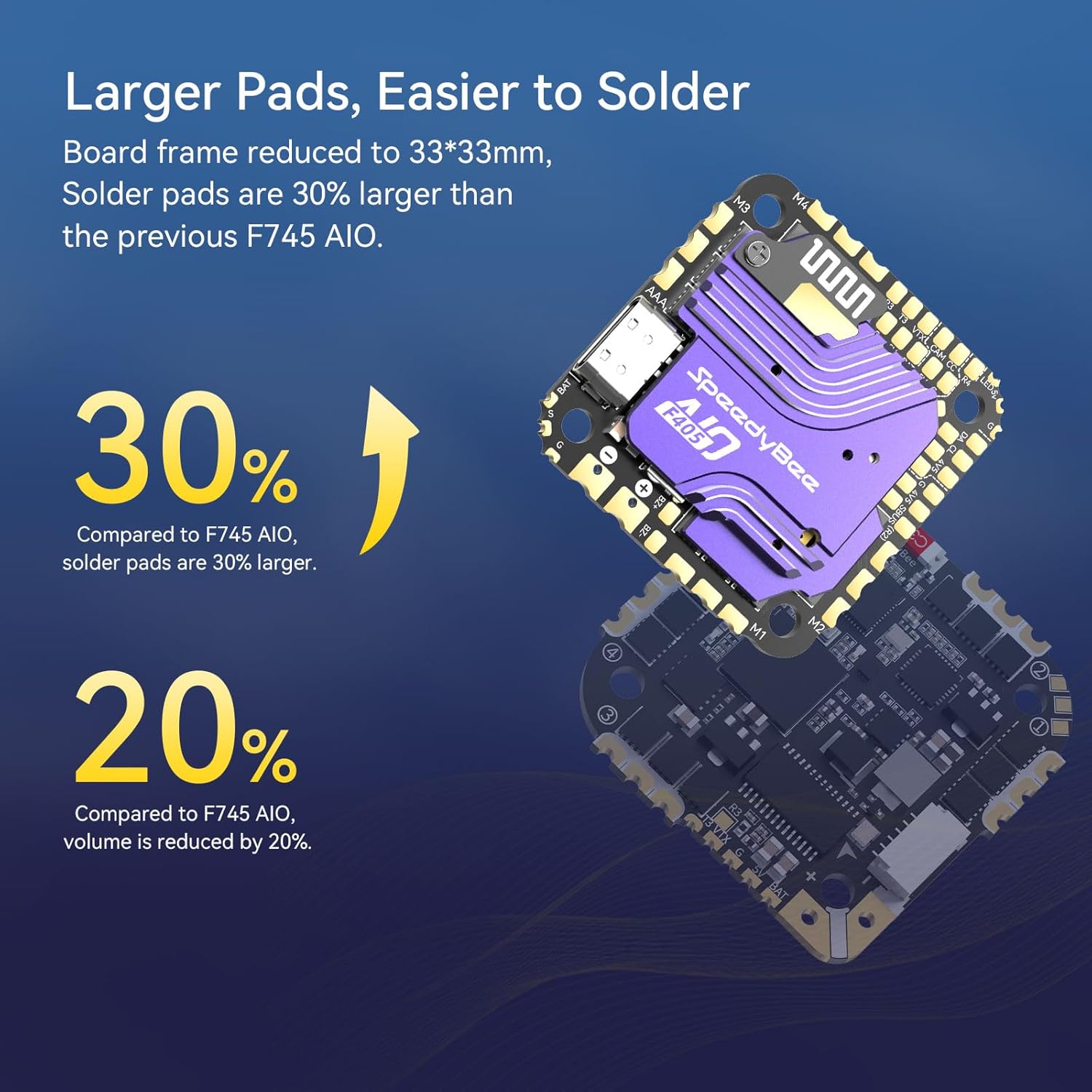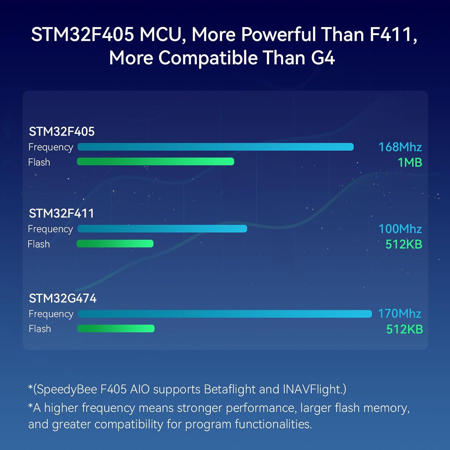 【Design All-in-One】 Lo SpeedyBee F405 AIO 40A integra ESC e controller di volo in un'unica unità compatta, risparmiando spazio e semplificando l'installazione su droni FPV 3-6S. 【ESC da 40A ad Alta Corrente】 Dotato di un potente ESC da 40A, questo controller di volo supporta batterie LiPo 3-6S, offrendo una corrente sufficiente per droni FPV freestyle e racing, garantendo una potenza fluida per manovre agili. 【Compatibilità con Firmware Bluejay】 Pre-installato con firmware Bluejay, questo controller di volo migliora le prestazioni e l'efficienza del motore, assicurando voli più fluidi e minori consumi energetici. 【Montaggio Compatto 25.5x25.5mm】 Con un pattern di montaggio da 25.5x25.5mm, lo SpeedyBee F405 AIO si adatta facilmente a telai compatti per droni, ideale per droni FPV mini e micro con spazio limitato. 【Processore Avanzato F405】 Il processore F405 integrato offre prestazioni affidabili con tempi di risposta rapidi, garantendo un controllo stabile e reattivo per applicazioni FPV racing, freestyle e cinematografiche. 【Supporto Esperti】 Per qualsiasi problema, contatta prima il supporto tecnico SpeedyBee. Siamo qui per offrirti assistenza rapida e soluzioni.
