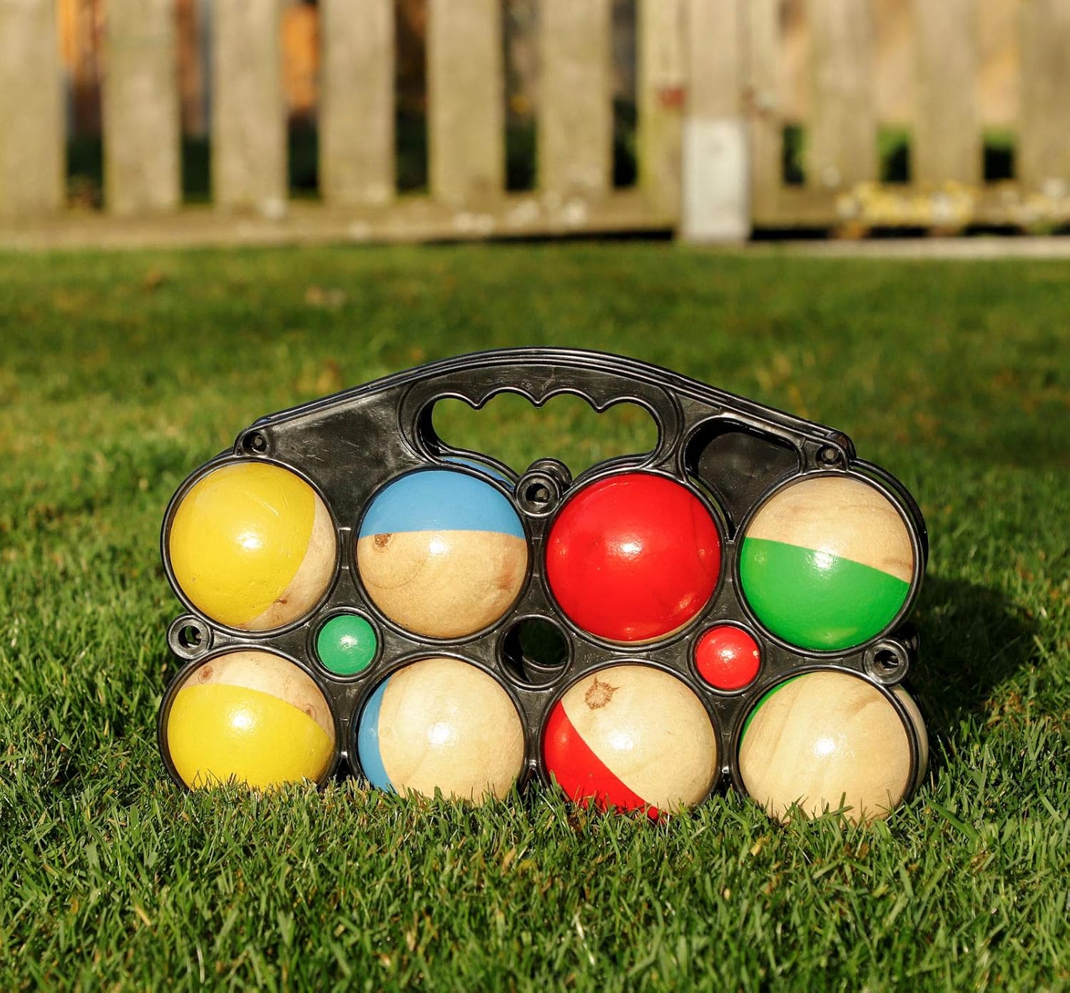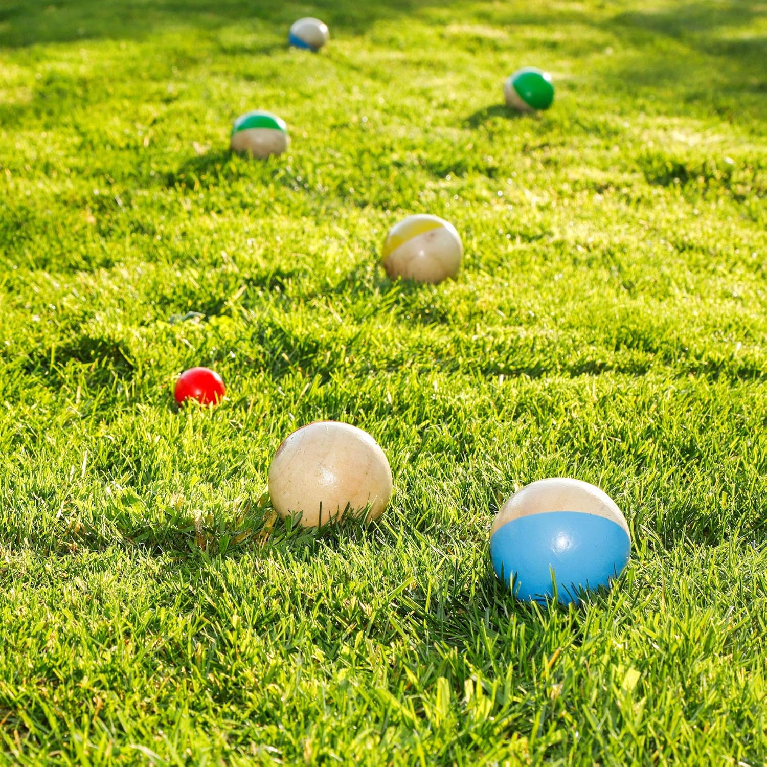 Il diametro di ogni sfera è di circa : 7 cm 8 palline in legno Peso: circa : 100 grammi per sfera di legno – extra leggera, adatta anche per bambini Include 2 palline in legno, 1 cestino per il trasporto Adatto per bambini dai 6 anni in su