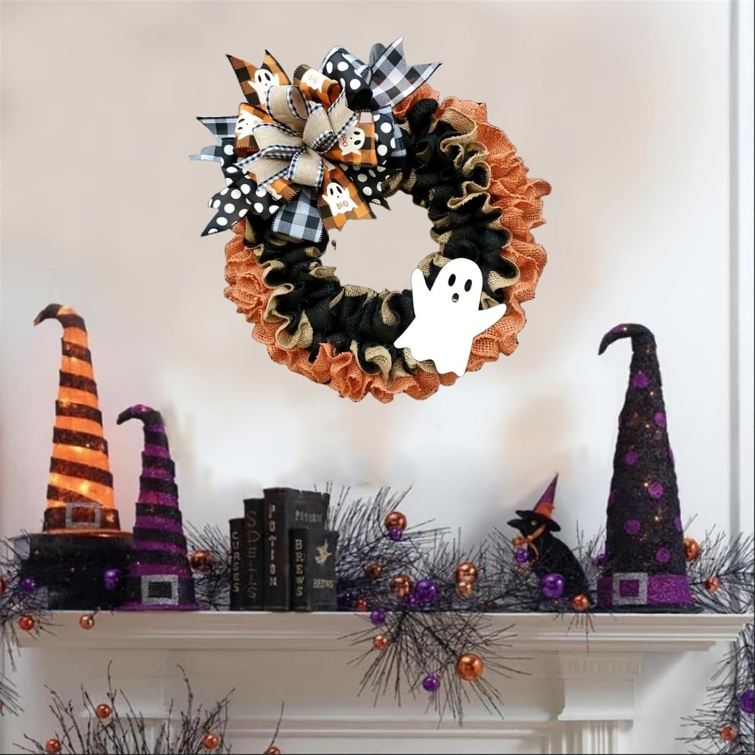 Abbraccia Halloween e crea scene con la nostra ghirlanda fatta a mano; non è solo una decorazione, questo è un accessorio di dichiarazione che incarna la sostanza della stagione Realizzata con lino e una robusta tavola di legno, questa ghirlanda mostra una figura spettrale agghiacciante accentuata da un fiocco, assicurando che resista alla stagione più spettrale anno dopo anno Adatta per gli appassionati di Halloween e coloro che si dedicano all'ambiente inquietante, questa ghirlanda è essenziale per le famiglie che cercano di aggiungere un tocco di fascino inquietante ai loro decori per le vacanze Trasforma la casa in una copertura ossessionante con la nostra ghirlanda di spettro di Halloween, centrotavola inquietanti ma eleganti che promettono di diventare il tema del quartiere Adatta per decorare la tua festa di Halloween, questa inquietante ghirlanda da parete decora il palco per una serata di tutti i doni in qualsiasi ambiente interno o esterno riparato