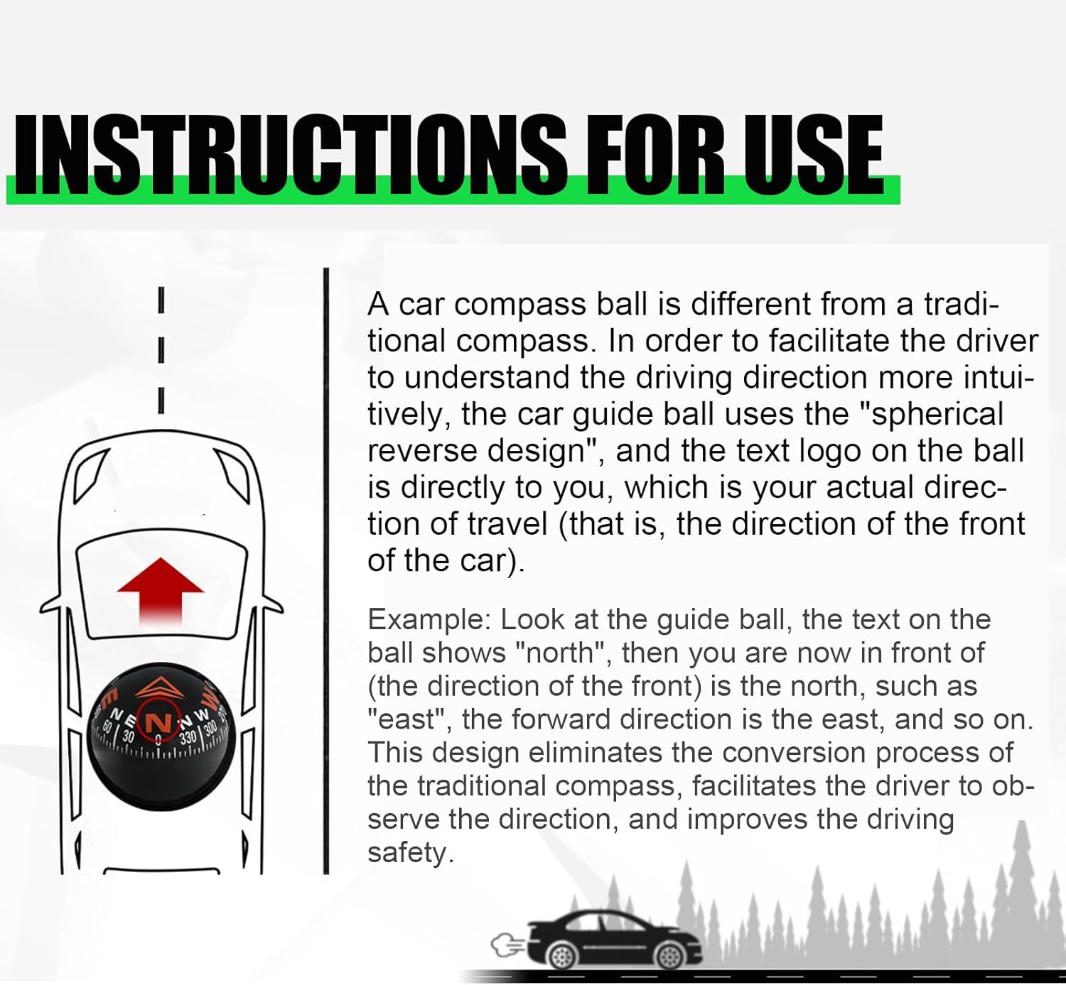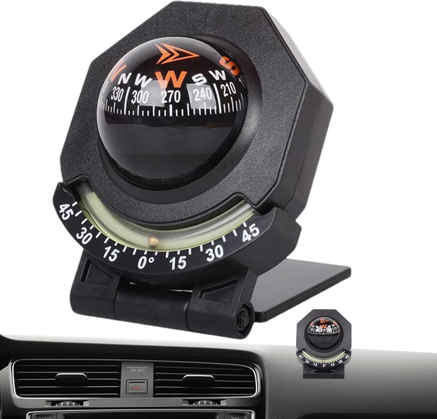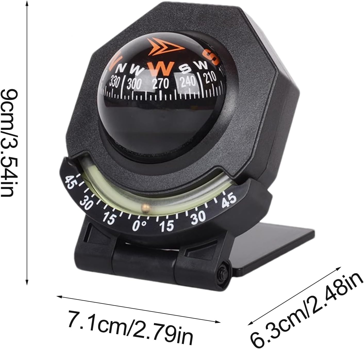 Broad Scope of Uses: With our dashboard compass, effortlessly and accurately guide your direction in cars, trucks, boats, or while camping and climbing. Widely applicable to all types of vehicles, this will guide you through any adventure Good Choice: Featuring a glowing function and inclinometer, this dashboard compass ball allows measurement of incline angles, perfect for outdoor adventurers to navigate easily in low-light conditions Effortless Portability: Easily carried in your backpack or mounted in your vehicle, this portable design car ball is a perfect addition to your travel gear Useful and Practical: Expertly navigate your boat with our easy-to-install dashboard compass ball. With 180 adjustment and simple calibration, your accuracy is always on point, saving time out Accurate Navigation: Let our dashboard compass be your perfect travel companion, guiding you towards your destination with high precision and accuracy, making your easy