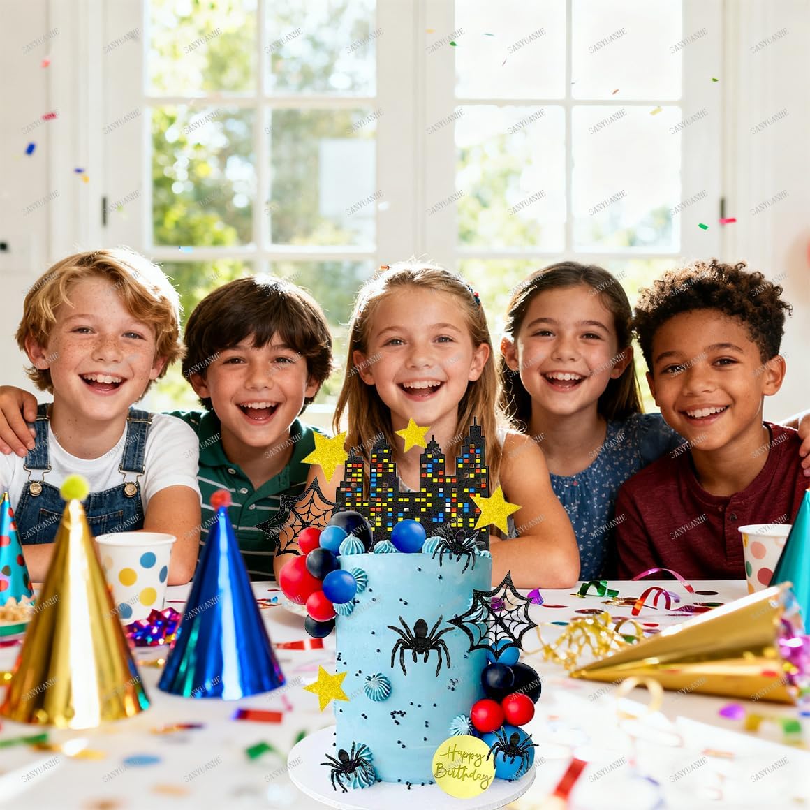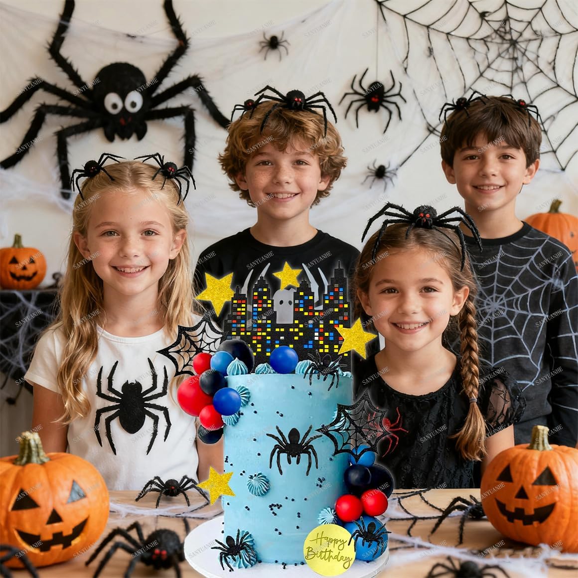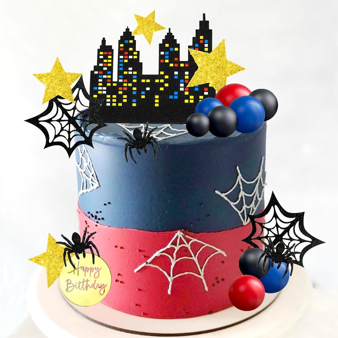 Decorazione per torta a ragno: 32 pezzi di decorazione per cupcake, 5 ragni, 5 ragnatele, 5 palline nere, 5 palline blu, 5 palline rosse, 1 decorazione per torta di compleanno, 1 decorazione per torta di compleanno, 7 decorazioni per torte a forma di stella, composta da diversi design, è ideale per ogni compleanno. Festa, dona alla tua fata ier gioia extra e crea ricordi indimenticabili. Design unico del ragno: con sfondo nero ragno, carino e vivace. Il design degli animali dei cartoni animati è un articolo decorativo per bambini e adulti alle feste di compleanno e dona atmosfera alla tua festa. Materiali di decorazione per torte: questa decorazione a ragno è realizzata in cartone spesso e spiedini di bambù, inodori, sicuri e facili da pulire. La decorazione si inserisce facilmente in una torta o cupcake ed è una sorpresa per qualsiasi festa di compleanno. Facile da montare: la decorazione a ragno per torte è facile da installare inserendo i bastoncini di bambù nella torta. Ideale per torte, dessert, cioccolatini, gelati e per creare un'atmosfera festosa durante feste di compleanno e feste. Ampia gamma di applicazioni: ragno di compleanno, compleanno per bambini, decorazione per feste a ragno, decorazione per cupcake, decorazione per cupcake, decorazione per torte, ragni di Halloween, caffè e torte, torta al cioccolato, set di decorazioni per torte di compleanno.