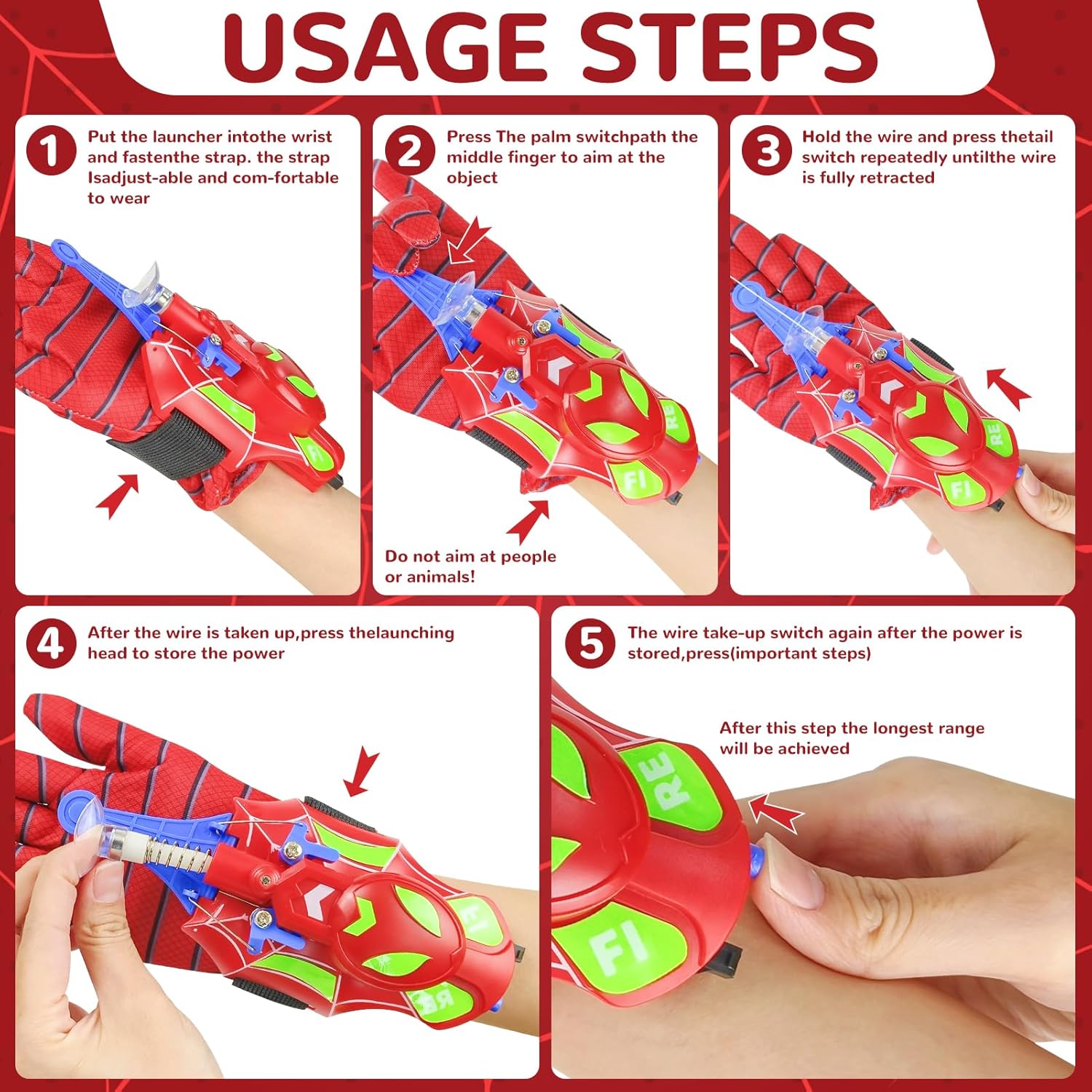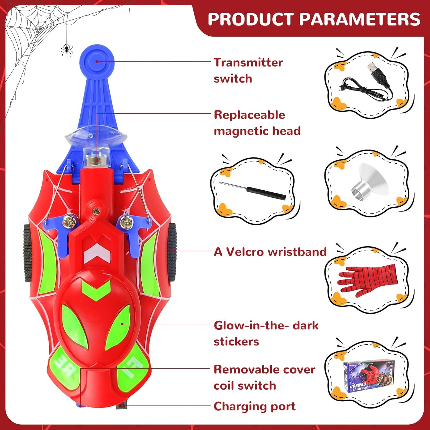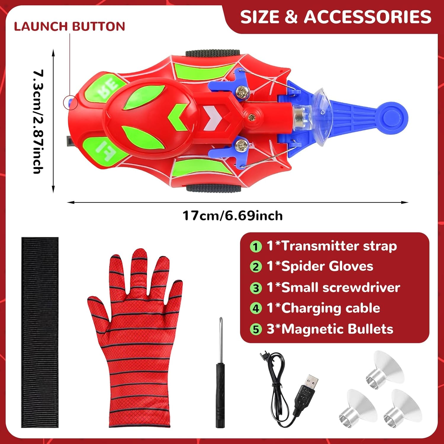 SpiderM Web Shooter e Divertente:Questo Spiderm Web Shooter elettrico per bambini offre un effetto super realistico come un vero Spider. Il Spiderm Web Launcher con filo e recupero automatico della corda ai piccoli di giocare a imitare il loro super-hero preferito durante Halloween, feste o cosplay Sistema Automatico e Ricarica USB:Grazie Spara Ragnatele Spiderm al meccanismo di avvolgimento automatico del cavo e alla ricarica USB integrata, questo Lancia Ragnatele spiderm è sicuro, comodo e riutilizzabile. Giocattolo da Polso Nessuna batteria aggiuntiva necessaria – pronto per ore di gioco Set Completo con Guanti da super-Eroe:Il Spara Ragnatele Spiderm set cosplay Spiderm include guanti da lanciatore comodi ed elastici che si adattano al polso del bambino, offrendo un’esperienza di gioco immersiva e divertente. Lancia Ragnatele spiderm Perfetto per feste di carnevale, Halloween o giochi di ruolo a casa Idea Regalo Perfetta per Bambini:Un Lancia Ragnatele spiderm super-hero per ragazzi e ragazze che stimola l’immaginazione e la creatività. Lancia Ragnatele spiderm per cosplay Feste e Compleanni, Giochi Bambino 5-10 Anni.Ottimo come regalo di Natale, compleanno o Halloween, il lancia Spara Ragnatele Spiderm automatico farà vivere ai bambini avventure indimenticabili Materiali Sicuri e Durevoli:Realizzato in materiali plastici di alta qualità, leggeri e atossici, il Spiderm Web Launcher con filo e recupero automatico della corda garantisce sicurezza e resistenza. Spara Ragnatele Spiderm Ideale per uso interno ed esterno, con un design ergonomico e moderno