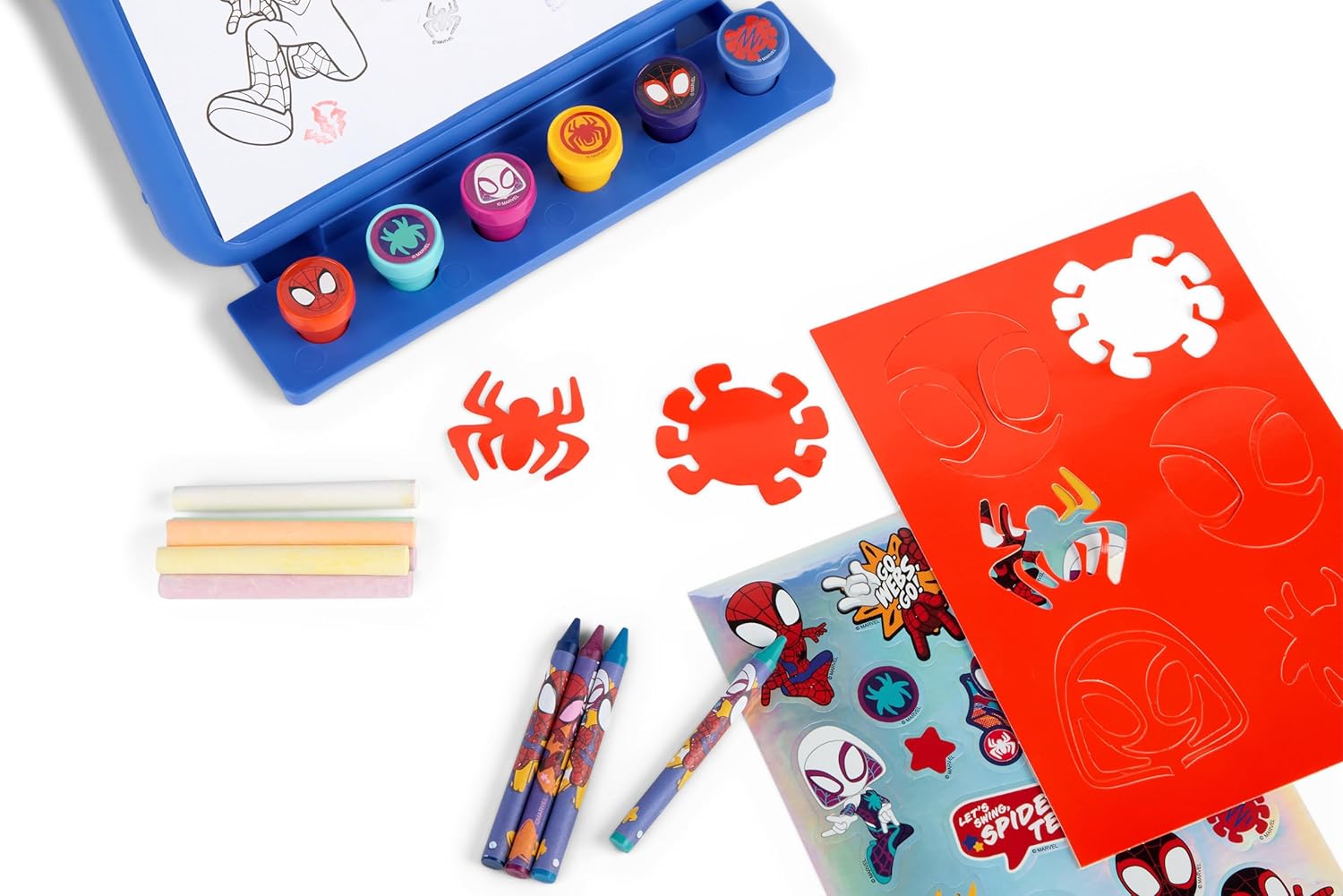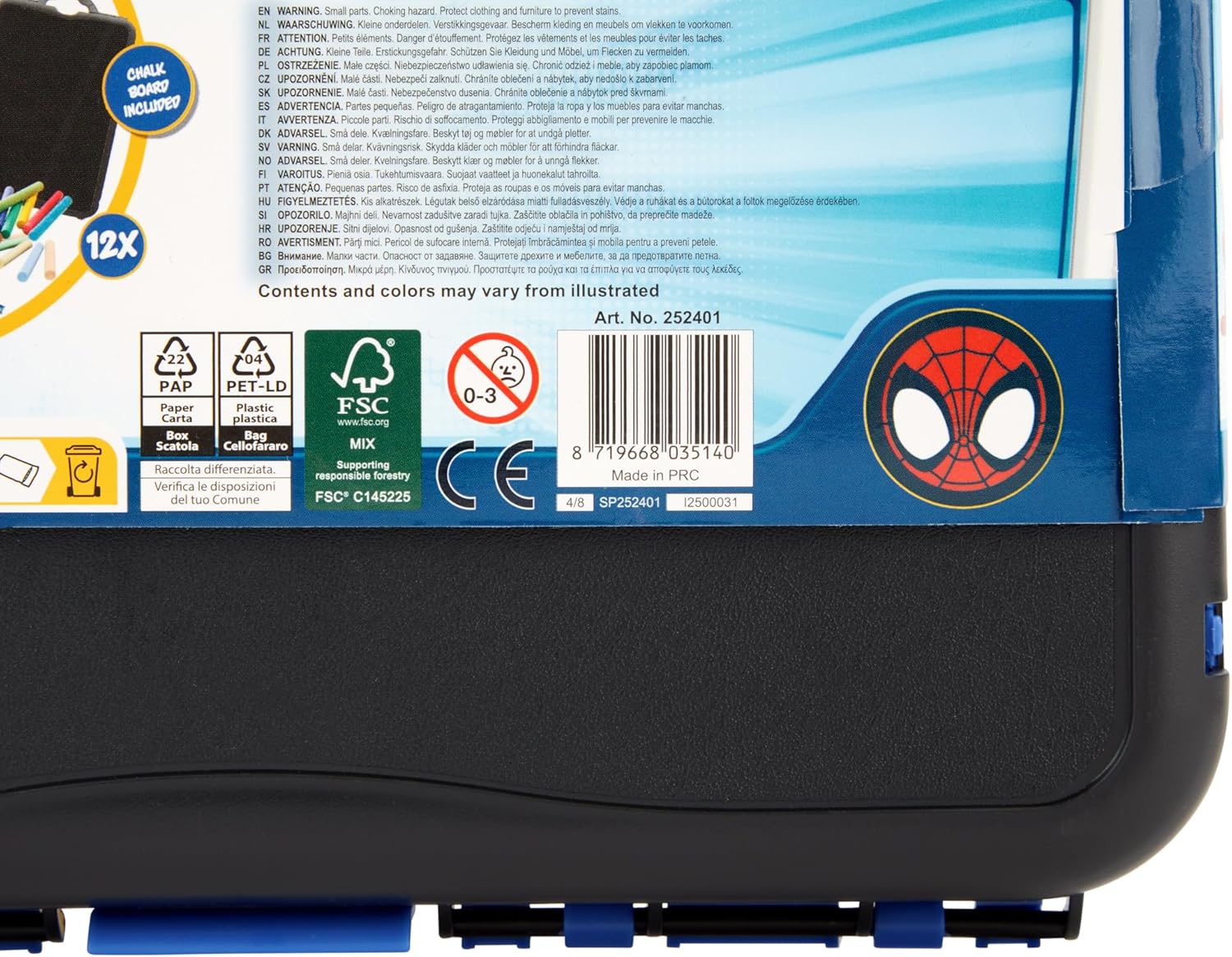 STABILIMENTO ARTISTA PORTATILE: il robusto cavalletto in formato valigia offre tutto ciò di cui i piccoli artisti hanno bisogno, ideale per la casa e in viaggio. Ampio set di pittura: contiene diversi motivi spidey da colorare, contenitori per vernici, accessori per la pittura e adesivi creativi, tutto in modo ordinato nella valigia. Favorisce la creatività: i bambini imparano a disegnare, dipingere e provare giocosamente. Ideale per promuovere abilità motorie, concentrazione e immaginazione. Design divertente per i fan: i personaggi popolari come Spidey e i suoi super amici rendono il set un punto forte per tutti i piccoli fan di Marvel. Regalo perfetto a partire dai 3 anni: per compleanno, come pensierino o per pomeriggi creativi, un regalo premuroso per ragazzi e ragazze.