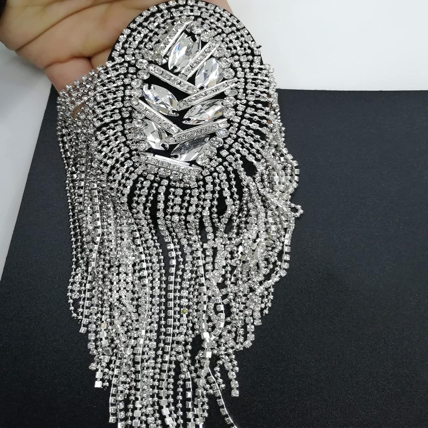 Descrizione: Il design a nappe lunghe rende questa spilla da spalla molto bella e alla moda. Ed è decorato con strass, che è molto brillante e accattivante. Sarai più temperamento e attraente indossando questa lunga spilla da spalla con nappe e strass. Realizzato in materiale in lega di alta qualità, il perno della spilla non è facile da deformare e rompere ed è resistente. La lunghezza della spilla è di 20 cm, la larghezza è di 5 cm. Puoi usare questa spilla per decorare vestiti, pantaloni, borse e altro. E puoi anche regalare questa spilla creativa come un bel regalo al tuo caro amico Nome articolo: spilla Materiale: strass Colore: colore argento Genere: uomini, donne Caratteristiche: nappe, strass, delicato Dettagli sulle dimensioni: Dimensioni: 20 cm x 5 cm/7,87" x 1,97" Appunti: A causa della differenza di impostazione della luce e dello schermo, il colore dell'articolo potrebbe essere leggermente diverso dalle immagini. Si prega di consentire una leggera differenza dimensionale dovuta alla diversa misurazione manuale. La confezione include: 1 spilla