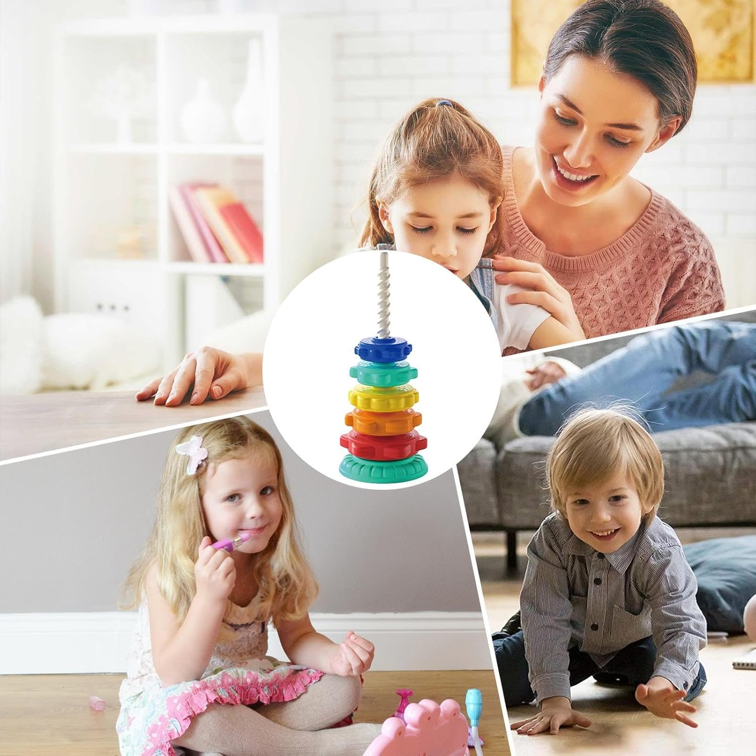 Sviluppa abilità: migliora la consapevolezza spaziale e il pensiero logico, migliorando la capacità di problem solving e coordinamento mano nell'occhio, promuovendo progressivamente le abilità cognitive Aiuto per la carta d'identità dei colori: il giocattolo adotta colori vivaci dell'arcobaleno che possono attirare l'attenzione dei bambini e aiutarli a identificare meglio i colori e migliorare la percezione visiva Supporto dell'unità familiare: il nostro giocattolo spin-stack crea un modo divertente per aumentare l'interazione e rafforzare la relazione genitore-figlio. Ciò promuove la comunicazione familiare, l'approfondimento dei legami familiari e il sostegno dell'unità familiare Materiale di alta qualità: dite addio ai giocattoli fragili e mal fatti. I nostri giocattoli impilabili sono realizzati in materiale ABS di alta qualità, robusto, forte e non ha burrs. Con questo giocattolo i bambini possono divertirsi di più pur rimanendo sicuri e comodi Ottimo regalo: dare la gioia di giocare al giocattolo per lo spin stack. Perfetto per compleanni, Natale e Capodanno, promuove le abilità motorie e il pensiero immaginativo per un regalo indimenticabile