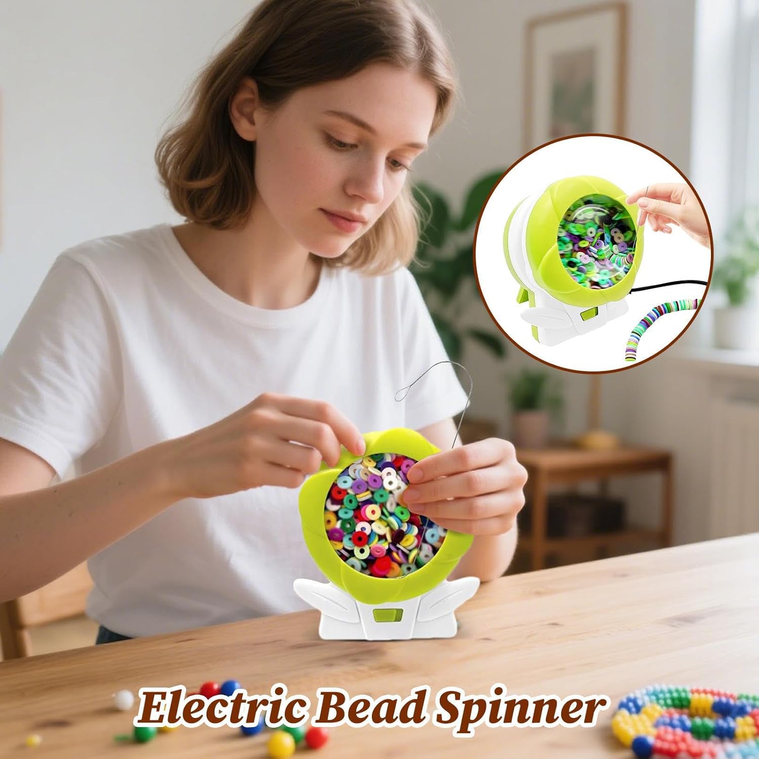 Spinner elettrico automatico per creare gioielli senza sforzo: gira rapidamente le perline su corde o fili, rendendo bracciali, collane e progetti artigianali più facili e veloci per bambini, adolescenti, adulti e principianti Attività divertente ed educativa per tutte le età: perfetto per giovani, ragazze, ragazzi, adolescenti e adulti, questo spinner aiuta a sviluppare creatività, coordinazione occhio-mano e abilità motorie fornendo ore di divertimento artigianale Design compatto e portatile per uso domestico o in viaggio: misura 9,8 x 6,7 x 10,5 cm, il filatore per perline è leggero e facile da riporre, ideale per camere da letto, aule o stanze di artigianato, e facile da trasportare in officine o date di gioco Costruzione durevole e sicura per un uso ripetuto: realizzato con materiali di alta qualità, questo spinner automatico resiste all'uso frequente, rendendolo adatto per bambini e adulti senza rischio di danni o problemi di sicurezza Regalo perfetto per compleanni, vacanze o appassionati di artigianato: un regalo creativo e coinvolgente per bambini, adolescenti, figlie, figli, fidanzate, amici e familiari che amano la creazione di gioielli e artigianato