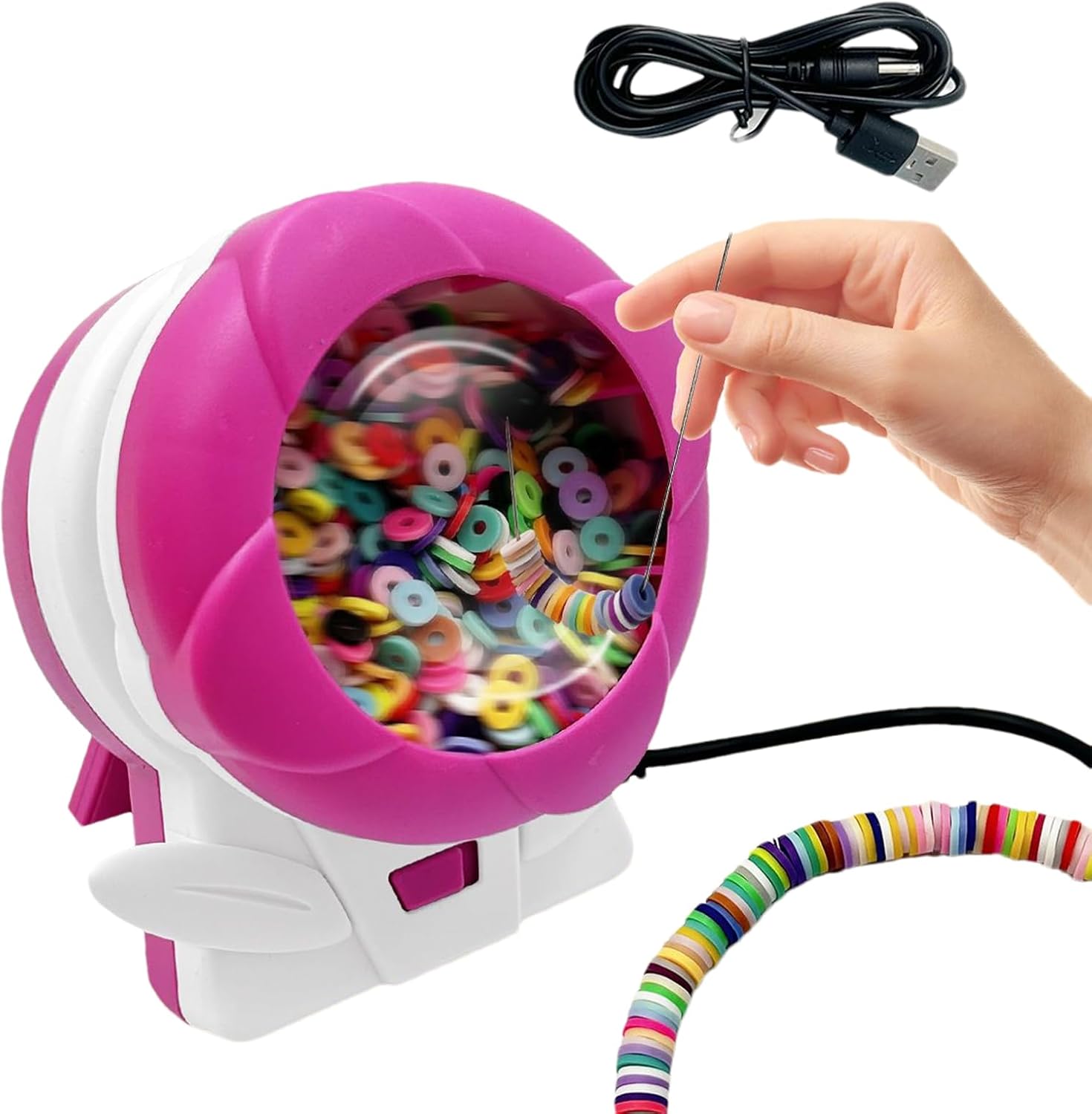 Miglioramento del piacere delle perline: realizzato per facilità d'uso, questo spinner per perline presenta un design adatto ai principianti che migliora il divertimento delle perline offrendo allo stesso tempo una produzione ad alta efficienza attraverso la sua configurazione portatile Efficiente produttore di gioielli: con funzionalità per la creazione di più gioielli, questo strumento è un'idea regalo artigianale che semplifica la creazione di braccialetti dell'amicizia, perfetto per regali di vacanza Soluzione di installazione senza sforzo: con tutti gli accessori inclusi e un manuale utente fornito, questo filatore per perline è pronto per l'uso immediatamente, offrendo un kit completo di apertura in confezione pronta per il regalo che soddisfa le esigenze di artigianato senza sforzo Creatività a doppia modalità: include guide dettagliate per attività specifiche del tipo di perline, supportando lo sviluppo delle abilità attraverso operazioni di creazione in doppia modalità coinvolgenti e divertenti Funzionamento intuitivo dei pulsanti: sperimenta la rotazione senza interruzioni del tallone con una funzione di controllo della velocità che ottimizza il ritmo e aumenta l'efficienza, attraverso il controllo intuitivo dei pulsanti, per un'esperienza di confronto manuale perfetta senza compromettere le prestazioni