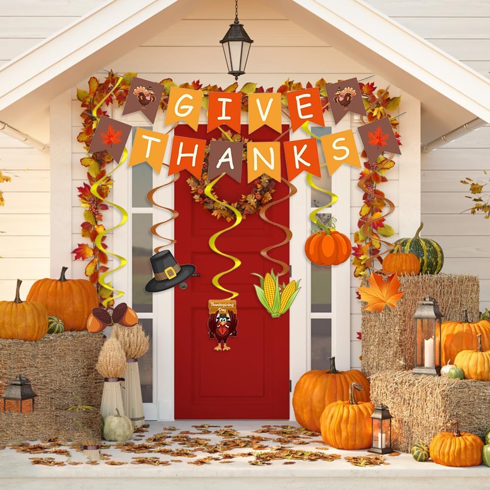 Striscioni a spirale per il Ringraziamento: riceverete 1 striscione per feste del Ringraziamento, 6 striscioni appesi per il Ringraziamento. Lo striscione con bandiera appesa adotta colori autunnali e design a foglie cadute, particolarmente adatto per feste autunnali, feste a tema autunnale, decorazioni per il Ringraziamento e Halloween. Materiali di alta qualità: la decorazione dello striscione del Ringraziamento è realizzata con materiali di alta qualità e puoi essere certo che la decorazione di questo autunno sarà utilizzata come decorazione per il Ringraziamento per decorare il tuo spazio. Vivi un indimenticabile Ringraziamento! Striscione da appendere e striscione autunnale: la combinazione di striscioni a motto del Ringraziamento e decorazioni autunnali rende la decorazione autunnale ancora più abbagliante ed esercita una magica reazione chimica che porta a una festa autunnale indimenticabile. Può essere appeso al muro come una tenda di sfondo e appeso a un tavolo, una sedia, un armadio, una finestra, una porta, ecc. Per aggiungere alle condizioni del sole. Molti elementi del Ringraziamento: la decorazione da appendere a forma di swirl del Ringraziamento di accessori per feste autunnali dispone di classici motivi come mais, zucca e tacchino, che si adattano bene alla festa autunnale e creano un'atmosfera più armoniosa per la vostra festa del Ringraziamento. Queste decorazioni per il Ringraziamento portano calore e gioia in ogni stanza e attirano l'attenzione di tutti coloro che le entrano. Vasta gamma di applicazioni: sono ideali per feste del Ringraziamento, autunno, autunno e raccolto. Questa decorazione autunnale porta calore e allegria a qualsiasi stanza e cattura l'attenzione di tutti coloro che lo entrano. Le nostre colorate decorazioni autunnali del Ringraziamento sono adatte a una varietà di ambienti, tra cui camini, soffitti, finestre, case, uffici, aule e negozi.