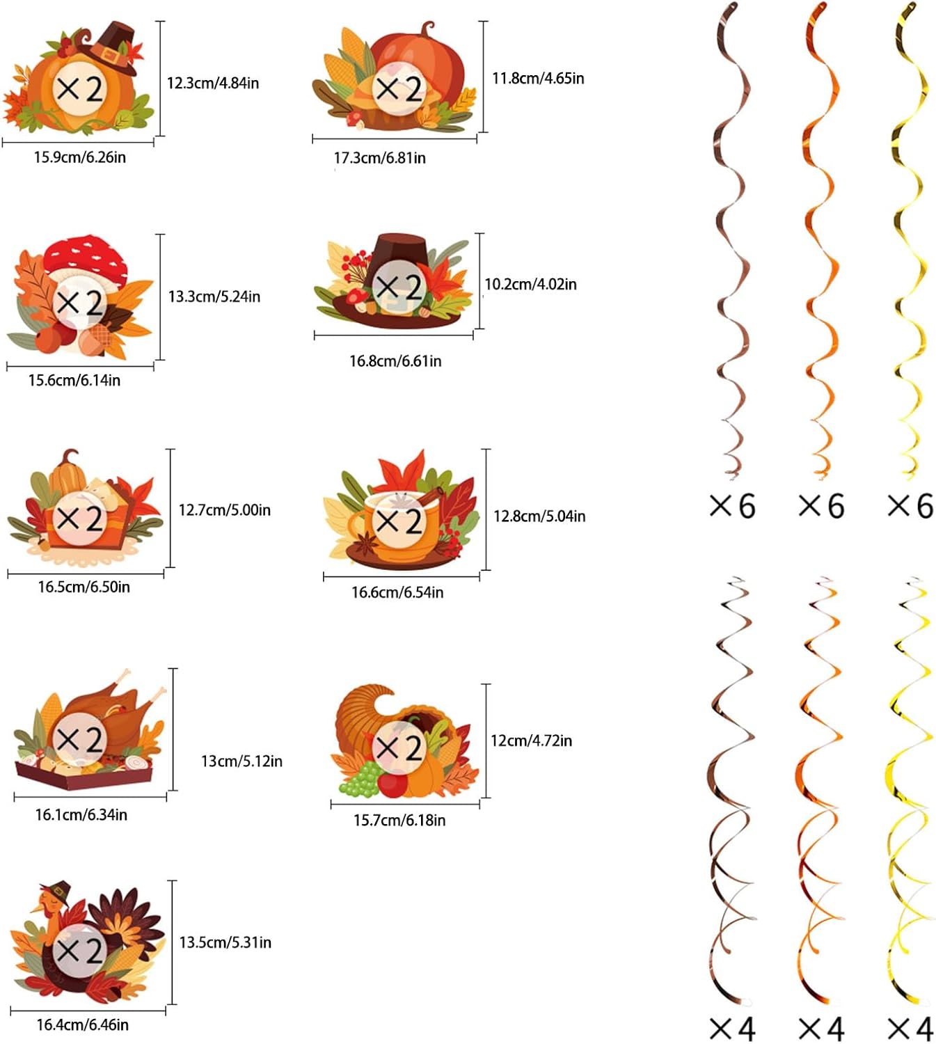 Migliora le tue decorazioni del Ringraziamento con il nostro delicato set di ornamenti da appendere a spirale, una combinazione di durata e stili che durerà per la stagione a venire Abbraccia la sostanza della gratitudine con queste decorazioni del Ringraziamento che possono essere mescolate e applicate per soddisfare qualsiasi tema di festa o design d'interni, garantendo che la tua celebrazione sia davvero unica Realizzati in PVC e carta, questi ornamenti a spirale resistono allo sbiadimento e sono facili da appendere e rimuovere, rendendo una pratica aggiunta alle tue decorazioni per le vacanze Adatto per chiunque festeggi il Ringraziamento, il nostro set di ornamenti è adatto per famiglie, scuole e uffici che cercano di creare un ambiente caldo e accogliente Trasforma qualsiasi spazio in una copertura per festival; dal portico anteriore e dal soggiorno alla zona pranzo, queste decorazioni da appendere sono ideali anche per feste a scuola o in ufficio