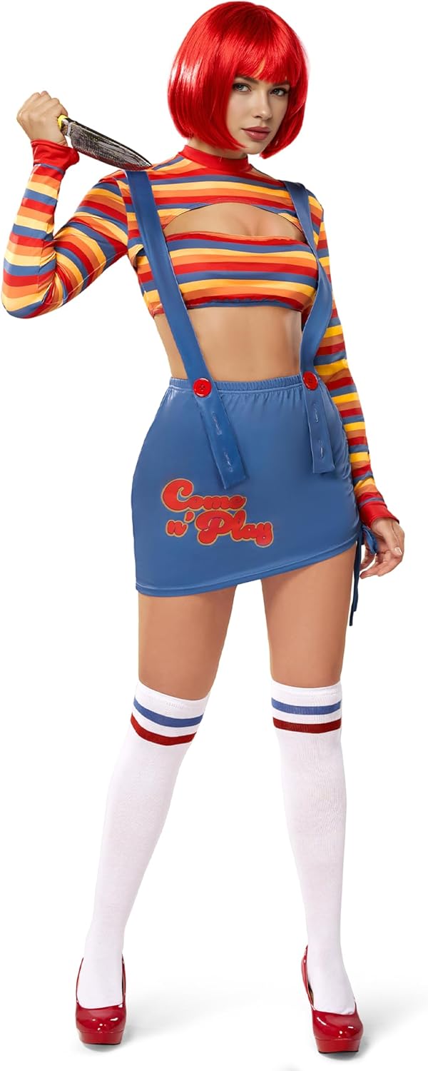 Spooktacular Creations Costume da bambola assassina per Halloween da donna, vestito da bambola assassina da incubo spaventoso per adulti, costume da donna per Halloween e cosplay a tema spaventoso