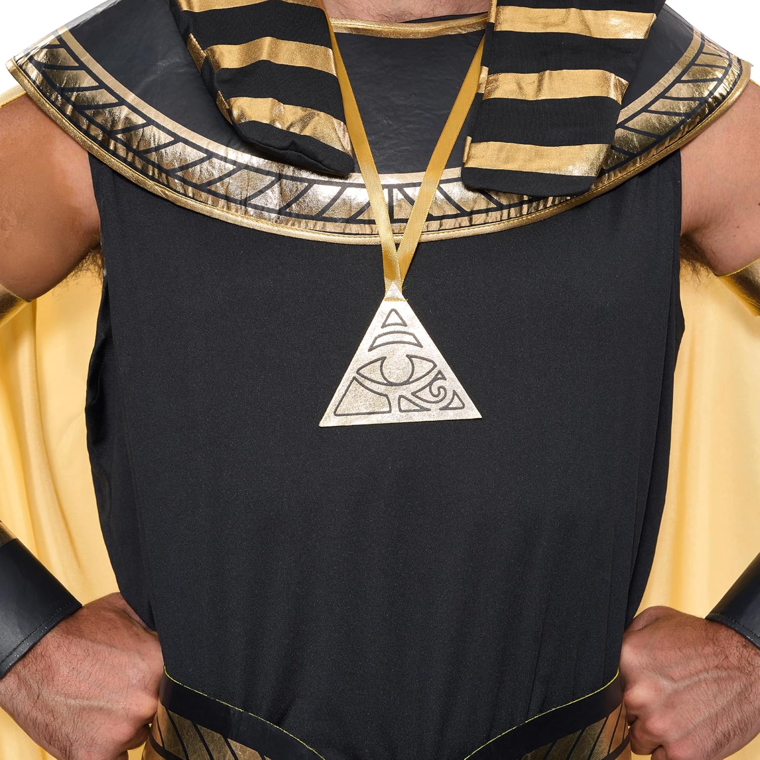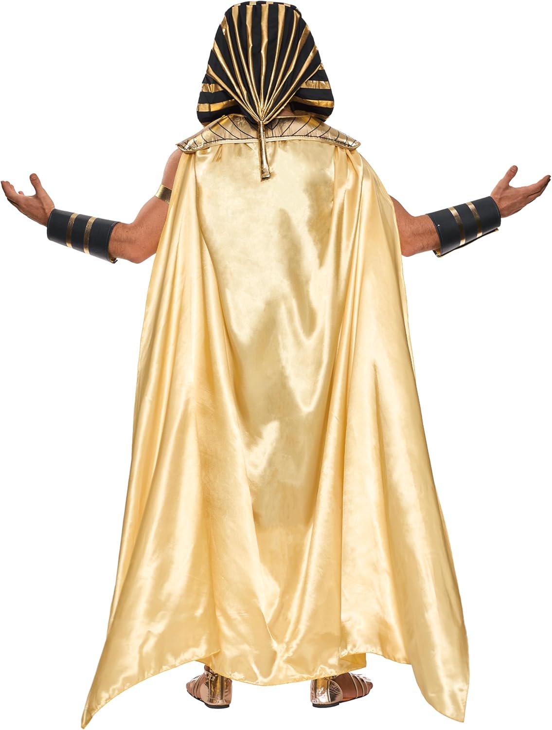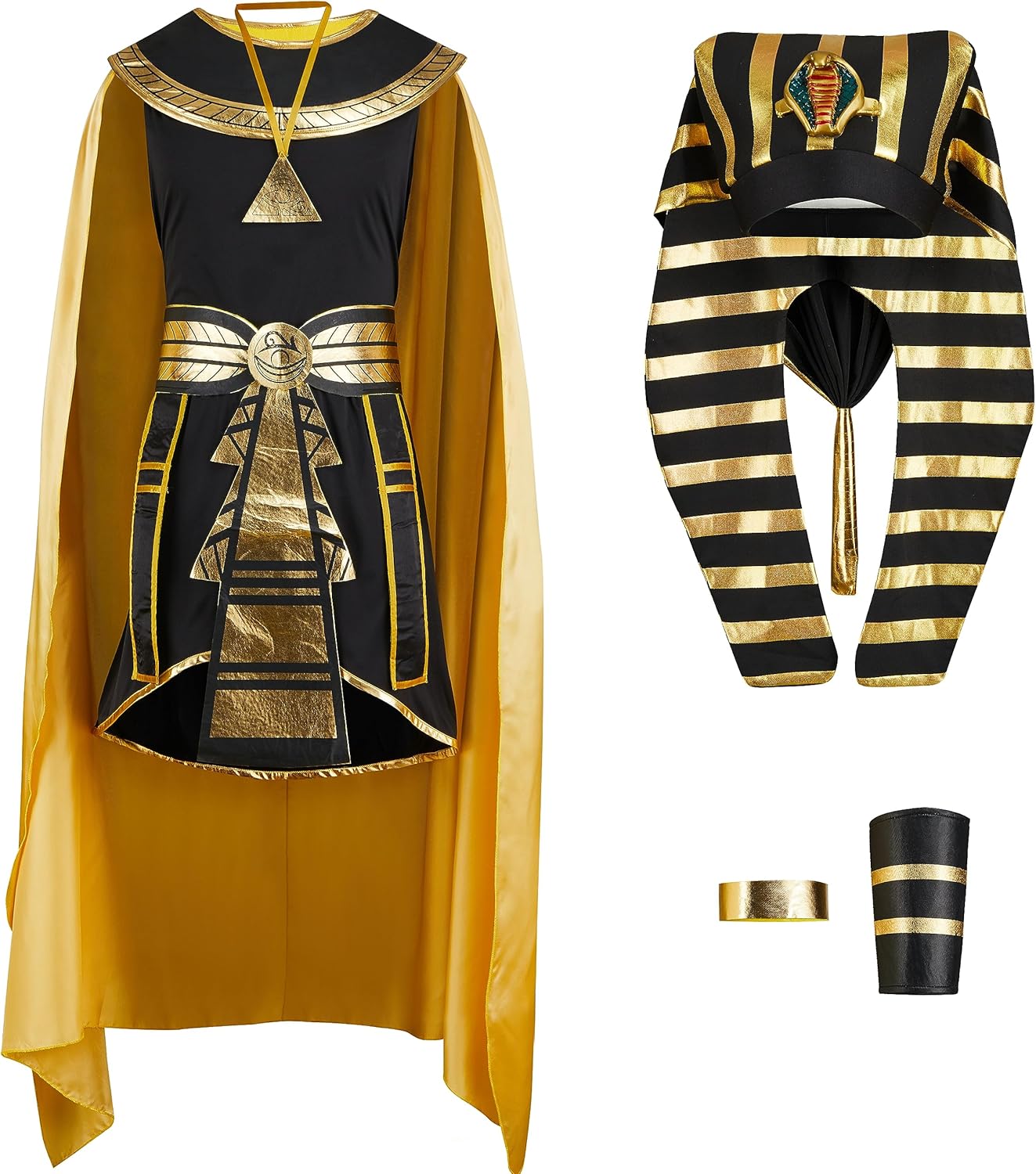 Spooktacular Creations Costume da faraone nero per uomo adulto, set costume da re egiziano per Halloween, festa in maschera, braccialetti cosplay, 1 collana, 1 fascia da braccio, 1 collare e 1 cintura, incluso tutto il necessario per diventare l'antico re egiziano QUALITÀ PREMIUM: questo costume da faraone egiziano è super resistente e realizzato con qualità premium. Realizzato in materiale 100% poliestere di alta qualità, questo costume dona un look unico e giocoso ad Halloween con questo costume da Re Faraone. Tutti ti faranno sicuramente un complimento OCCASIONI SPECIALI: Ideale per costumi di Halloween, feste in costume di Halloween, eventi di Natale/Capodanno/Pasqua, feste cosplay, feste a tema, spettacoli teatrali, sfilate e giochi di ruolo, questo costume da faraone è perfetto per tutte le occasioni FACILE DA PULIRE: Per mantenere il tuo costume da faraone pulito e fresco, ti consigliamo di pulirlo con una spugna o di lavarlo a mano. Non candeggiare, asciugare in asciugatrice o stirare. TAGLIE E DESIGN PERFETTI: questo costume da faraone è disponibile nelle taglie media, grande e X-large, che possono adattarsi perfettamente a uomini adulti di diverse taglie. Travestendoti come il maestoso faraone egiziano con il nostro set di costumi neri e dorati, puoi abbracciare lo spirito dell'antico Egitto e governare la festa.