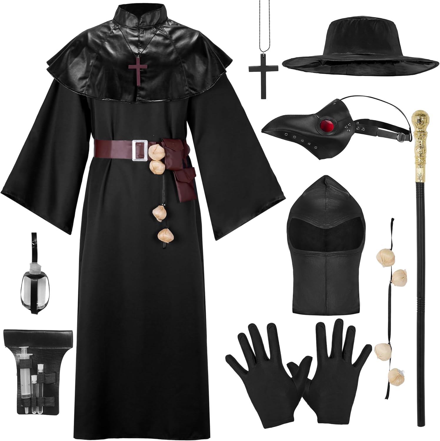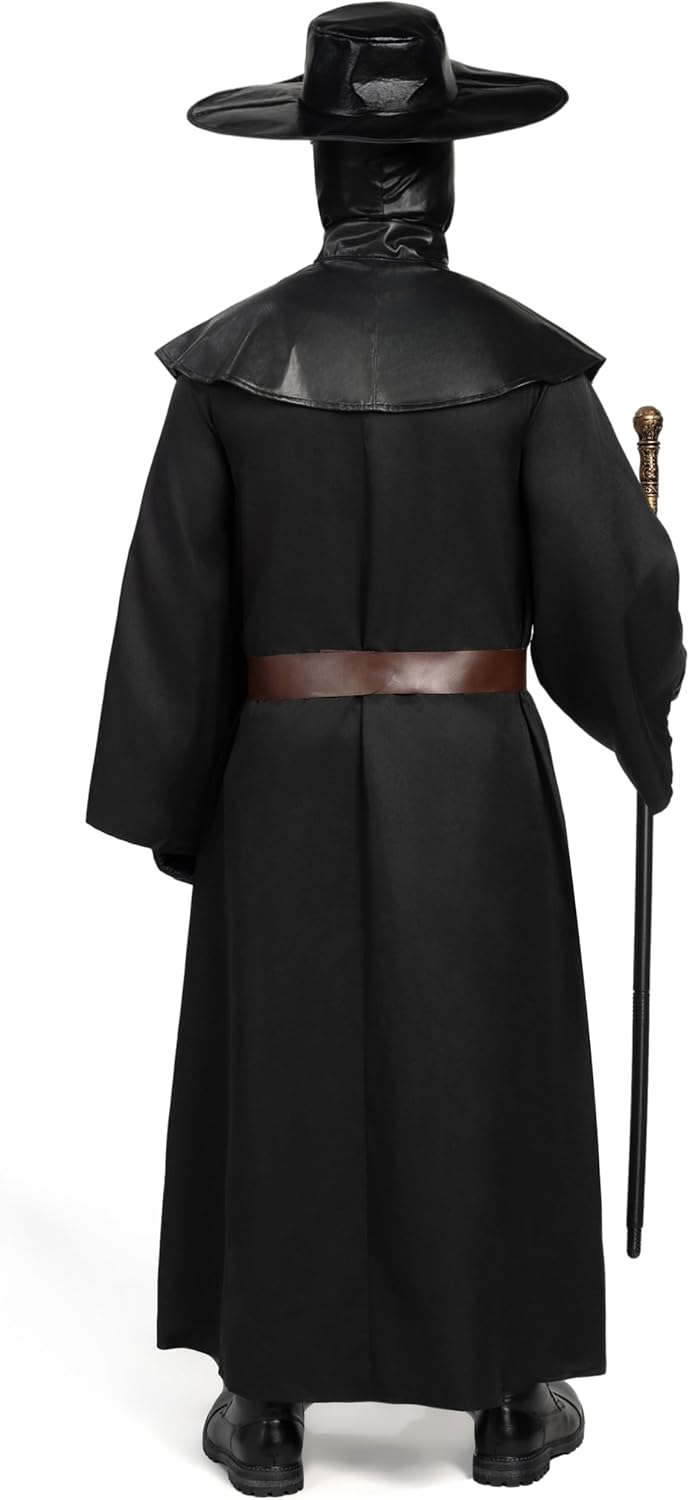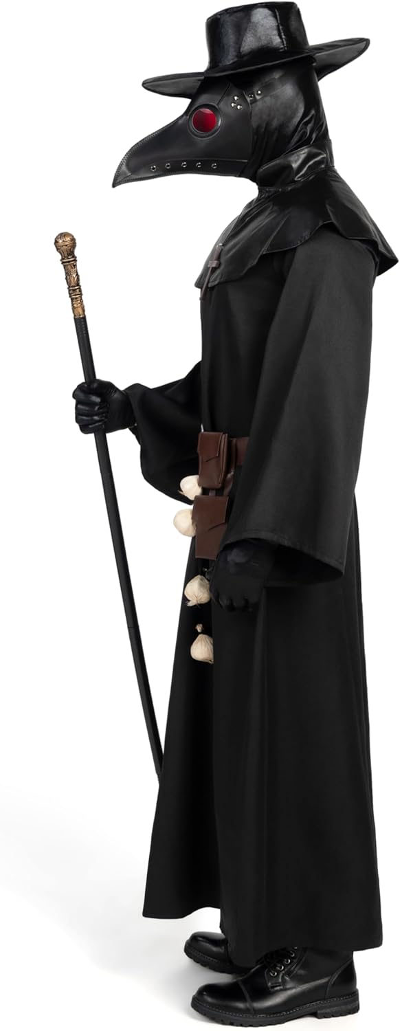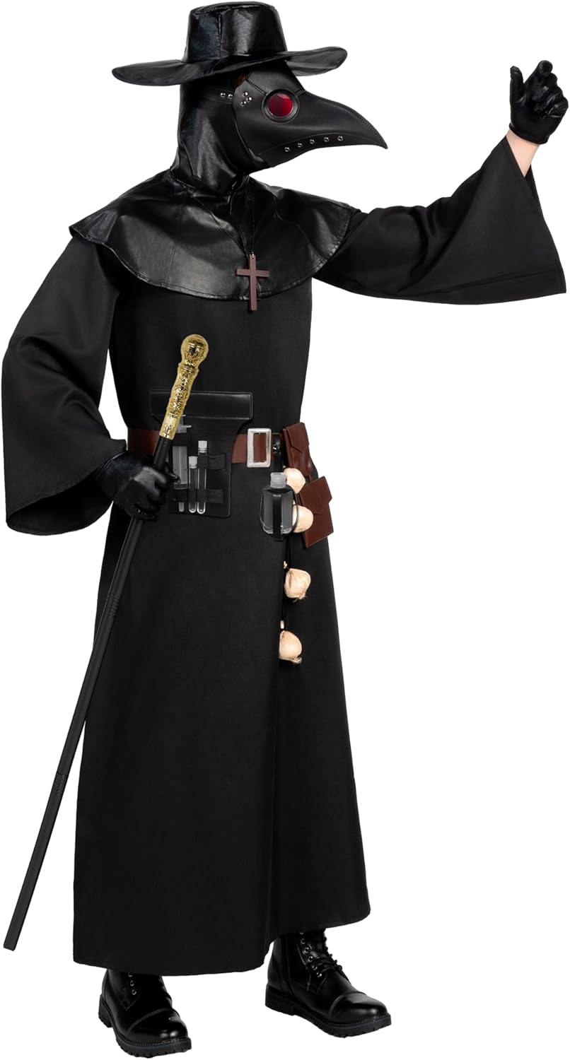Pacchetto super conveniente: il nostro set di costumi da medico della peste include 1 cappello, 1 maschera, 1 scialle, 1 veste, 1 paio di guanti, 1 cintura, 1 set di aglio, 1 scettro, 1 collana e 2 marsupi. Step the Plague Dottore con il nostro set completo di costumi Qualità premium: il nostro set di costumi da medico della peste da uomo è realizzato al 100% in poliestere ed è stato sottoposto a test di sicurezza per garantirne la qualità e la sicurezza Occasioni speciali: il nostro set di costumi da Dottore della Peste con il suo colore nero e gli accessori autentici del Dottore della Peste, il nostro set di costumi cattura l'essenza inquietante di questa figura storica. È adatto a varie occasioni, tra cui travestimenti di Halloween, feste in costume di Halloween, eventi notturni di Halloween. feste cosplay, feste a tema, spettacoli teatrali e giochi di ruolo Abbraccia l'enigmatico del Dottore della Peste e fai un'impressione straordinaria in ogni evento Facile da pulire: per mantenere la qualità del costume da medico della peste, si consiglia di pulire con una spugna o di lavare a mano. Non sbiancare, asciugare in asciugatrice o stirare per mantenere la qualità Taglie e design perfetto: il costume da medico della peste disponibile nelle taglie Small, Medium, Large, X-Large, il nostro set di costumi offre una vestibilità comoda per uomini, ragazzi adulti e individui di tutte le età