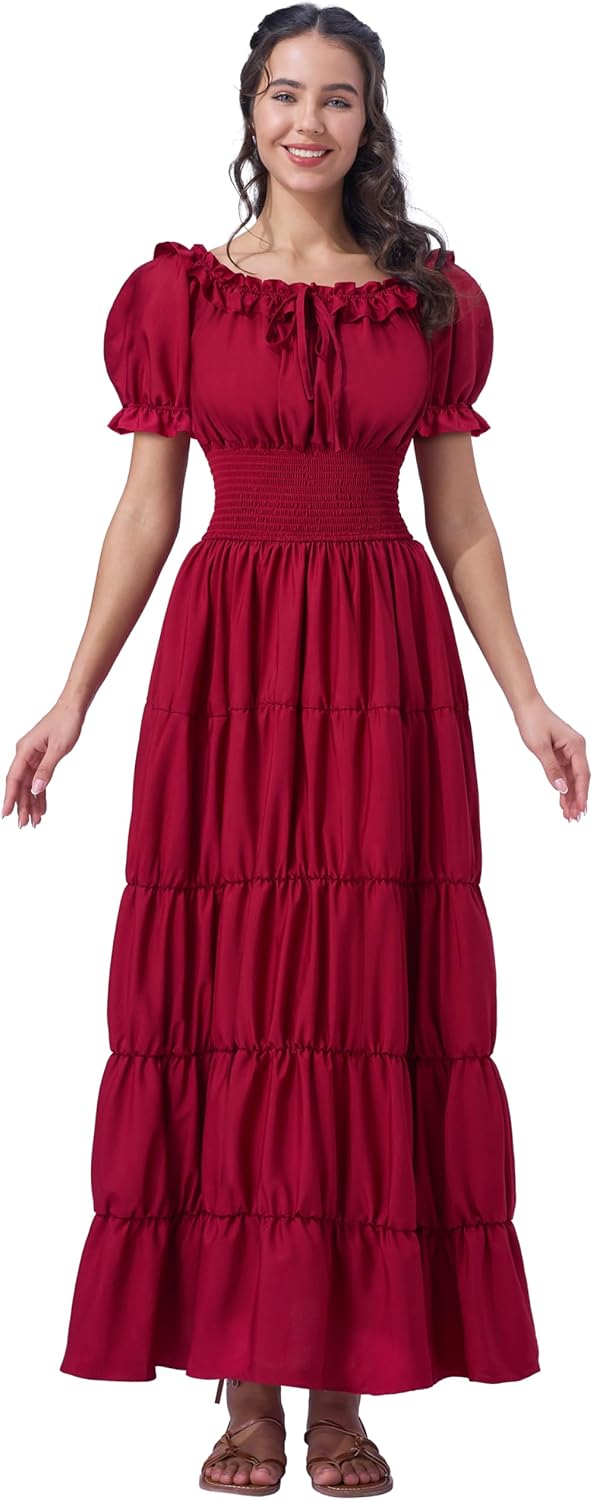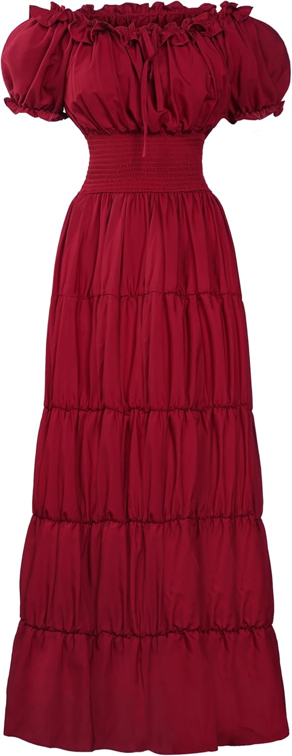 Spooktacular Creations Costume rinascimentale da donna bordeaux, abito chemise medievale, sottoabito irlandese, abito da contadina, abito da pirata per festival celtici, festa in maschera di Halloween (piccolo) FANTASTICO SET: questo set da donna in costume rinascimentale presenta un abito chemise medievale bordeaux con un collo rotondo. L'abito da cottage irlandese con vita alta e maniche corte che fornisce il pezzo essenziale per completare il tuo look retrò rinascimentale. MATERIALI DI ALTA QUALITÀ: realizzato al 100% in poliestere con elasticità sottile, questo abito da favola medievale offre comfort e morbidezza. I suoi modelli in evidenza hanno uno scollo elastico che consente un abbigliamento versatile, sopra o fuori dalla spalla che mostra una scollatura più bella, mentre la vita elasticizzata/alta/smock è molto elastica e aggiunge un tocco di eleganza e snellezza. VERSATILE PER LE OCCASIONI: questa camicia medievale può essere abbinata a un corsetto e a un gilet per varie occasioni, tra cui rievocazioni rinascimentali, matrimoni medievali, feste in maschera, costumi da pirata, costumi da contadina, festival celtici, cosplay, Halloween, spettacoli teatrali e anche abbigliamento casual quotidiano. Che si tratti di partecipare ad attività a tema o di scattare foto di moda, il bellissimo abito ren faire è l'ideale per te. FACILE CURA: mantenere l'abito bordeaux da donna è semplice. Basta pulirlo con una spugna per una facile manutenzione e anche il lavaggio a mano è un'opzione. Evitare il lavaggio in lavatrice, lo sbiancamento, l'asciugatrice e la stiratura per preservarne la qualità. TAGLIE MULTIPLE: Disponibile nelle taglie Piccola, Media, Grande, X-Large e XX-Large, questo abito rinascimentale vittoriano taglie forti offre un design dalla silhouette moderata, adatto alla maggior parte della figura delle donne adulte. Assicurati di ricontrollare la tabella delle taglie per trovare quella adatta.