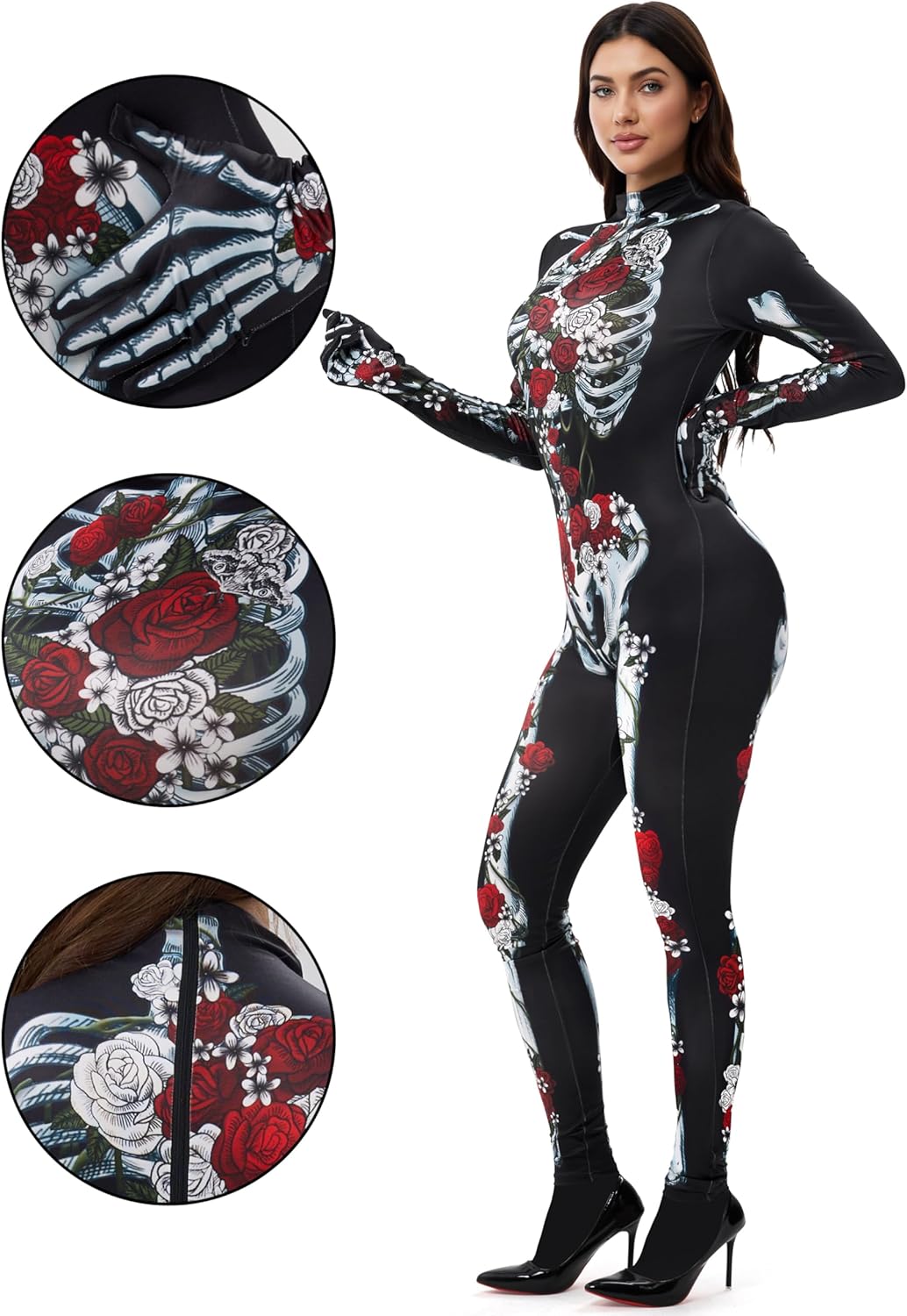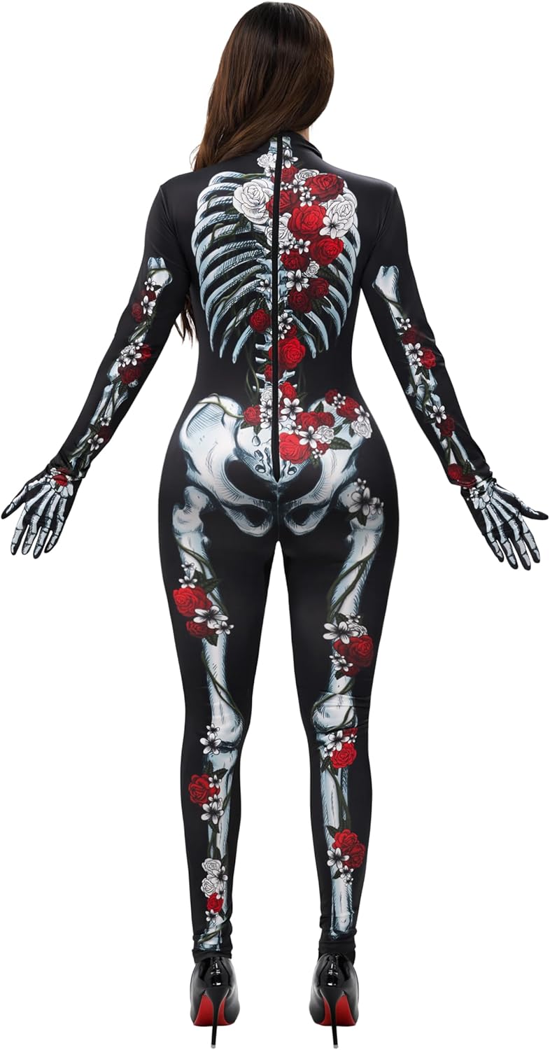 J’adore ma combinaison Spooktacular Creations à motif squelette et fleurs ! J’ai pris une taille au-dessus parce que je suis curvy et je voulais éviter que le blanc de la base apparaisse quand ça s’étire. Bonne décision, la coupe est nickel et super confortable. Le motif est original et attire tous les compliments. Parfaite pour Halloween ou pour ajouter une touche fun et audacieuse à votre garde-robe. Si vous avez des formes, n’hésitez pas à prendre une taille au-dessus pour un rendu parfait.