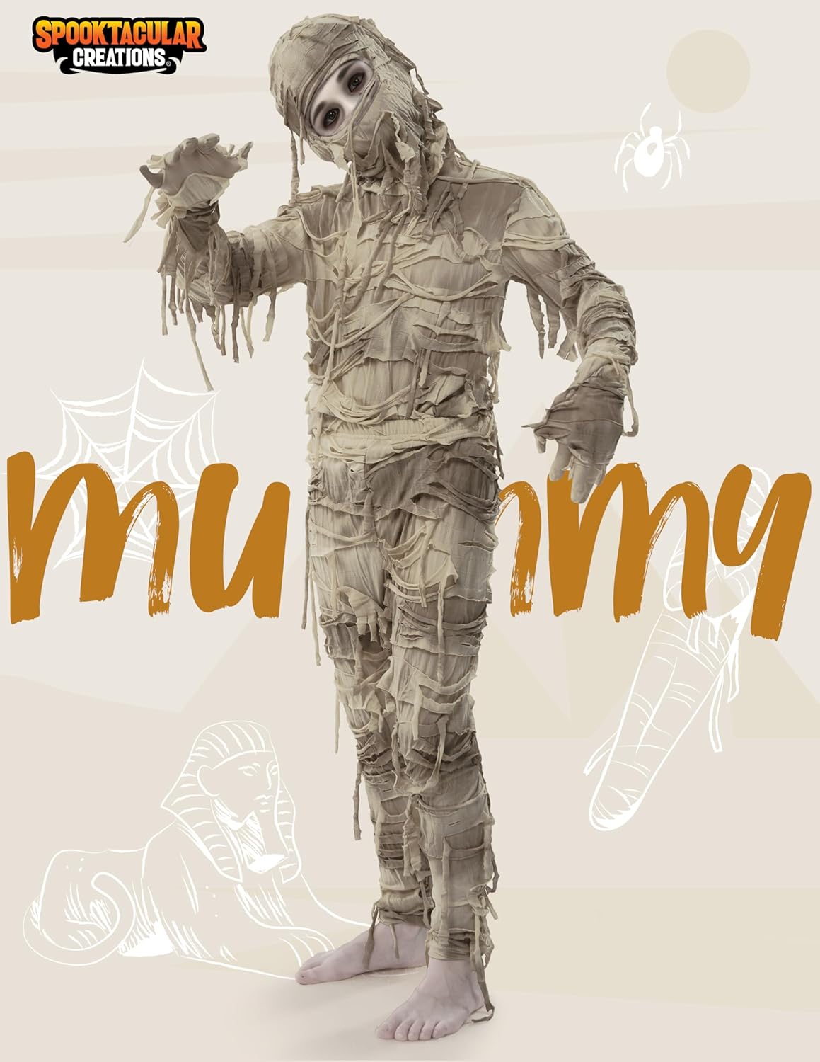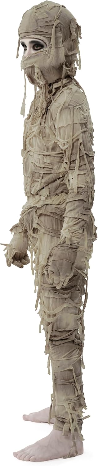 Costume da mummia per Halloween per bambini, costume da mummia per ragazzi, costumi per giochi di ruolo e Halloween Abito completo: scopri il look più spaventoso! Questo costume da mummia completo include una maglia in stile mummia, pantaloni coordinati e un copricapo coordinato, trasformandoti dalla testa ai piedi. Tessuto morbido ed elastico: il nostro costume da mummia per Halloween è realizzato in 100% poliestere. Offre comfort per tutto il giorno con una vestibilità aderente e flessibile. Lavabile solo con una spugna. Non candeggiare, asciugare in asciugatrice o stirare. Design elegante e audace: caratterizzato da una silhouette aderente e strisce in stile benda, questo costume da mummia offre un look spettrale ma elegante. La stampa avvolgente e dettagliata riproduce le bende di un'antica mummia, conferendole un aspetto realistico da non morto. Occasioni versatili: che si tratti di feste di Halloween, recite scolastiche, cosplay o servizi fotografici spettrali, questo costume da mummia porta un antico mistero e un tocco moderno a qualsiasi festa in maschera. Taglie perfette: il nostro costume da mummia è disponibile nelle taglie M (8-10 anni), L (10-12 anni) e XL (12-14 anni). Si adatta a diverse corporature. La modella è alta 1,48 m/5'11" e pesa 30 kg/66 libbre, e indossa la taglia M. Consulta la nostra tabella delle taglie dettagliata per trovare la taglia perfetta per il tuo piccolo mostro.