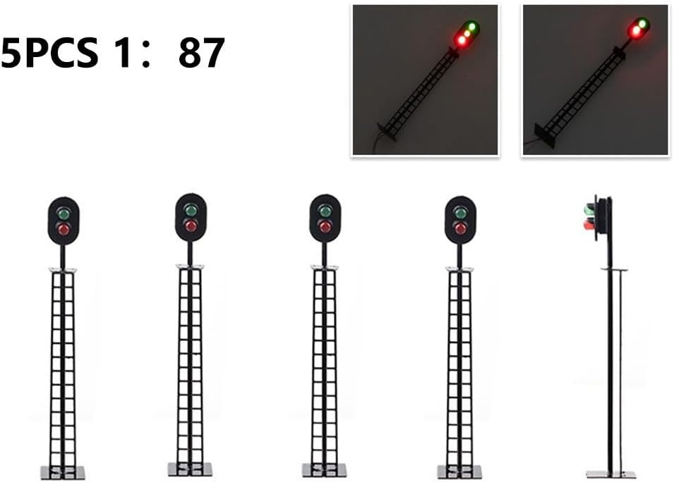 Perfetto per modellismo ferroviario e layout di edifici: questo set contiene 5 segnali LED per modellismo ferroviario HO appositamente progettati per l'uso in modellismo ferroviario e configurazioni di edifici. 【LED per un'illuminazione realistica】 La luce di segnalazione del modello di treno è realizzata a LED, fornisce un'illuminazione brillante e a risparmio energetico, fornendo un effetto luminoso luminoso e realistico. 【Adatto a diverse tensioni】 Questi segnali possono essere utilizzati con tensioni di alimentazione sia da 3 V che da 12 V, offrendo flessibilità in diverse impostazioni. 【Ampie applicazioni】 Adatto per modelli di tavoli di sabbia, decorazioni da giardino, ambientazioni di scene, intrattenimento per il tempo libero e vari modelli di scenari. 【Facile da usare】 Ogni luce di segnalazione viene fornita completa di cavi e LED, rendendo l'installazione semplice e veloce. Avrai le tue luci pronte per l'uso in pochissimo tempo e aggiungerai uno straordinario elemento visivo al tuo layout.