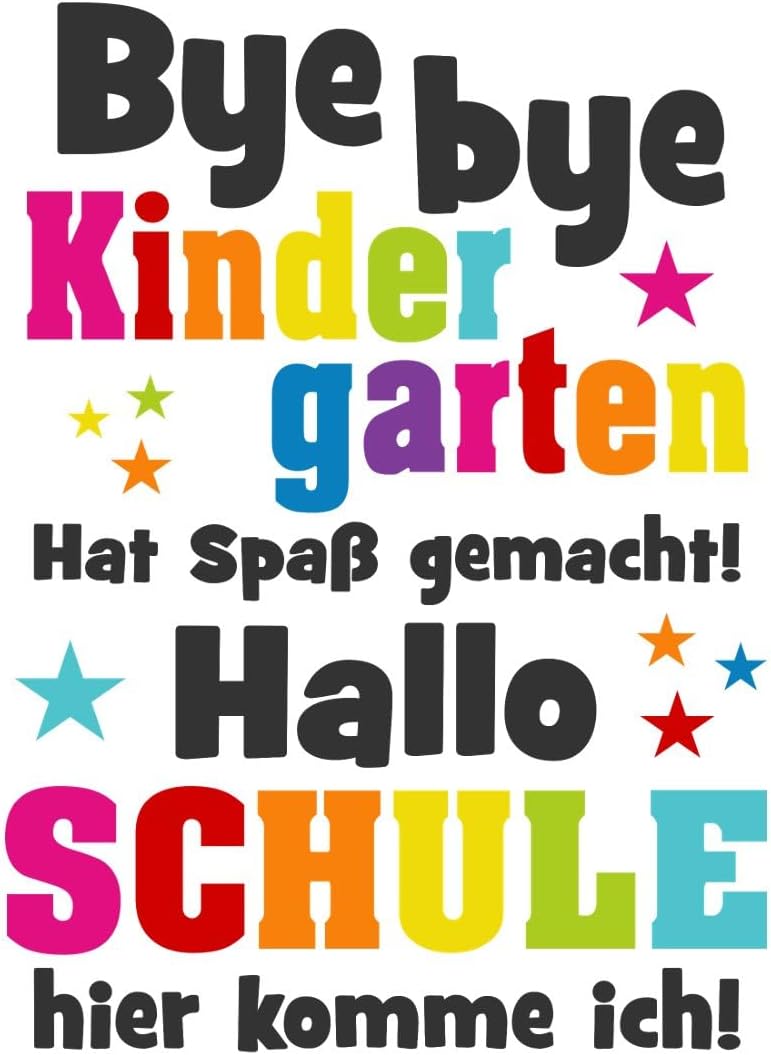 Addio asilo! Questo motivo colorato dice "ciao" all'asilo e "ciao" a scuola - perfetto per i piccoli che iniziano la scuola nel grande giorno o come regalo di addio. Decora il tuo mondo come preferisci! Con l'adesivo in vinile resistente puoi incollarlo su superfici lisce come laptop, auto, mobili e molto altro. L'adesivo è impermeabile e può essere rimosso dalla maggior parte delle superfici entro 3 anni senza lasciare residui di adesivo. Adesivo in vinile sagomato, facilmente rimovibile. Resistente e impermeabile. Materiale: pellicola in PVC da 100 µm. Prodotto nell'Unione Europea.