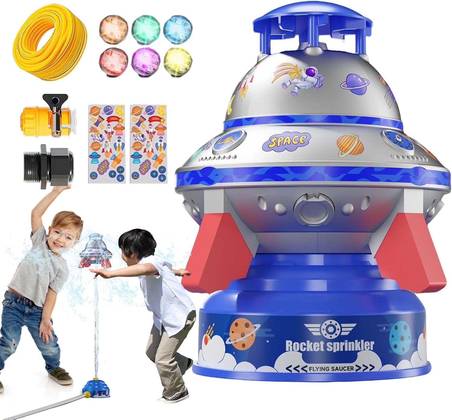 Materiale Sicuro: Realizzato in ABS certificato sicuro, questo sprinkler garantisce la massima protezione durante i giochi all'aperto, offrendo ai genitori totale tranquillità mentre i bambini si divertono con attività acquatiche dinamiche e durature Idratazione Completa del : Irrigazione ottimale con ampia copertura, distribuzione bilanciata 'acqua e meccanismo rotante a 360 che garantisce l'idratazione uniforme di ogni angolo del giardino, anche nelle zone più difficili da raggiungere. Interazione sociale migliorata: Progettato per stimolare attività all'aperto, questo gioco d'acqua promuove il lavoro di e dinamiche di gruppo, aiutando i bambini a rafforzare legami sociali attraverso giochi acquatici cooperativi che combinano divertimento ed esercizio fisico in modo naturale e coinvolgente Divertimento Senza Limiti: Compatibile con tutte le principali aree ricreative esterne inclusi cortili residenziali, parchi giochi e spiagge pubbliche. Il modulare permette diverse configurazioni di getto d'acqua senza necessità di attrezzi speciali Montaggio Intuitivo: Struttura semplificata con adesivi posizionabili liberamente per un assemblaggio rapido, ideale per creare infinite varianti di giochi d'acqua educativi che evolvono con la crescita e capacità creative infantili
