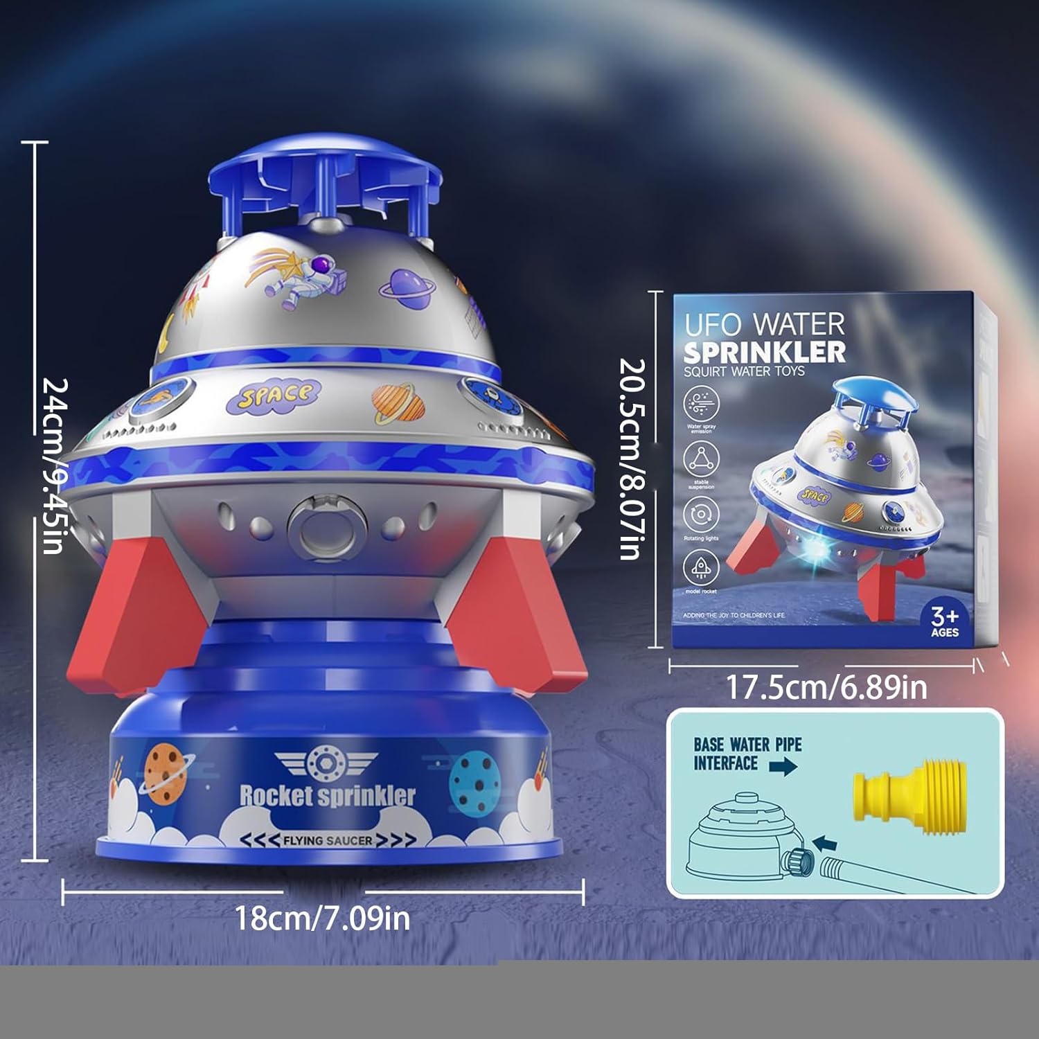 Spruzzatore Acquatico per Bambini Da Giardino,Giochi d'Acqua per Bambini | Disco Volante Luminoso 360° Rotazione Per Spiaggia Campeggio Parchi Scuole E Giardini
