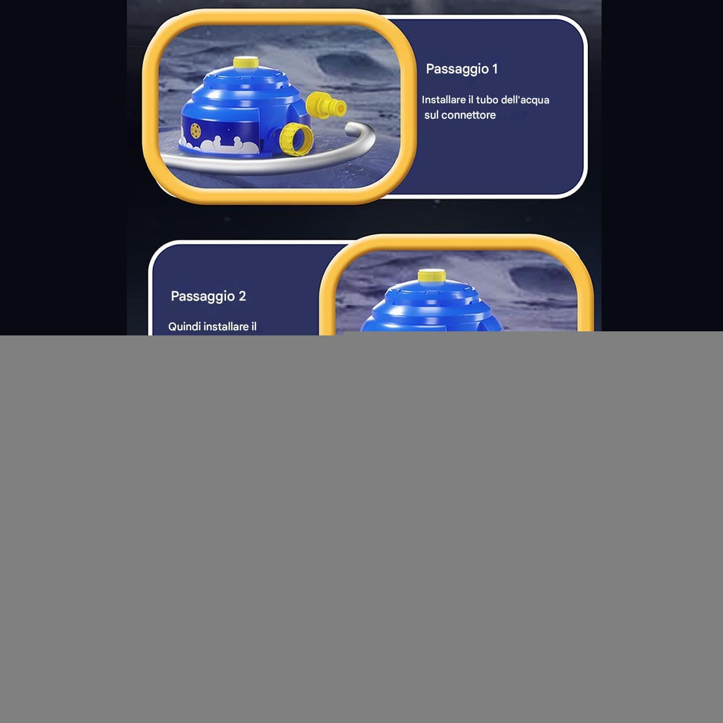 Sicurezza Prioritaria: Tecnologia ABS antigraffio e antiurto certificata, ottimizzata per interazioni acquatiche prolungate che uniscono resistenza alle cadute e divertimento senza rischi Rotazione 360 Gradi: di distribuzione uniforme con ampio raggio di spruzzo, assicura una copertura completa dello spazio esterno grazie al movimento circolare continuo che ottimizza l'efficienza e riduce gli sprechi idrici. Divertimento di gruppo: Strutturato per incoraggiare interazioni all'aperto, il gioco sprinkler stimola la collaborazione tra bambini con attività ludiche acquatiche che sviluppano abilità sociali, permettendo di condividere momenti di gioco attivo e rafforzare la capacità di lavorare in team attraverso esperienze rinfrescanti Versatilità Multizona: Progettato per utilizzo polivalente in ambienti differenti: ideale per centri ricreativi, parchi animali domestici, giardini domestici e zone costiere. Mantiene prestazioni stabili su superfici erbose, sabbiose o cementate con semplice collegamento al tubo Montaggio Intuitivo: Struttura semplificata con adesivi posizionabili liberamente per un assemblaggio rapido, ideale per creare infinite varianti di giochi d'acqua educativi che evolvono con la crescita delle capacità creative infantili