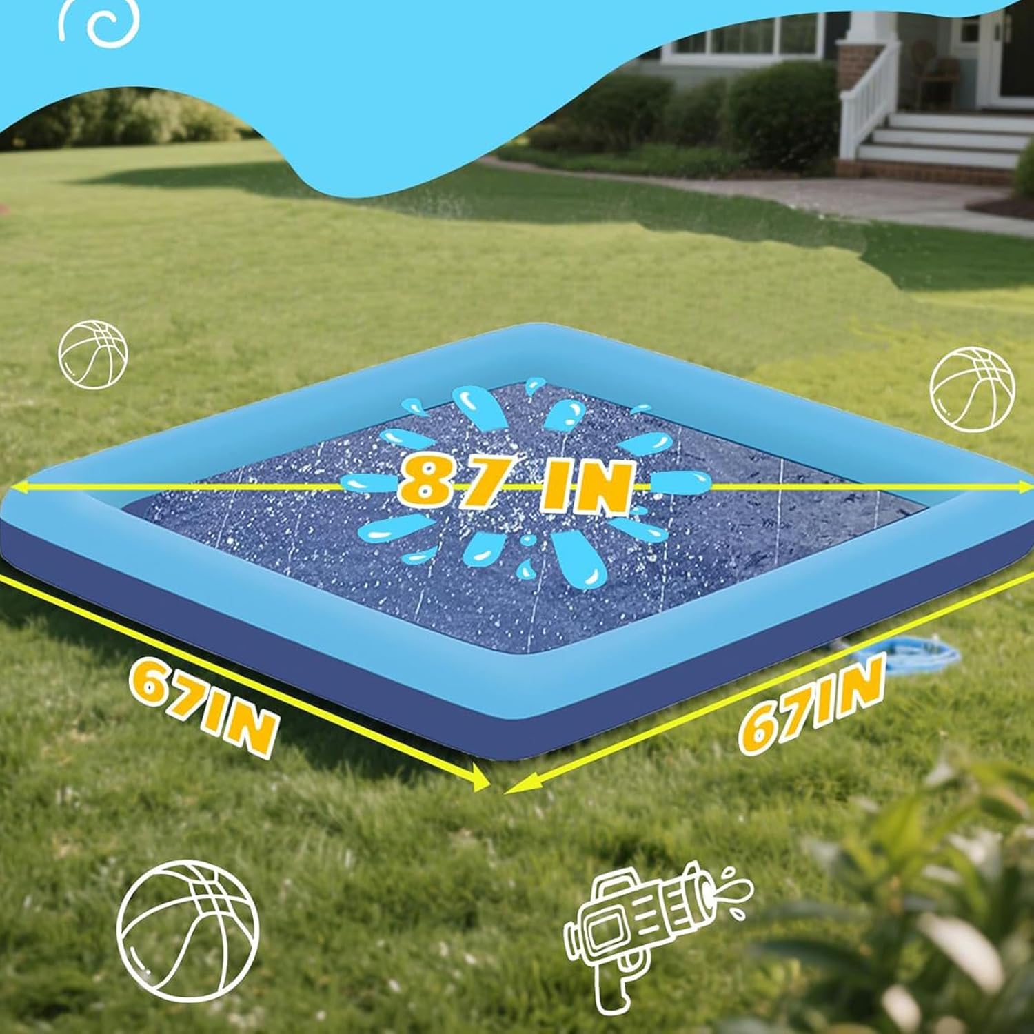 Il nostro tappetino quadrato per irrigatori d'acqua utilizza PVC spesso per bambini e animali domestici divertimento a lungo termine con superfici scivolose per avventure sicure nel vostro giardino Perfetto per bambini, bambini più grandi e animali domestici attivi e offre un gioco d'acqua stabile con caratteristiche di sicurezza per diversi livelli di qualificazione Flussi d'acqua regolabili con altezza regolabile e scintilla direzionale creatività, mentre il tubo da giardino di collegamento rapido consente un'installazione rapida senza gonfiaggio Il design compatto e pieghevole con facile drenaggio semplifica lo stoccaggio e rende questi cuscinetti per bambini una grande aggiunta alla tua collezione di giocattoli acquatici da esterno Trasforma lo spazio esterno in una vivace area splash per feste, riunioni di famiglia o un pomeriggio informale, creando così una memoria preziosa sotto il sole