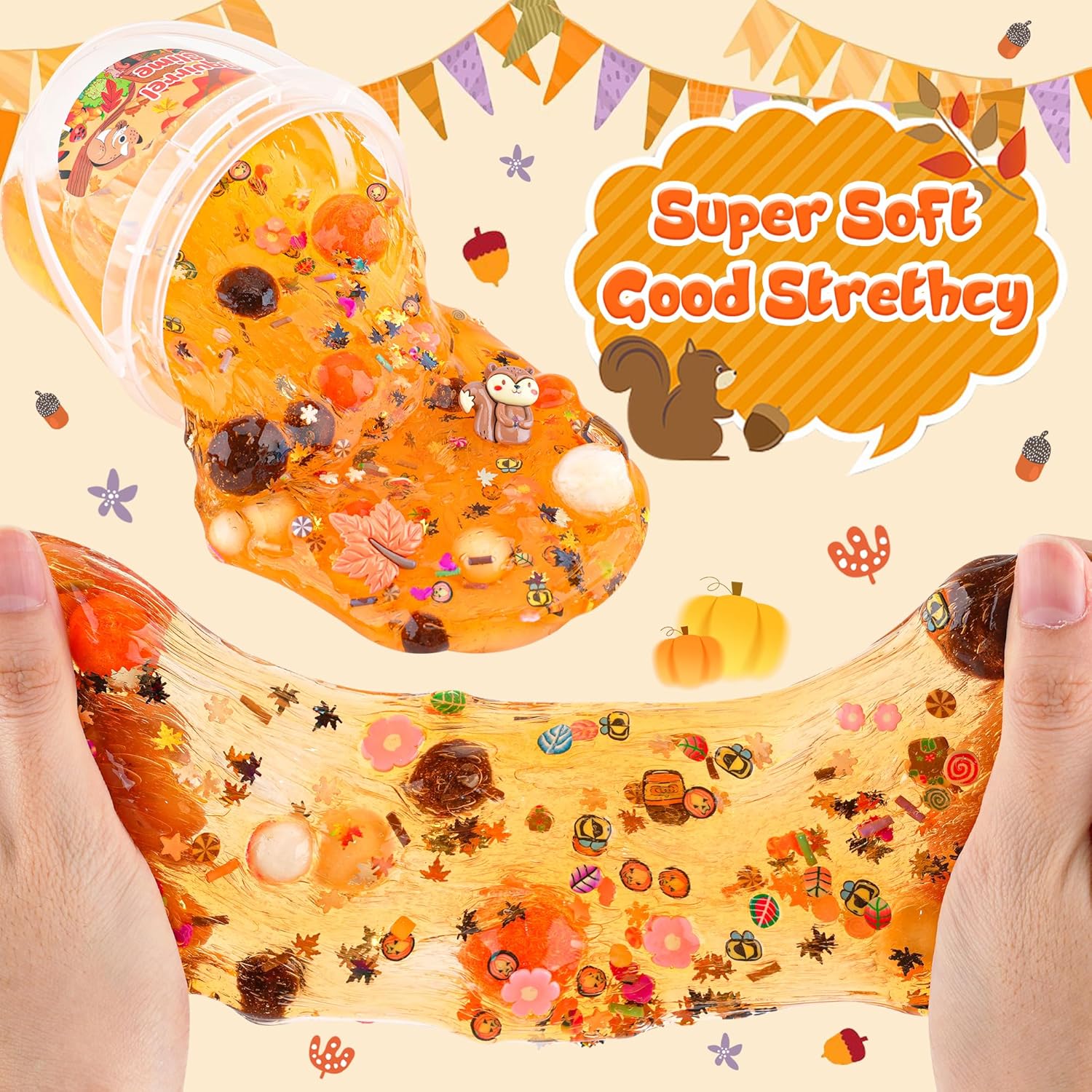 Slime trasparente con grande capacità: ogni secchio contiene una generosa quantità di melma, quindi 300 ml di puro piacere. Hai abbastanza da condividere con amici e familiari o tenere tutto per te – la scelta è tua! Diversi additivi per mucosi: per aumentare il divertimento, abbiamo incluso il nostro set di 10 confezioni con diversi additivi di muco. Crea la tua melma come burro slime o slime crunchy esplorandolo e scoprirlo con le mani. Slime adatto ai bambini: questa melma arancione è realizzata con ingredienti di alta qualità ed è ugualmente sicura per bambini e adulti. Nota: per i bambini di età inferiore a 3 anni si raccomanda la supervisione di un adulto. Non mangiare! Super morbido e ben elastico: lo slime prefabbricato di Okaybee offre una texture unica che è super morbida al tatto. Grazie alla sua facilità d'uso, puoi iniziare subito e goderti la prelibatezza morbida ed elastica. Ottimo regalo per i bambini: questo set di slime per scoiattoli è un ottimo regalo di compleanno per ragazzi e ragazze di età compresa tra 6, 7, 8, 9, 10, 11 e 12 anni. Slime è un regalo di festa, un regalo per la scuola o di Halloween o anche una calza di Natale.