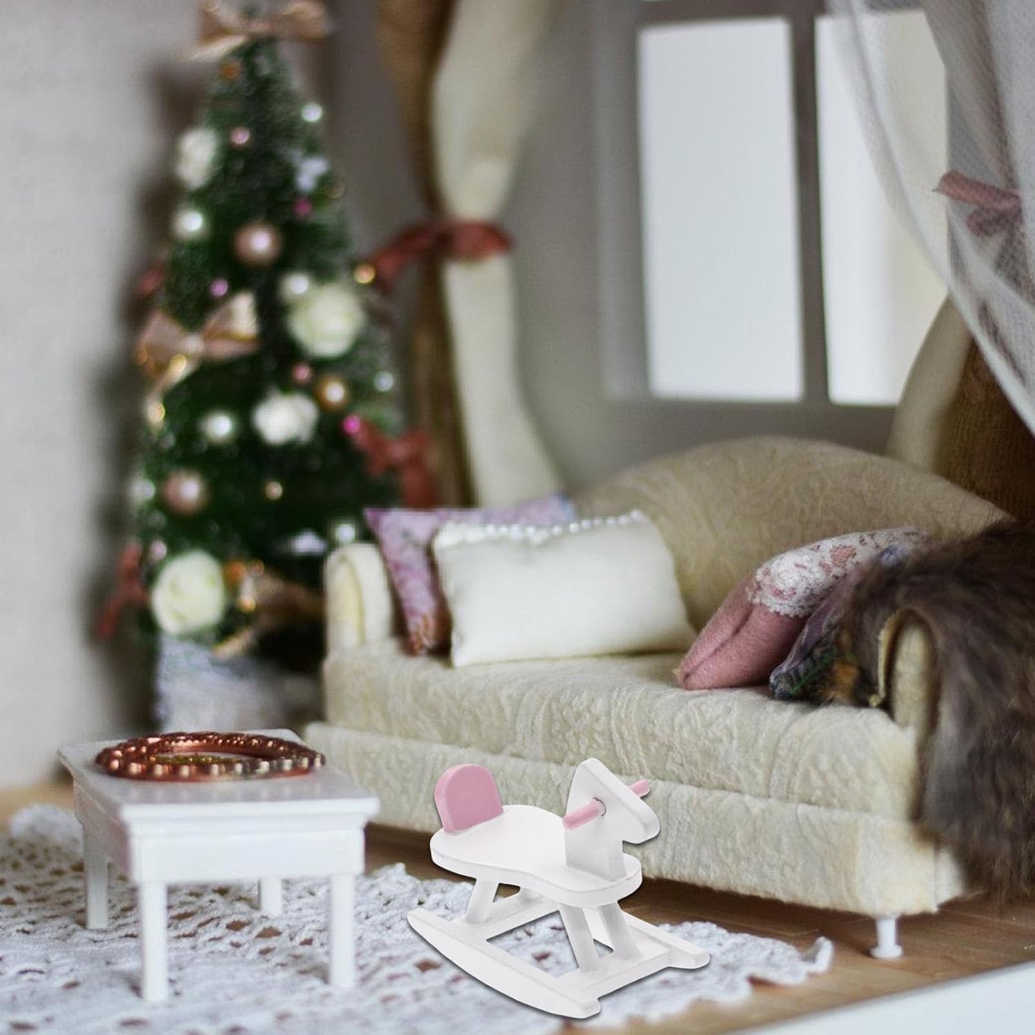 Include un letto singolo, un cavallo in legno, un cassetto portaoggetti, una scatola per giocattoli, un appendiabiti e una culla Il nostro set di culla per case delle bambole è adatto per case delle bambole 1:12 Realizzato con materiali in legno, questa culla è visivamente accattivante L'eccellente modello di aspetto è molto vicino alla realtà. Ottimi oggetti di scena fotografici Gli accessori per case delle bambole in miniatura dall'aspetto realistico, aggiungono facilmente più fascino e divertimento alle tue case delle bambole