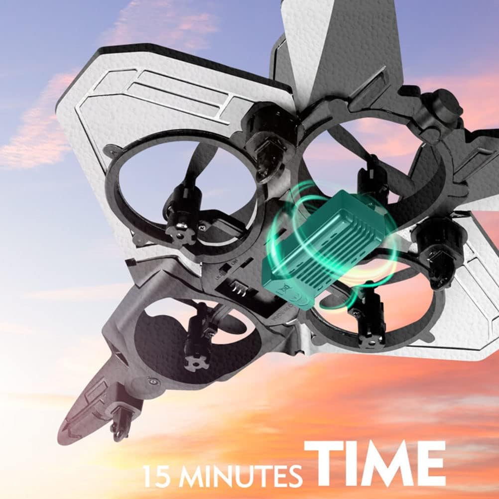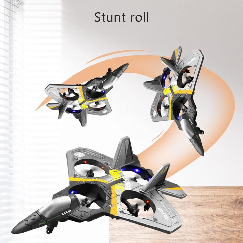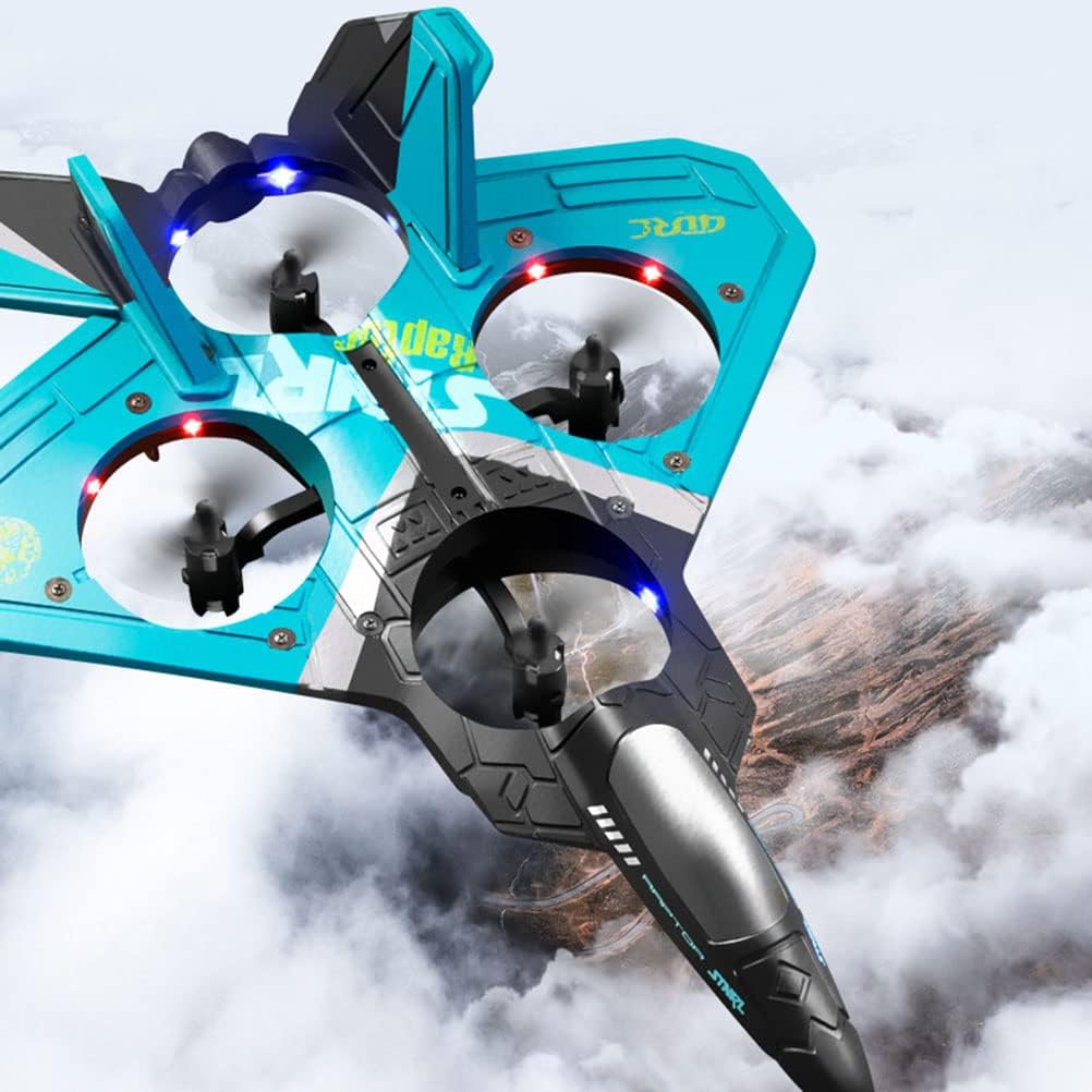 Materiale EEP ad alta resistenza: questo caccia RC è realizzato in materiale EEP, caratterizzato da elevata robustezza e peso ridotto. Il materiale leggero e morbido lo rende più efficiente dal punto di vista energetico ed evita facili danni. Controllo semplice: misurazione della gravità a doppia modalità. Basta premere il pulsante e tirare il joystick per controllare facilmente l'aereo per le acrobazie. Design a 4 motori: rispetto alla maggior parte degli altri aerei RC con 1 o 2 motori, questo aereo telecomandato è dotato di 4 motori. Il motore dà all'aereo più potenza e può eseguire più acrobazie di volo. Facile da giocare: un fantastico aereo RC per principianti, bambini e adulti. L'aereo RC ha un sistema autostabilizzante, che lo rende più divertente e rilassante. I principianti possono facilmente imparare a volare con 2-3 tentativi. Velivolo telecomandato: sebbene questo velivolo telecomandato abbia la forma di un caccia, ha le funzioni di droni acrobatici. Ad esempio, mantenimento dell'altitudine, rotazione a 360°, sensore di gravità, 2 modalità di controllo, batteria modulare rimovibile, modalità senza testa, volo stazionario, decollo/atterraggio con un solo pulsante.