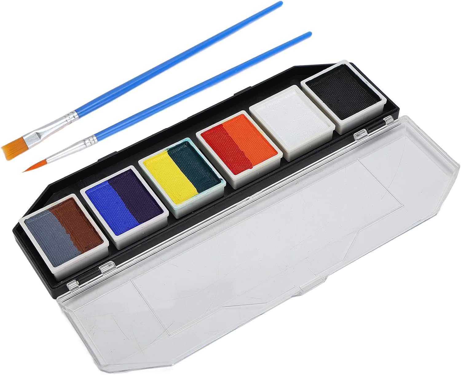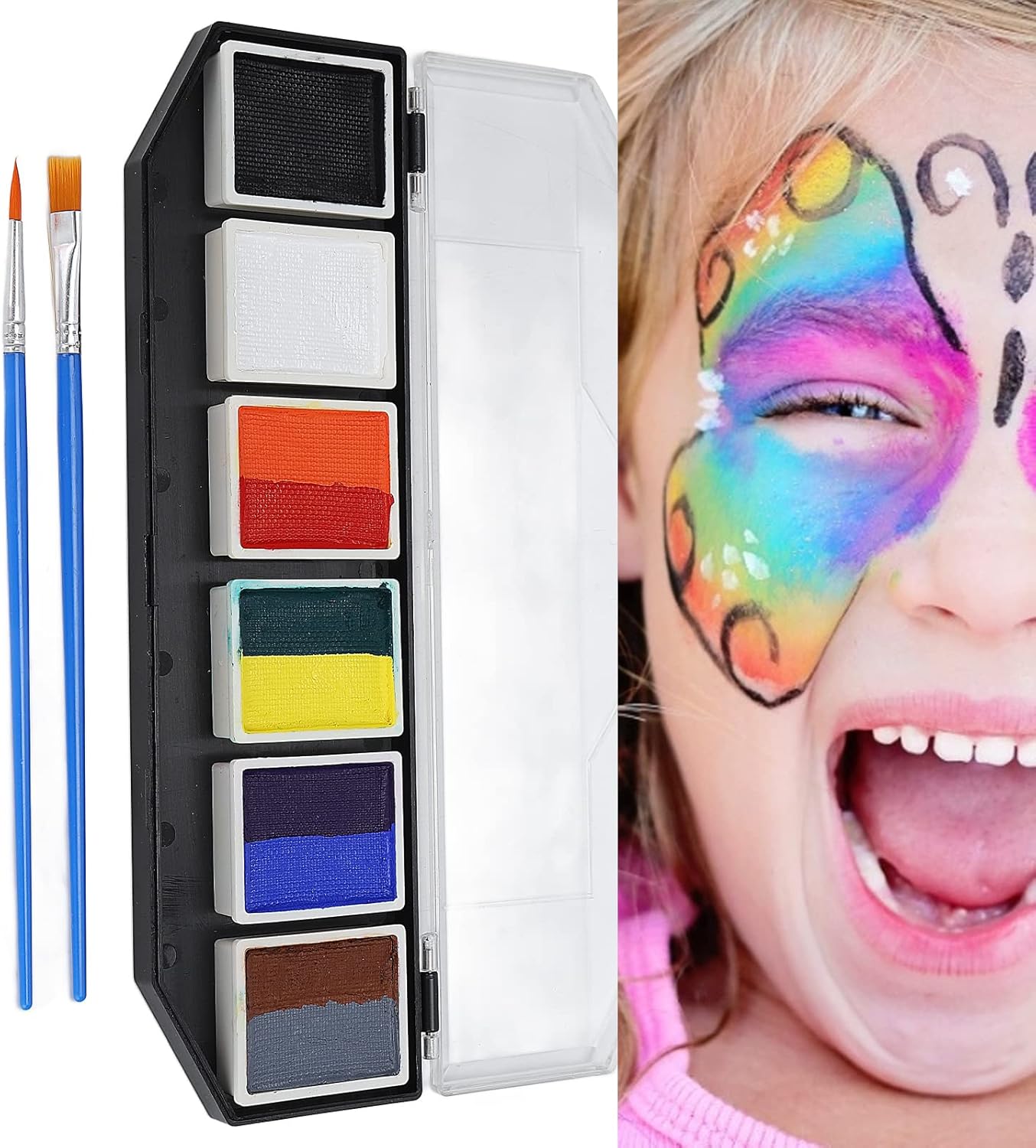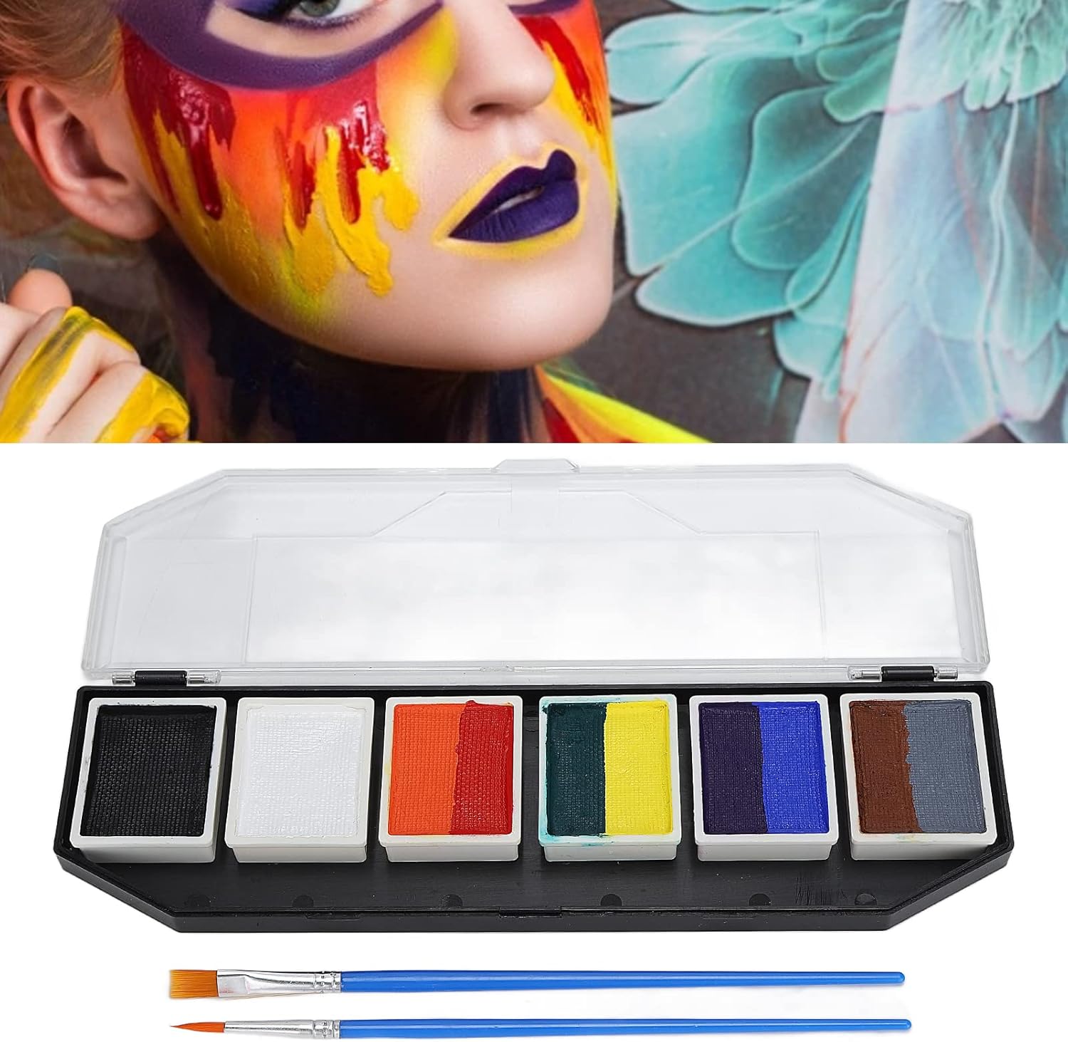 Il set per la pittura del viso e del corpo è realizzato in materiale atossico, ipoallergenico ed ecologico, utilizzabile sia dai bambini che dagli adulti. Utilizzo semplice: purché il pennello sia immerso nell'acqua per sfumare la vernice alla concentrazione appropriata, è possibile verniciarlo. Prestazioni eccellenti: le vernici per il viso sono attivate con acqua e si asciugano rapidamente con estremamente pigmentate, forniscono una copertura duratura, liscia ed eccellente, meno soggette a sbiadimento o screpolature. Facile pulire: le salviette umidificate possono essere rimosse direttamente o lavate con acqua. Per alcuni colori, utilizzare acqua e sapone o un detergente per il viso per lavarli via. Ampiamente usato: buono per la pittura del corpo e del viso, performance, insegnamento della pittura, sfilate di modelli, feste di compleanno, Natale, pittura di Halloween, modellismo fai--te, cosplay, ecc.