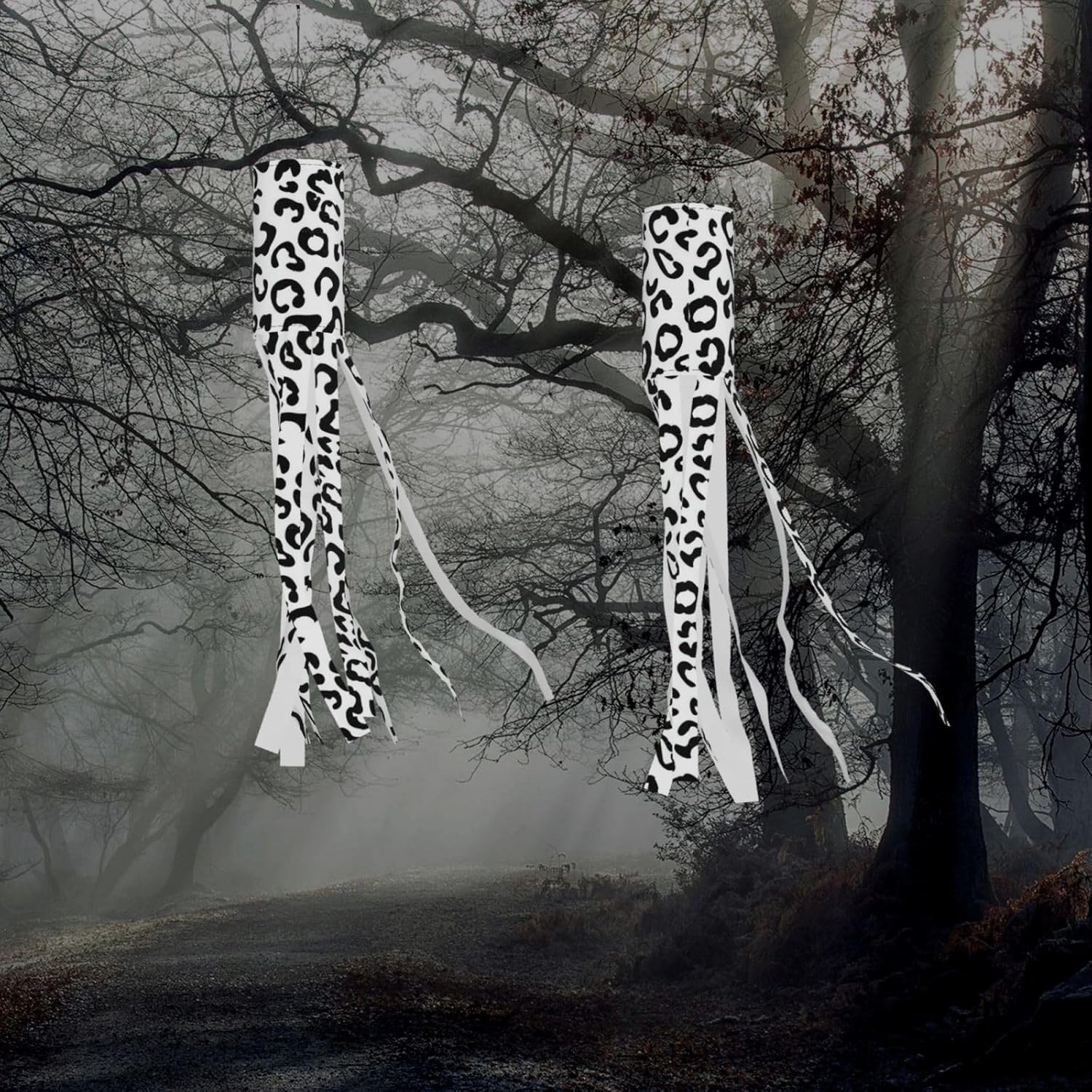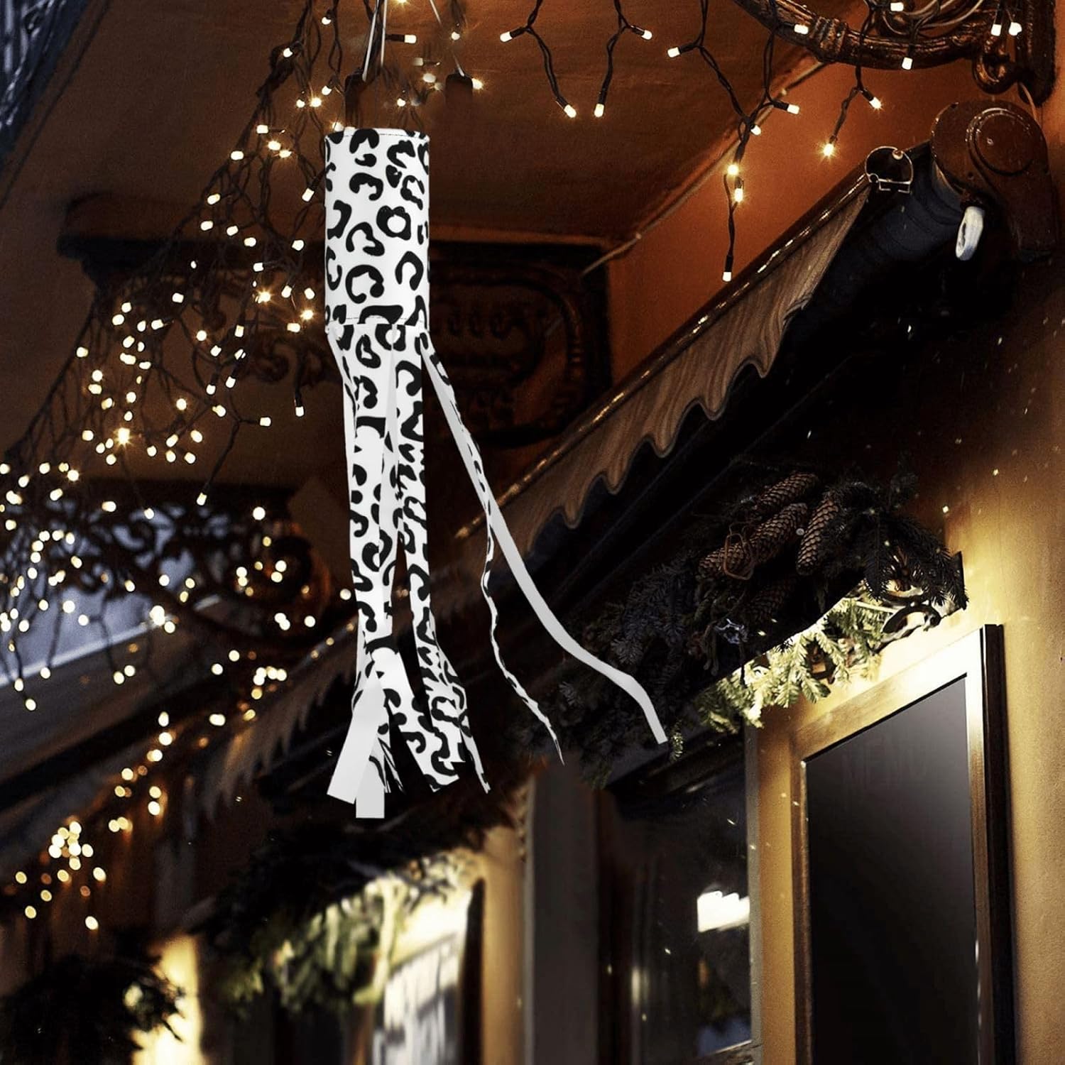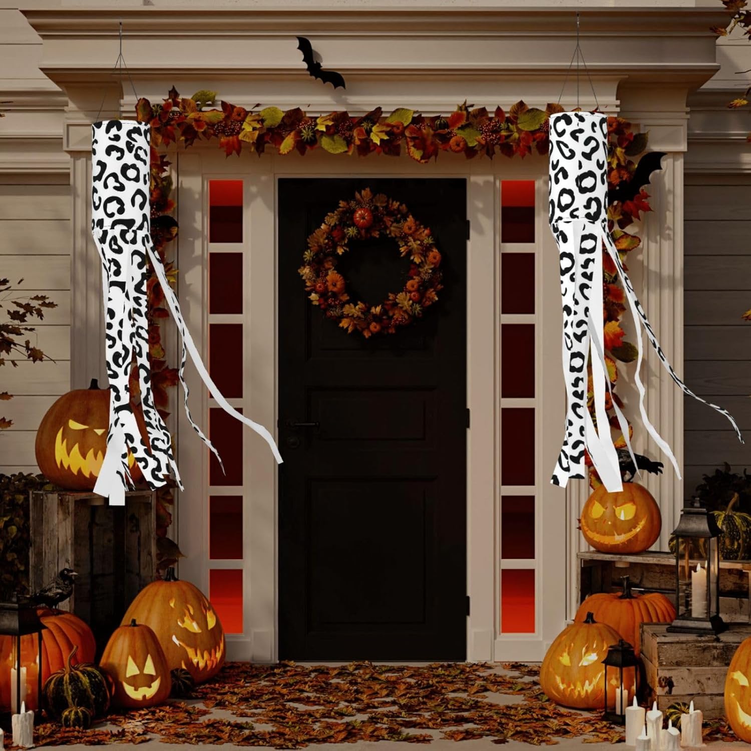 SSIMOO Stampa leopardata nera deliziosa illuminazione esterna festiva: calze a vento da strega di Halloween per esposizione stagionale mozzafiato