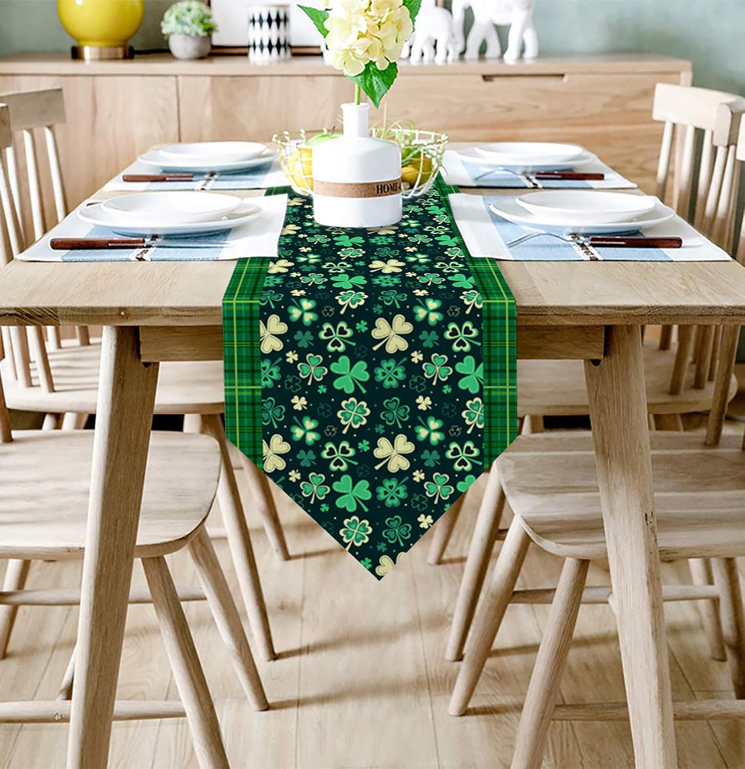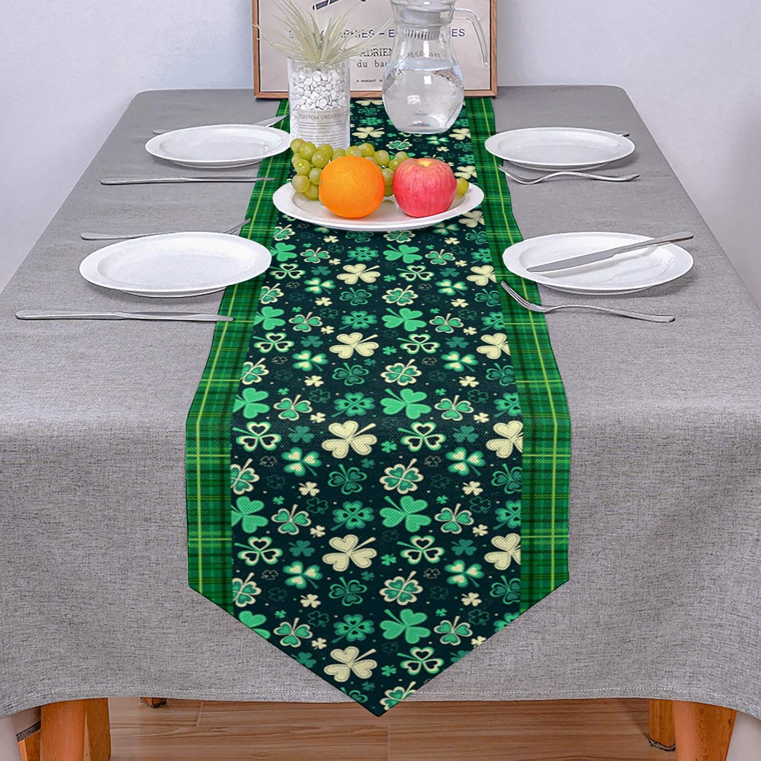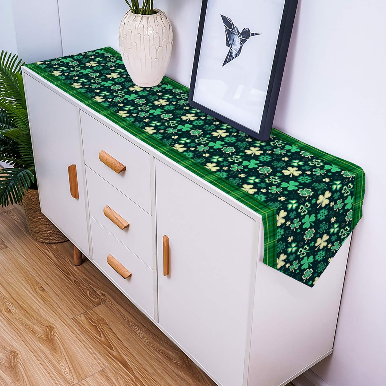 St Patrick's Day Clover Green Table Runner, decorazione della festa di nozze Home Pranzo Tavolo da tè Tabella Tavolo da tavola Coperchio da tavolo Bandiera Runner da tavolo(46x183cm)