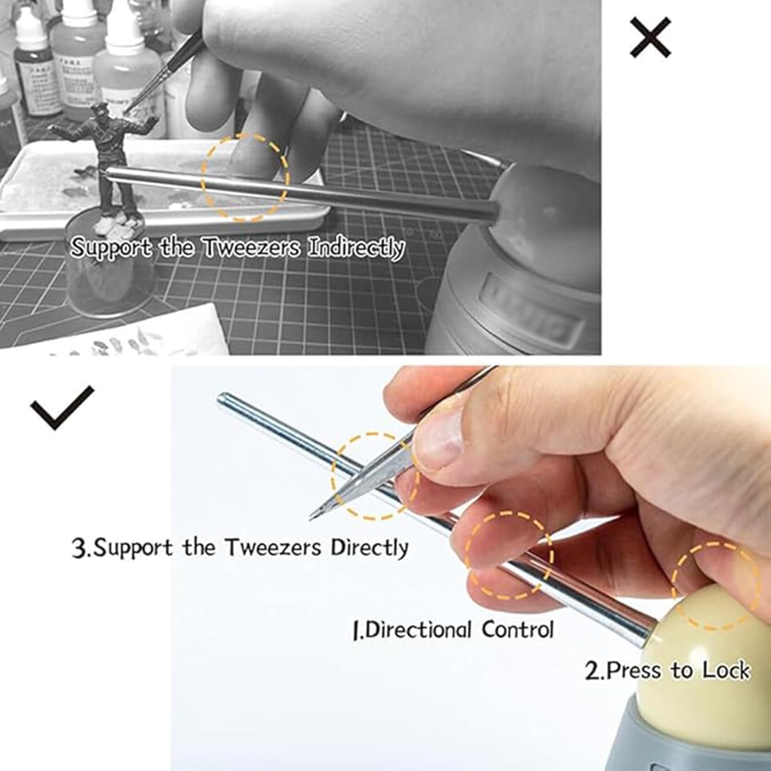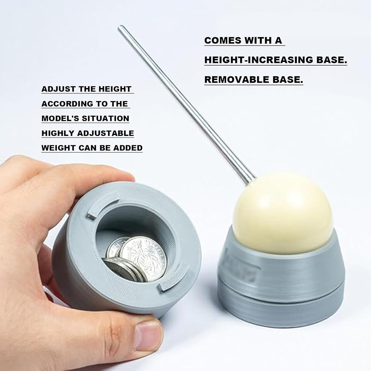 Stabilizzatore per le mani: uno stabilizzatore per pinzette di precisione che elimina i tremori delle mani, consente una rotazione flessibile e supporta le spazzole. È antiscivolo e a prova di caduta per garantire che ogni corsa sia saldamente ancorata. Regolabile in altezza: viene fornito con una base regolabile in altezza che può essere smontata. L'altezza può essere regolata in base alla situazione del modello ed è possibile aggiungere pesi. Può funzionare a diverse altezze e funzionare bene allo stesso tempo. Nota: prima dell'uso, collegare l'asta di metallo e la sfera di smorzamento con colla 502 o gel. A causa delle limitazioni del processo di stampa FDM, sulla superficie della base potrebbe essere presente una piccola quantità di linee o onde che non influiranno sul risultato. Funzione. Tieni presente che devi acquistare tu stesso la colla 502 o gel. Se non ti soddisfa, non effettuare un ordine. Ergonomia: Ergonomia che riempie semplicemente il vuoto sotto la mia mano. Non ho paura delle mani fredde e ha un corpo ammortizzante in composito organico che fa sentire il corpo amichevole. Ampia applicazione: è molto adatto per strumenti di modellazione amatoriale, modelli in scala militare, modelli in miniatura, pinzette per intaglio della vernice, artigianato elettronico, intaglio della vernice, ecc.