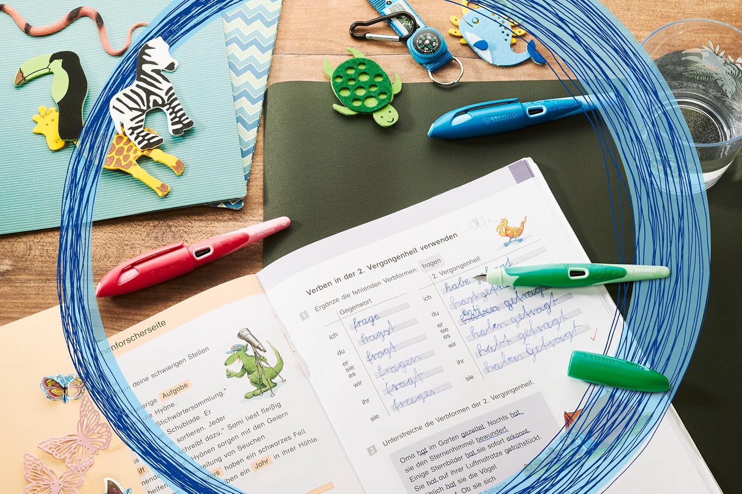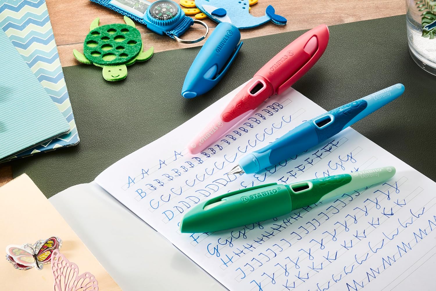 Penna stilografica ergonomica per la scuola 3 mondi di animali di diversi colori con struttura 3D tattile Angolo del pennino regolabile individualmente per una scrittura morbida e un carattere pulito Pennino chiuso per proteggere dalle dita blu Zona di presa antiscivolo