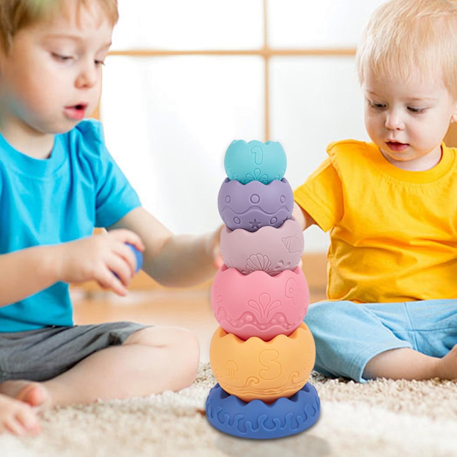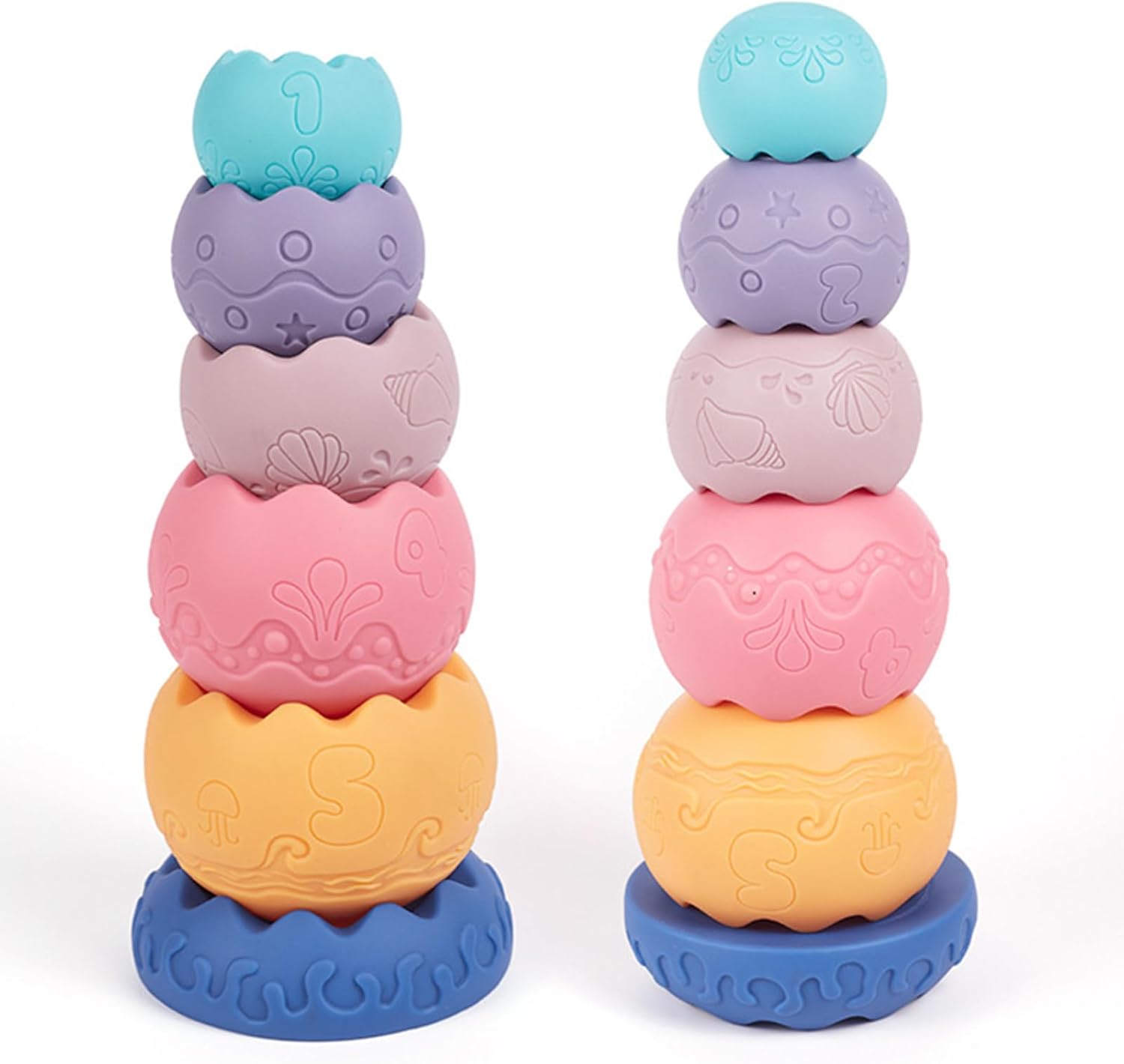 Sicurezza prima di tutto: realizzato con materiali in gomma di alta qualità con bordi arrotondati per garantire la sicurezza durante il gioco, con una copertura liscia e avvolgente. La custodia morbida e morbida migliora il comfort durante il gioco Riconosci diverse tonalità: con i suoi colori luminosi e ad alto contrasto, i nostri bambini che impilano set di giocattoli sono un eccellente aiuto visivo per i bambini se imparano a riconoscere diverse tonalità. Aiutiamo a sviluppare la loro percezione del colore e stimolare la funzione visiva del cervello, offrendo un'esperienza divertente ed educativa Facile da capire: i nostri bambini che impilano sono un ottimo strumento per migliorare la coordinazione occhio-mano. Con una facile maneggevolezza e le dimensioni e la forma moderate eccellenti, i bambini afferreranno e si impilano in pochissimo tempo Migliorare le capacità di problem solving: esercitare le capacità cognitive di tuo figlio. Coltiva la pazienza e le capacità di risoluzione dei problemi cercando di impilare gusci d'uovo di diversi colori o forme. Questa attività migliora anche l'equilibrio e le capacità cognitive spaziali, favorendo lo sviluppo cognitivo complessivo Favoriscono il legame genitore-figlio: incorpora l'educazione precoce nel tempo di gioco con il nostro set di giocattoli impilabili. I genitori partecipano attivamente al gioco, migliorano la comunicazione emotiva e rafforzano il legame tra loro e il loro bambino