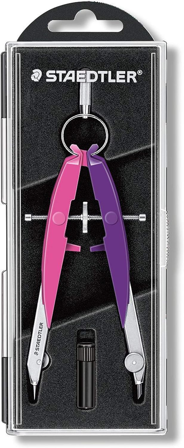 Compasso geometrico di precisione con guida del mandrino, testa a molla rotonda e mandrino centrale La robusta struttura in metallo permette di disegnare in modo preciso e preciso Diametro massimo del cerchio da disegno: circa 225 mm Inserto in piombo e ago intercambiabili Custodia con coperchio