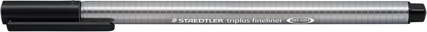 SET DI 6 PENNE FINE LINER CON PUNTA RINFORZATA: Il set comprende 6 penne nere con punta superfina da 0.3 mm, realizzata in metallo rinforzato per una scrittura precisa e resistente alla pressione, ideale per dettagli minuti FUSTO TRIANGOLARE ERGONOMICO: Ogni penna presenta un fusto triangolare che offre una presa comoda e sicura, riducendo l’affaticamento durante la scrittura, il disegno e il coloramento INCHIOSTRO LAVABILE E SICURA PER I BAMBINI: L'inchiostro a base d'acqua è facilmente lavabile da molti tessuti, rendendo queste penne una scelta ideale e sicura per l'uso da parte dei bambini TECNOLOGIA DRY SAFE: Le penne Triplus Fineliner possono rimanere senza cappuccio per giorni senza seccarsi grazie alla tecnologia Dry Safe, mantenendo il colore intatto e garantito DURATA E QUALITÀ ECCELLENTI: Il cappuccio ventilato e il fusto in polipropilene (PP) assicurano una lunga durata e una protezione ottimale contro l'essiccamento e i danni, mantenendo le penne in perfette condizioni