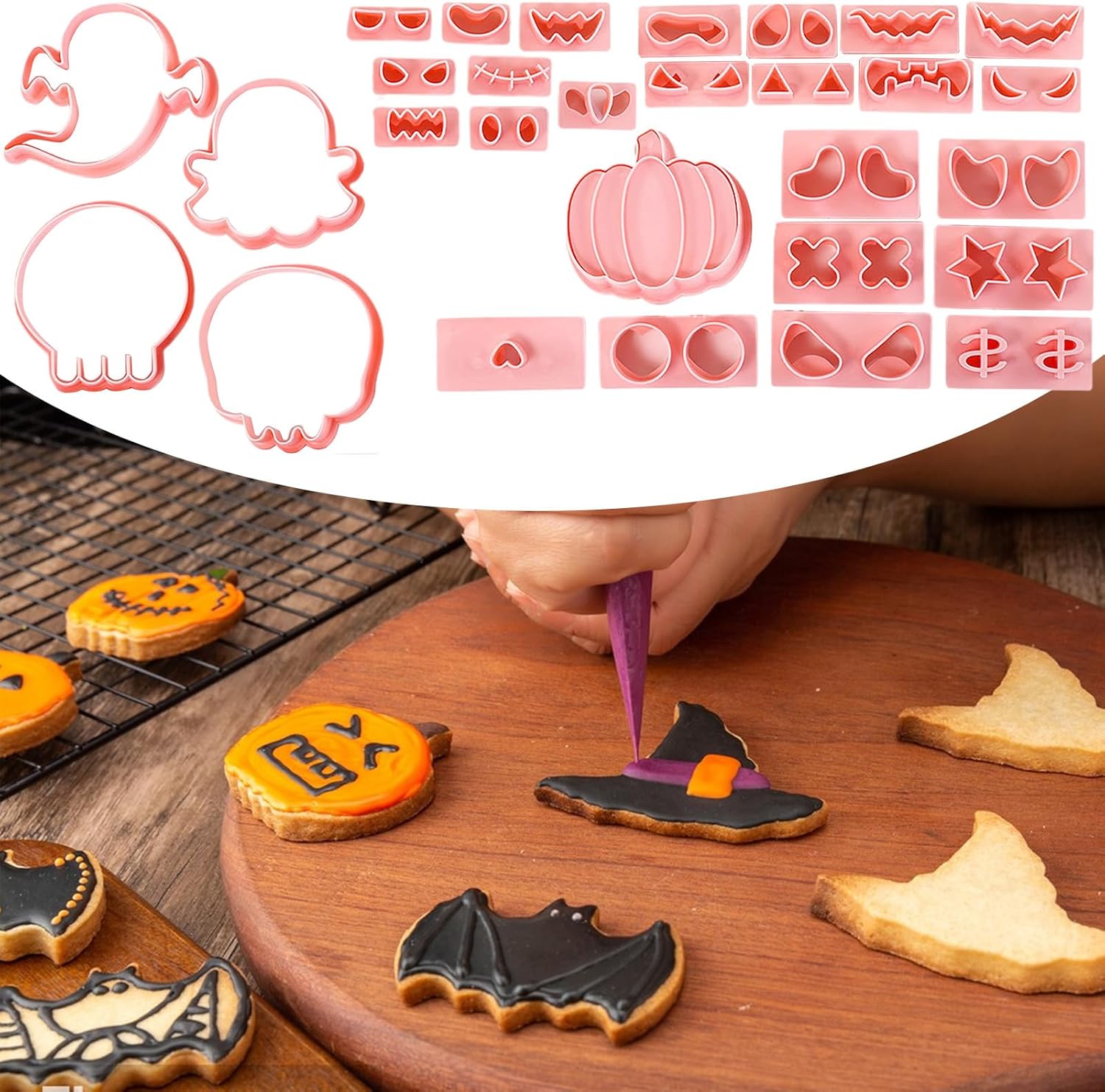 Accessori da forno versatili: ottieni risultati di cottura dall'aspetto sofisticato combinando forme, timbri e goffrature per dolcetti spettrali e divertenti senza sforzo. Facile da pulire: inodore e facile da pulire grazie al materiale adatto agli alimenti. Qualità affidabile e lunga durata, ideali per le attività di cottura di Halloween con i bambini. Idee per dolci stagionali: le forme di zucca, teschio e zucca ispirano divertimento creativo e aggiungono decorazioni stagionali di Halloween ai dessert per celebrazioni indimenticabili. Adatto ai principianti: le teglie da forno con bordi lisci consentono una rapida modellatura e una rimozione senza sforzo. Ideale per tutti i livelli di esperienza nella preparazione di dolcetti di Halloween senza conoscenze preliminari. Perfetto per le feste: accessori speciali da forno per aumentare l'atmosfera di Halloween. Ideale per attività di pasticceria familiare alle feste o in classe. Incoraggia la gioia condivisa e crea ricordi duraturi attraverso progetti di pasticceria pre-Halloween.