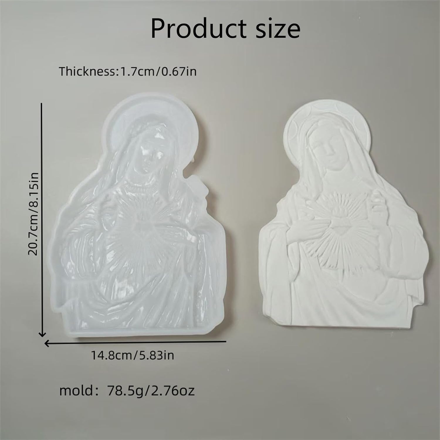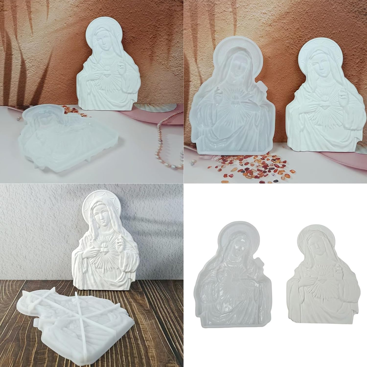 Con questo stampo in silicone con i motivi "Sacro Cuore Madre" è possibile realizzare facilmente complicate opere d'arte religiose. Sono realizzati in silicone di alta qualità e non da stampi in plastica standard Ideale per collezionisti d'arte cattolici, fai da te e famiglie che cercano progetti significativi per la decorazione d'interni o la creazione di regali di fede Questo stampo in silicone è uno strumento creativo sia per principianti che per esperti e consente riproduzioni dettagliate di immagini sacre senza la necessità di attrezzature speciali Perfetto per realizzare arazzi, candele profumate o ornamenti in resina, per valorizzare sale di preghiera, soggiorno o decorazioni per feste religiose I siliconi antiaderenti altamente flessibili resistono a temperature estreme (da 40 °C a 230 °C) per le resine o la produzione di candele, pur rispettando gli standard di sicurezza internazionali per uso non tossico