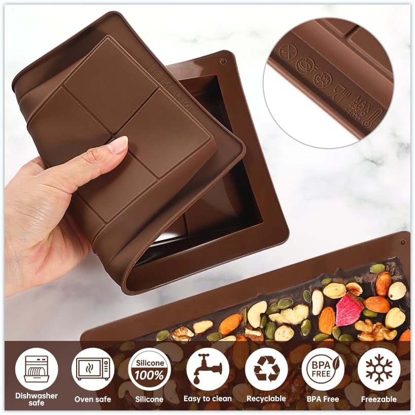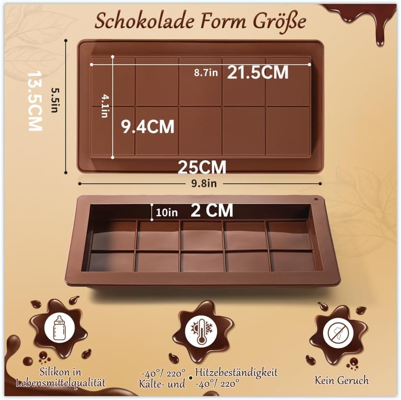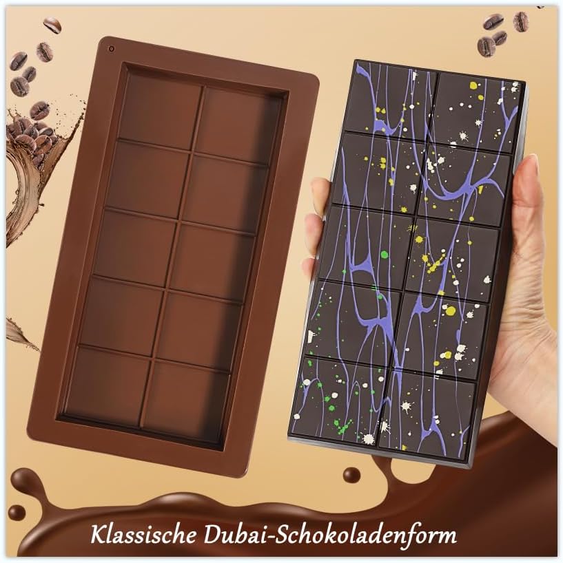 Dimensioni Professionali: 25x13,5 cm di profondità extra con 2 cm di altezza - ideale per creazioni di kataifi al pistacchio a più strati e voluminose barrette di cioccolato. Permette di riempire il 30% in più rispetto agli stampi standard per snack ad alto contenuto energetico. Silicone Alimentare: il nostro stampo per cioccolato è realizzato in silicone alimentare, resistente, privo di BPA e riutilizzabile. Resistente a temperature da -30 °C a +230 °C, è perfetto per congelare i dessert a base di gelato o per preparare a caldo cioccolatini al caramello. Facile da Sformare: Grazie alla superficie antiaderente, i nostri grandi stampi in silicone sono facili da sformare, il cioccolato può essere rimosso facilmente e con una forma splendidamente dettagliata. Sono lavabili in lavastoviglie e possono essere rimodellati in poco tempo. Creatività Multifunzionale: può essere utilizzato universalmente come stampo per cioccolato, vassoio per cubetti di ghiaccio, mini stampo per torte o ausilio per la decorazione di dolci. Particolarmente apprezzato per la preparazione di dolci arabi e cioccolatini natalizi europei. Regali Creativi Fatti a Mano: elegante design di Dubai in qualità professionale - confezione regalo perfetta per pasticceri, panettieri amatoriali e buongustai. Ideale per regali del Ramadan, mercatini di Natale, decorazioni di torte nuziali e catering per eventi.