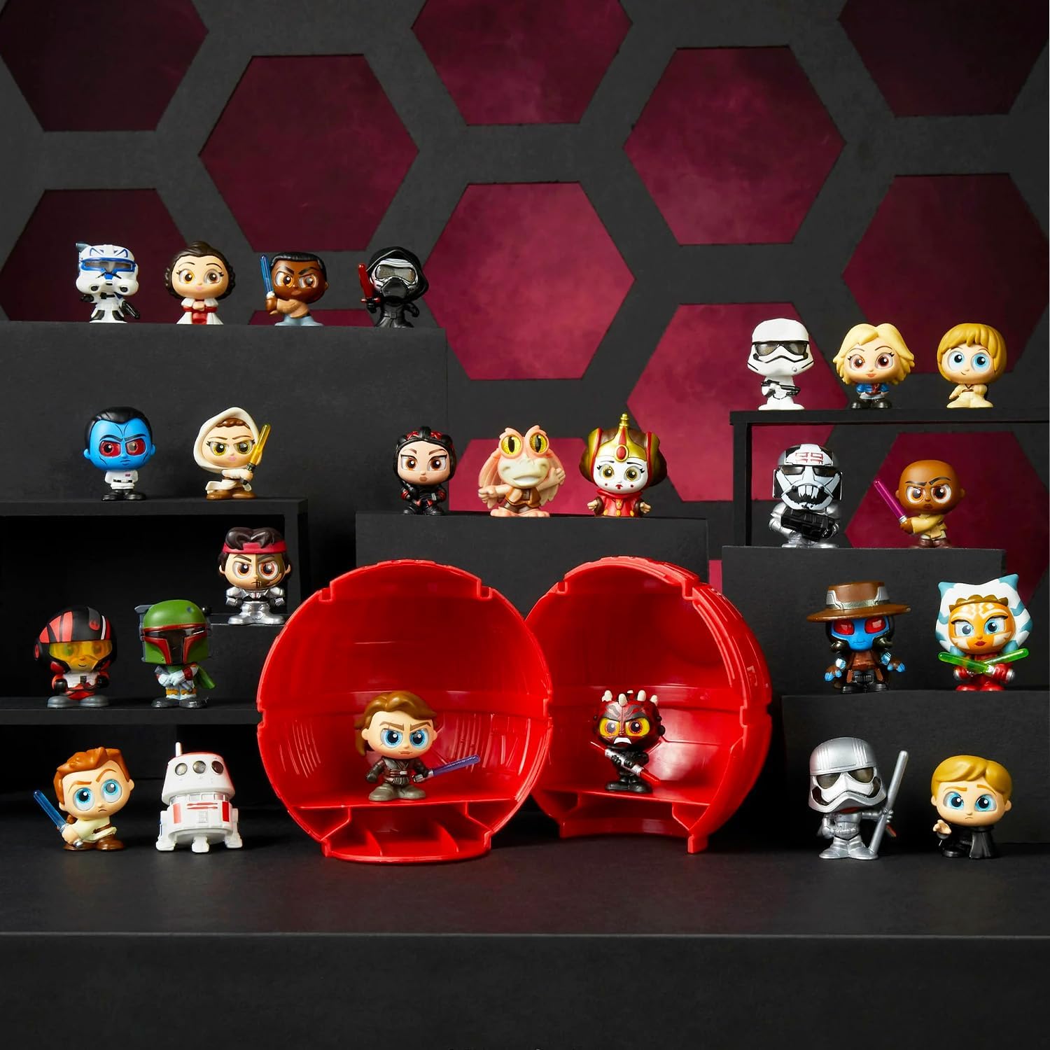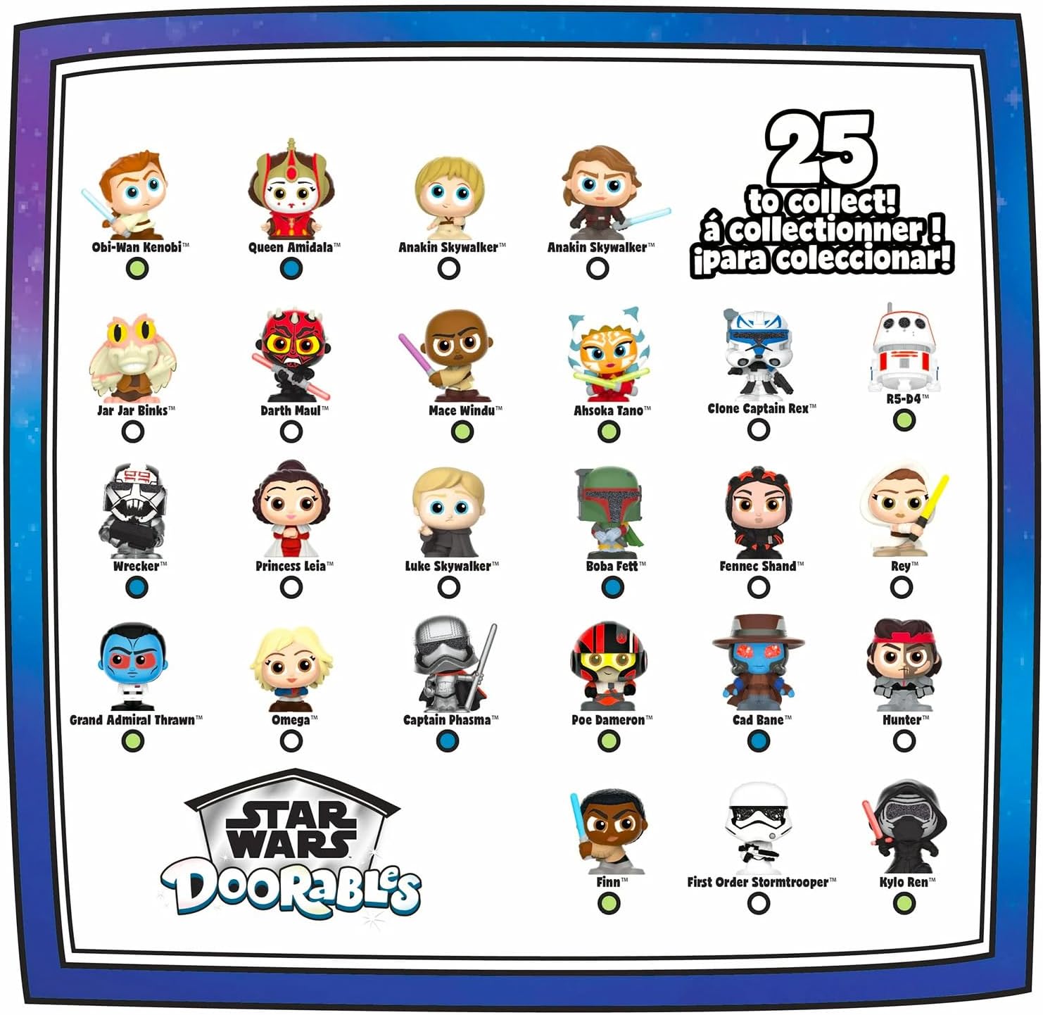 Star Wars Doorables Galaxy Peek Set - 3 mini figure in custodia della morte Nera Star Wars Doorables Blind Bags Bundle con adesivi, altro | Set di mini figure misteriose di Star Wars. Questo mini bundle misterioso di Star Wars viene fornito con tre palle cieche tra cui mini Doorables figure dei personaggi preferiti di Star Wars tra cui Luke Skywalker, Anakin Skywalker, Ahsoka Tano, Obi Wan Kenobi, Kylo Ren, Queen Amidala, e molti altri. Sicuramente un successo con tutti i fan di Star Wars, le palline misteriose di Star Wars Doorables sono ideali da usare come bomboniere, forniture per feste, riempitivi per sacchetti regalo, riempitivi per cesti regalo e molto altro ancora! Con 25 diverse figure giocattolo Star Wars da raccogliere, la palla di Star Wars Doorables è divertente per tutti! Goditi il mistero di aprire la palla per vedere quali figure giocattolo in miniatura dei personaggi preferiti di Star Wars hai ottenuto! La palla misteriosa di Star Wars Doorables con licenza ufficiale è ideale per bambini e adulti, ragazzi e ragazze. Il set viene fornito anche con adesivi Baby Yoda e un segnalibro di Star Wars.