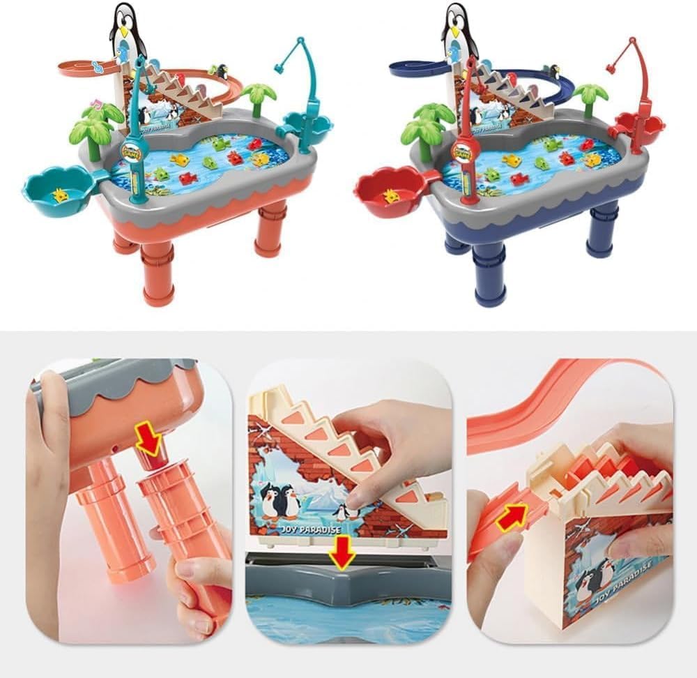 🐟 【Sicuro e robusto】: Realizzato in plastica ABS spessa e resistente, questo giocattolo da corsa di pinguini da gioco di pesca è privo di BPA e progettato pensando alla flessibilità e alla sicurezza, senza spigoli vivi, consentendo ai bambini di giocare Tutte le età apprezzano i colori vivaci e coinvolgenti gioco. 🐟【Pinguini Automatici】: I tre allegri pinguini inclusi in questo set giocattolo con piattaforma da pesca salgono allegramente le scale che, insieme allo scivolo, sono completamente automatizzate per un divertimento senza sforzo, consentendo ai pinguini di volteggiare e scivolare giù in un adorabile display che affascina e delizia senza la necessità di intervento manuale. 🐟 【Divertimento con la pesca magnetica】: con magneti incorporati per una semplice installazione, i piccoli pesci in questo giocattolo da laghetto da pesca sono progettati per essere catturati facilmente, fornendo un'esperienza di pesca immediata e coinvolgente per i bambini, migliorando la loro coordinazione occhio-mano e la destrezza mentre loro giocare. 🐟 【Coinvolgente ed educativo】: questo giocattolo da pesca con pista scorrevole a forma di pinguino non solo cattura l'attenzione dei bambini con i suoi pesci colorati, ma funge anche da ottimo strumento per coinvolgere il tuo bambino in un gioco che incoraggia le prime abilità e lo sviluppo del carattere, come il conteggio e il riconoscimento colori. 🐟 【SET DI GIOCHI VERSATILI】: dal design adorabile, questo gioco di diapositive da tavolo da pesca è perfetto per una vasta gamma di ambienti interni ed esterni, tra cui spiaggia, mare, piscina, giardino o persino la vasca da bagno. Riempi il contenitore del pesce e lascia che tuo figlio raccolga e conti il pescato, rendendo questo gioco da spiaggia un regalo IDEALE che promette ore di divertimento.