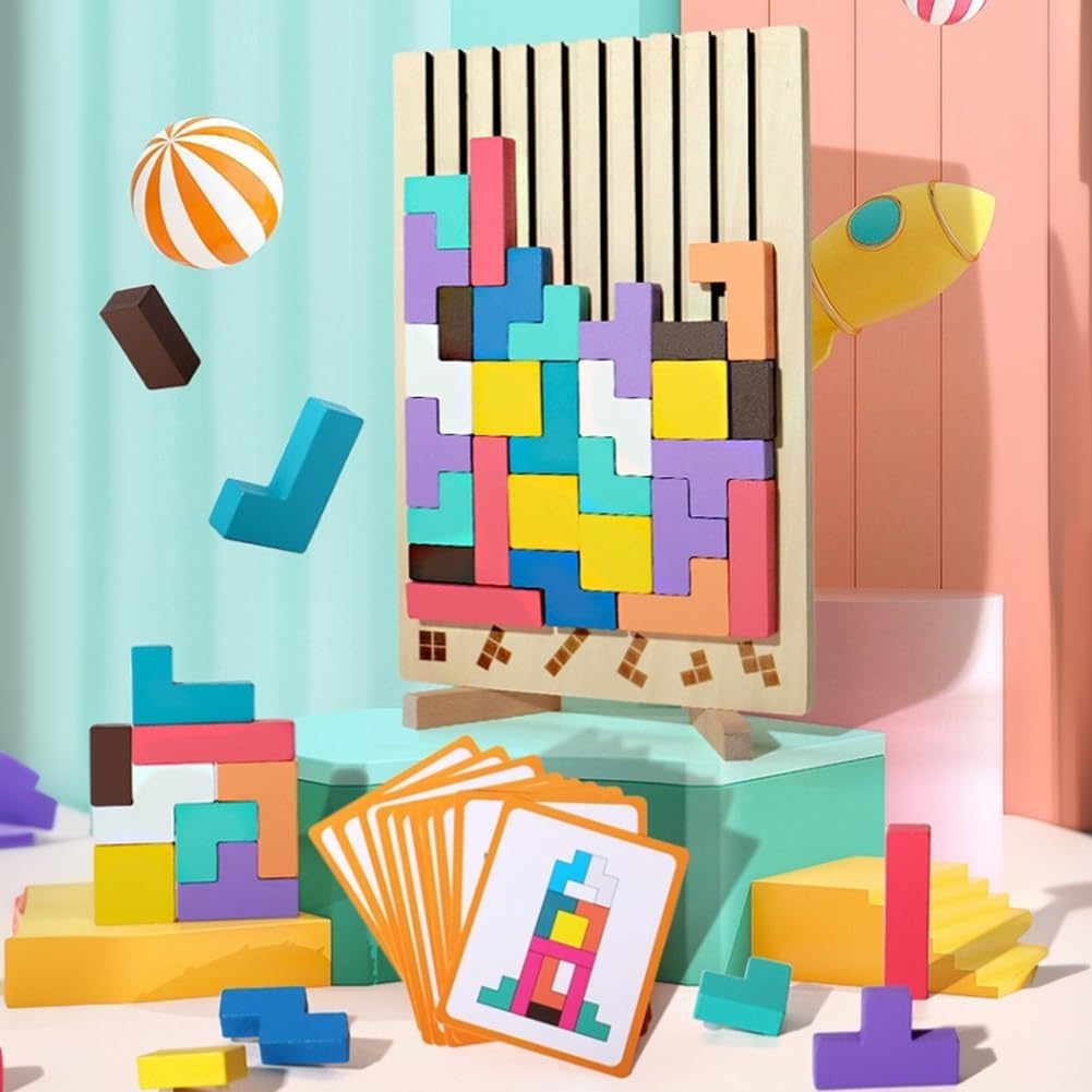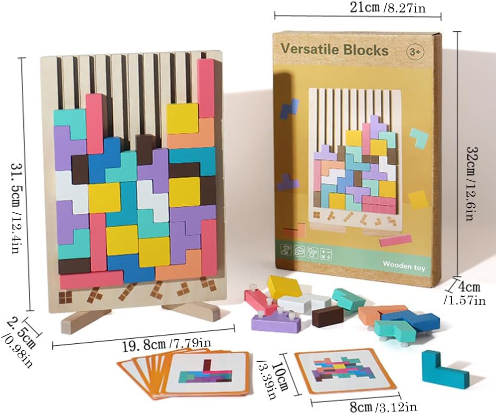 【Puzzle in legno da impilare】: Questo puzzle in legno da impilare contiene 42 blocchi spessi che rappresentano 9 forme geometriche. È ideale per sviluppare la consapevolezza spaziale, migliorare la memoria e offrire ore di relax e risoluzione di enigmi. 【Giocattolo da costruzione durevole】: questo puzzle impilabile in legno è realizzato in legno di alta qualità con una superficie liscia, sicura e affidabile. La sua struttura robusta e durevole e i colori vivaci lo rendono ideale per un gioco di lunga durata. 【Carte sfida per potenziare il tuo cervello】: Contiene 10 carte sfida fronte-retro per guidarti attraverso giochi creativi. Puoi ricostruire schemi o crearne di nuovi per migliorare la tua concentrazione. Questo puzzle può essere utilizzato come giocattolo Montessori o come attività di consapevolezza per adulti. 【Gioco da tavolo rilassante e stimolante】: Questo puzzle in legno da impilare ti offre un momento di relax lontano dagli schermi. Le sue forme colorate e il suo aspetto giocoso lo rendono un classico senza tempo tra i giochi da tavolo. 【Scelta regalo】: Questo puzzle impilabile in legno è un regalo unico e premuroso. Perfetto per chiunque cerchi un'esperienza di puzzle meditativa.