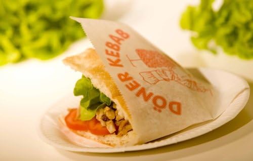 Articolo: Sacchetti per doner kebab Produttore: Starpak Colore: bianco con motivo e scritte rosse Dimensioni: 16 x 16 cm Quantità: 100 pezzi
